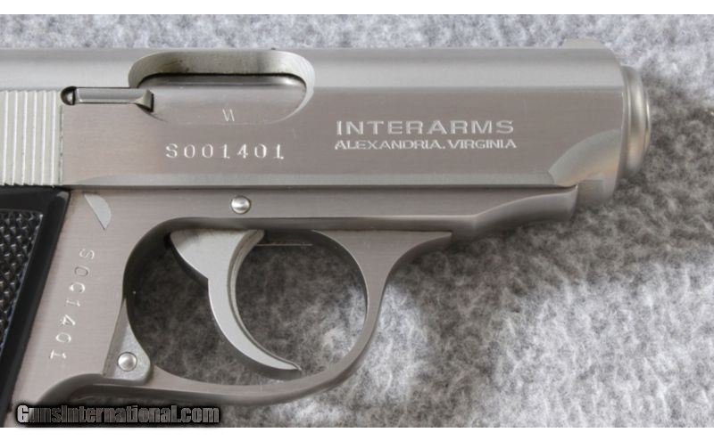 Description: This stainless steel Walther PKK/S .380 acp was manufactured in the United States under license for Interarms. It is an excellent personal defense pistol with some collector potential. SOLD Caliber Info: .380 acp Metal Condition: Excellent with a few fine scratches Bore Condition: Very good Barrels: 3 1/4 inch barrel Weight: 26 oz. with empty magazine Sights: Driftable rear sight with blade front Item Location: Lehi, UT |