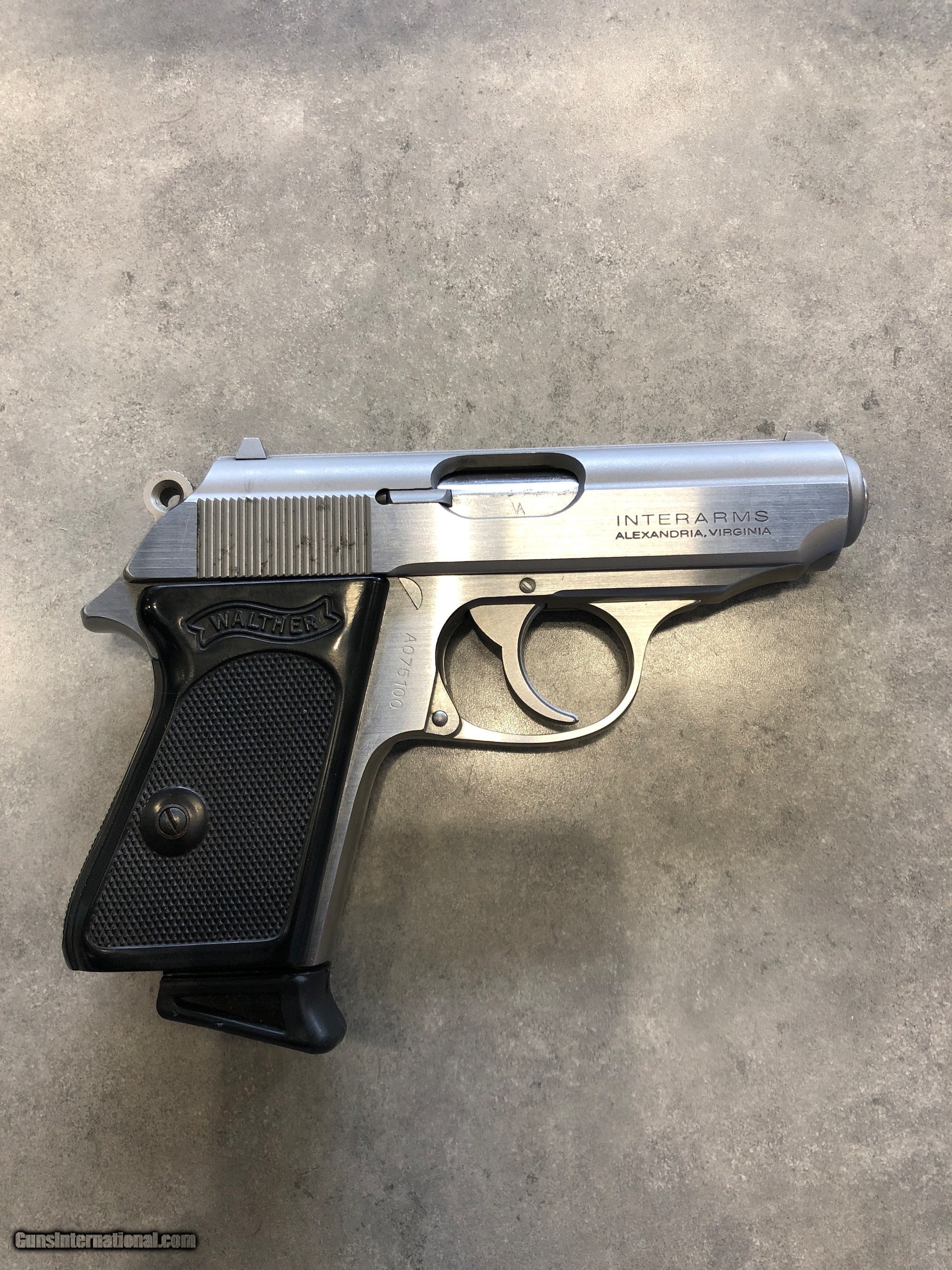 Description: Guns Listing ID: 415793 Original case. Extra mag. Interarms MFG. SOLD Manufacturer: WALTHER Model: PPK/S Caliber Info: 9 MM Condition: Used - Non-Certified Barrels: 3.25 BARREL Finish: STAINLESS AND BLACK |