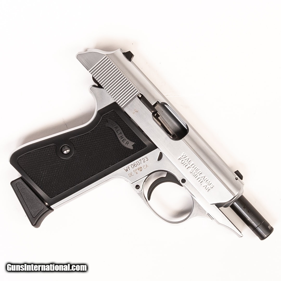 Description: Guns Listing ID: 475367 The Walther PPK/S is a dependable pistol that is accurate, well made, and easy to conceal. Walther‚‚s PP family is very popular as it was carried by James Bond in numerous films and extensively used by the Germans circa WWII. This is a .22lr variant that comes with 1-10 round magazine, the original case, and a manual SOLD Manufacturer: WALTHER Model: PPK/S Caliber Info: .22 LR Condition: Used - Certified Barrels: 3.3 BARREL Finish: NICKEL |
