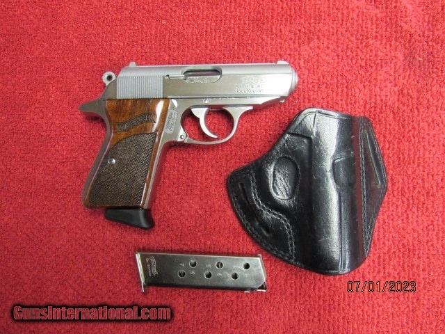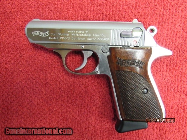 Description: Guns Listing ID: 897062 PRE OWNED EXCELLENT CONDITION NO BOX/ MANUAL INSLUDES 2 7 ROUND MAGS AND LEATHER OWB HOLSTER SMITH AND WESSON/WALTHER CURRENT PRODUCTION Walther, PPK/S, 380ACP Semi-automatic, Metal Frame Stainless Steel 3.3\" Barrel Walnut Grips, Fixed Sights, 7 Rounds, 2 Magazines SOLD Manufacturer: WALTHER Model: PPK/S Caliber Info: MULTI Condition: Used - Non-Certified Barrels: 3.3 BARREL Finish: STAINLESS |