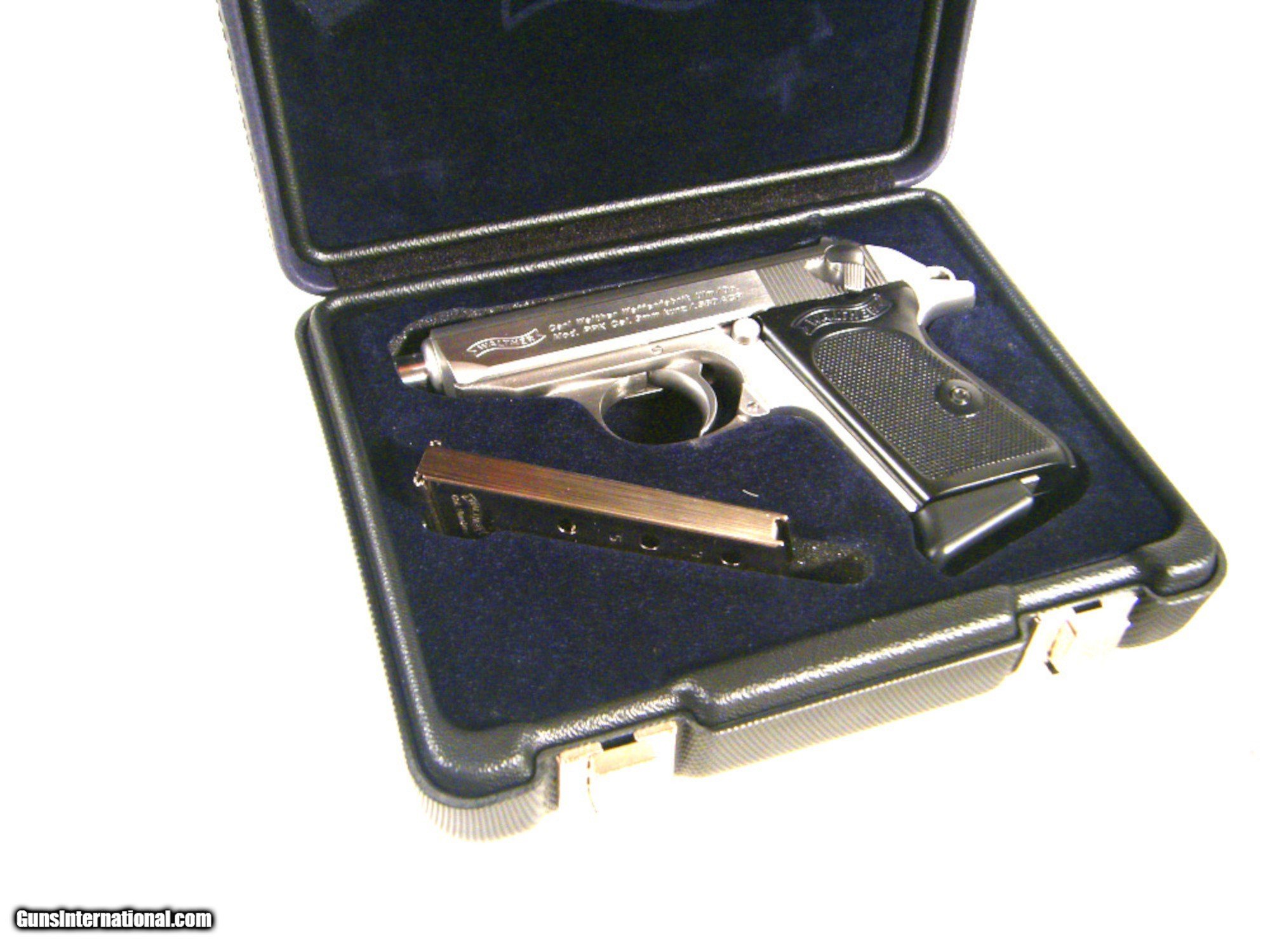 Description: Walther PPK Stainless New in Box This is still the classic personal hideaway pistol in .380 ACP.. Specifications Manufacturer Part #4796001 ActionSemi-automatic Barrel Length 3.6" GripsPlastic Accessories2 Mags SubcategoryPistols - Metal Frame ManufacturerWalther ModelPPK Caliber380 ACP ColorSilver Capacity6 Rd (Plus 1) SightsFixed Sights MaterialStainless Steel Shipping is actual cost - There is a 3% CC fee. VISA, M/C, Discover, Amexco. We also accept Checks and Money Orders. SOLD Handgun Caliber: .380 ACP (9x17mm Browning Short) Manufacturer: Walther Model: PPK Serial Number: xxx Bore: NEW Chambers: NEW Ejectors: NEW Condition: NEW Metal Condition: NEW Bore Condition: NEW Barrels: NEW Finish: NEW |