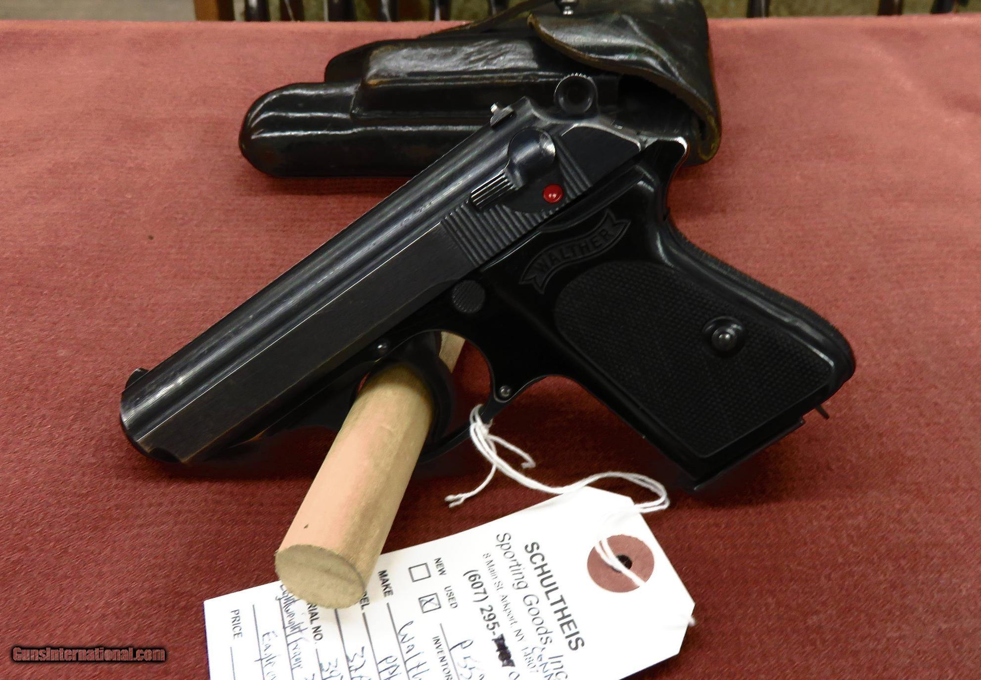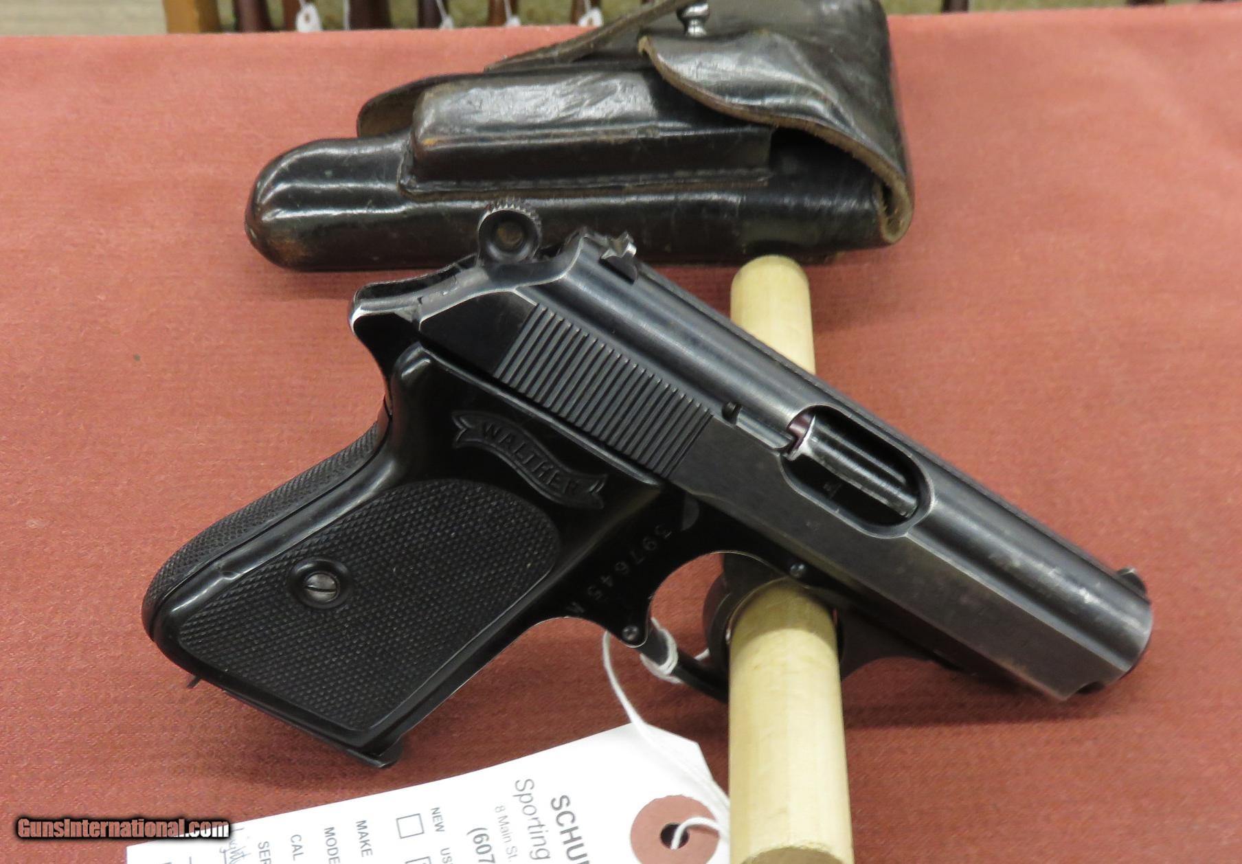 Description: Walther PPK, 32acp, Lightweight frame, #397XXXK, Eagle over N proofed, commercial pistol, holster wear, 70% blue, excellent bore and grips, with holster that is stamped D.R.O.M.. SOLD |