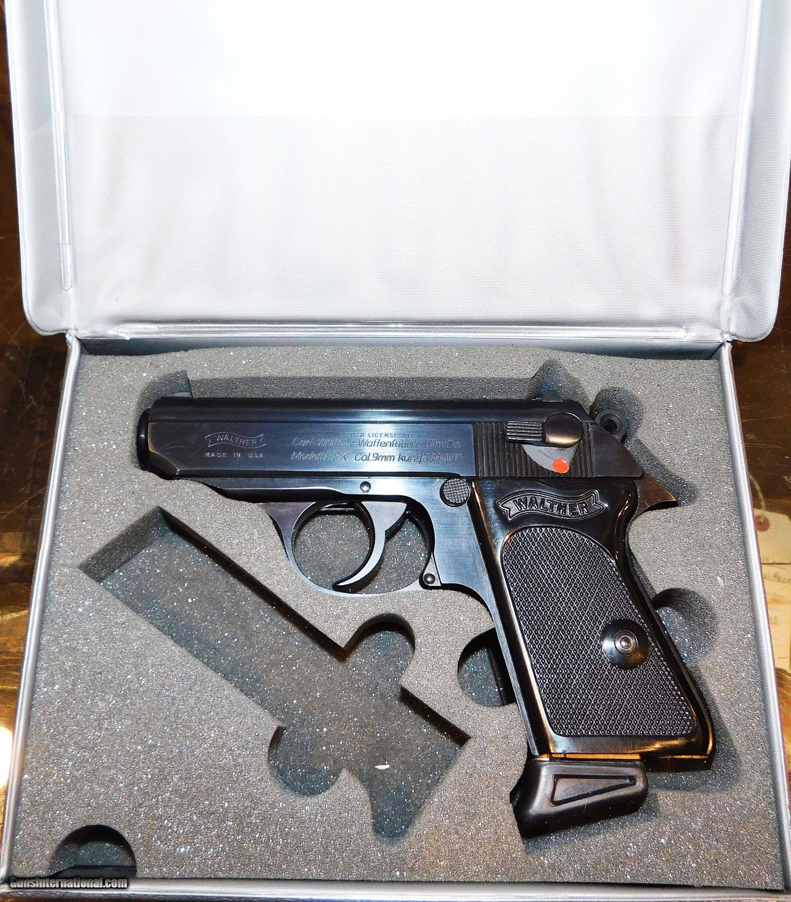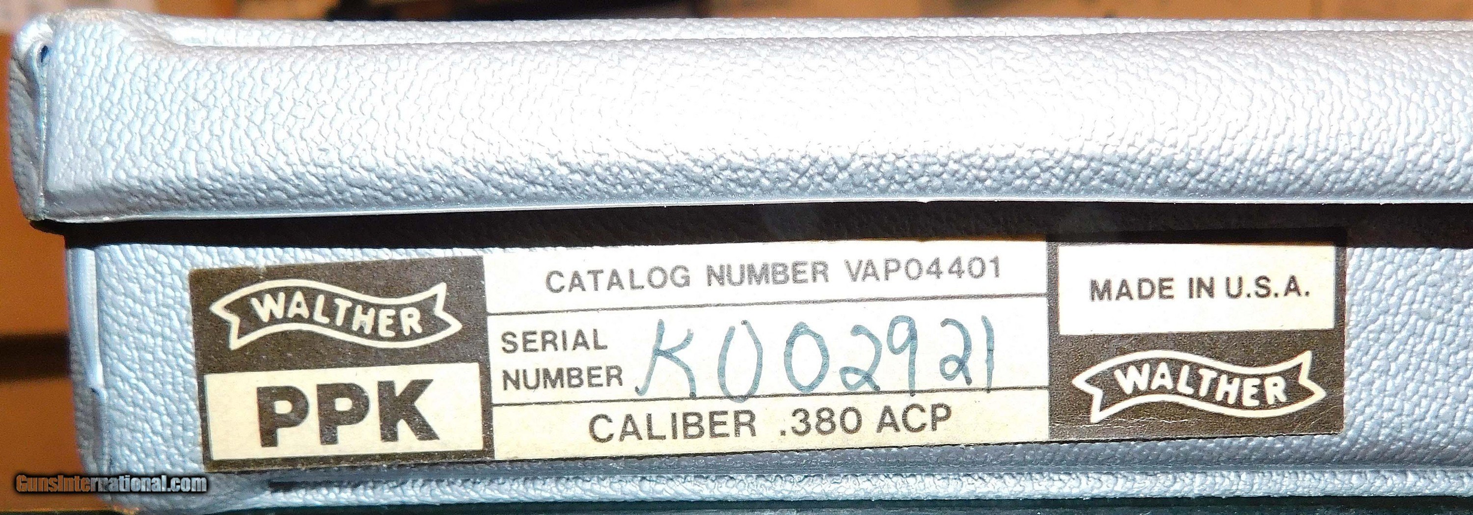 Description: WALTHER PPK IN .380 ACP CAL., WITH 3 1/2" BARREL. COLOR BLUE. CONDITION 98%. SERIAL NUMBER K002921. WALTHER MODEL PPK IN .380 ACP CALIBER, BORE AND GRIPS EXCELLENT, COMES WITH ONE FACTORY MAGAZINE, SILVER HARD CASE, 98% OVERALL CONDITION, OUR STOCK # D2348 SOLD |