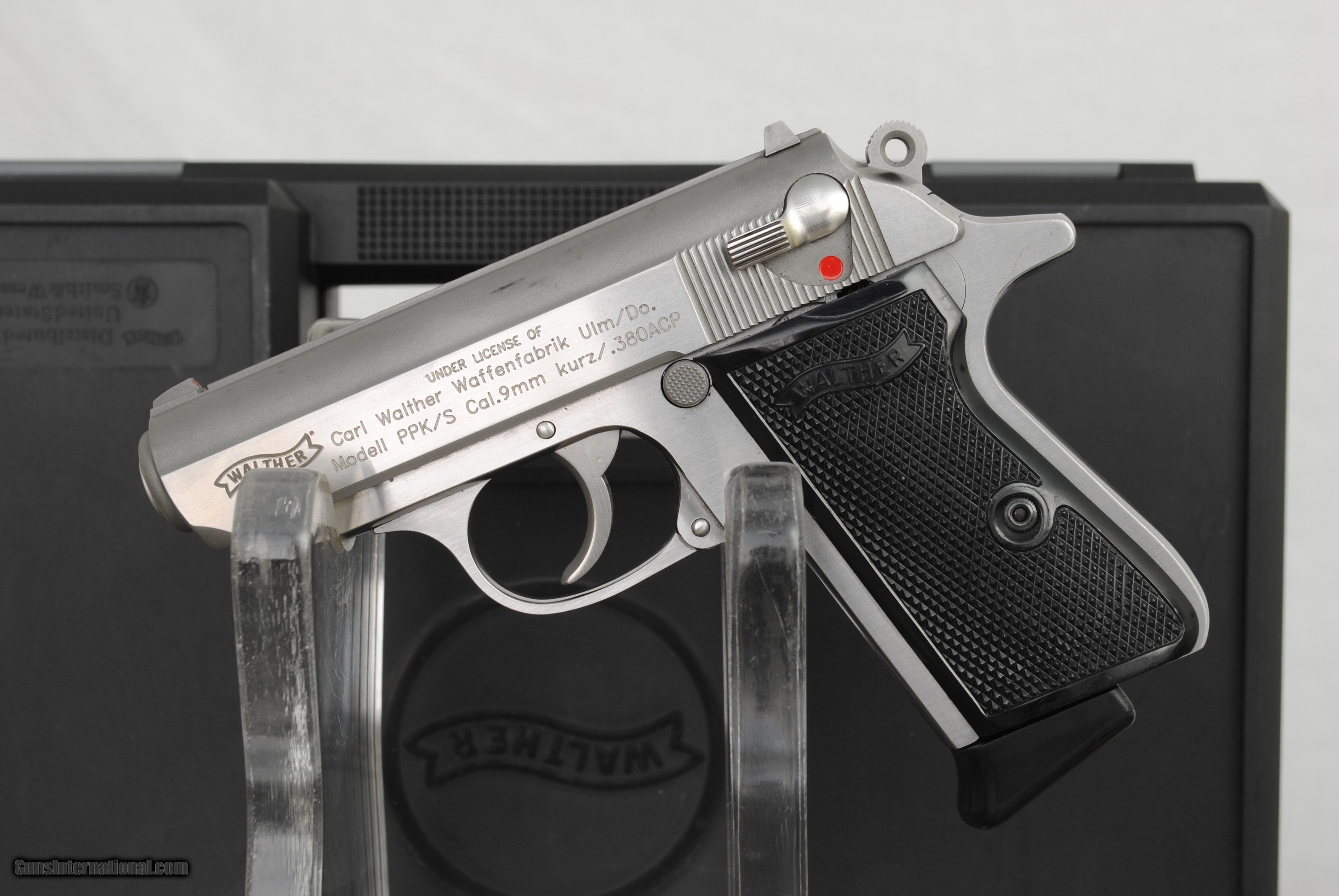 Description: Walther PPKS-1 in stainless steel made in the USA by Smith & Wesson. This gun was subject to a factory recall and was sent to S&W and corrected (copy of factory repair order included). Condition excellent with a few minor surface scratches. Credit cards accepted with no fee. Barrel is 3.35". Caliber is 380 ACP. Includes box and paperwork and two 7 round mags. Insured express shipping is $60. SOLD Handgun Caliber: .380 ACP (9x17mm Browning Short) |