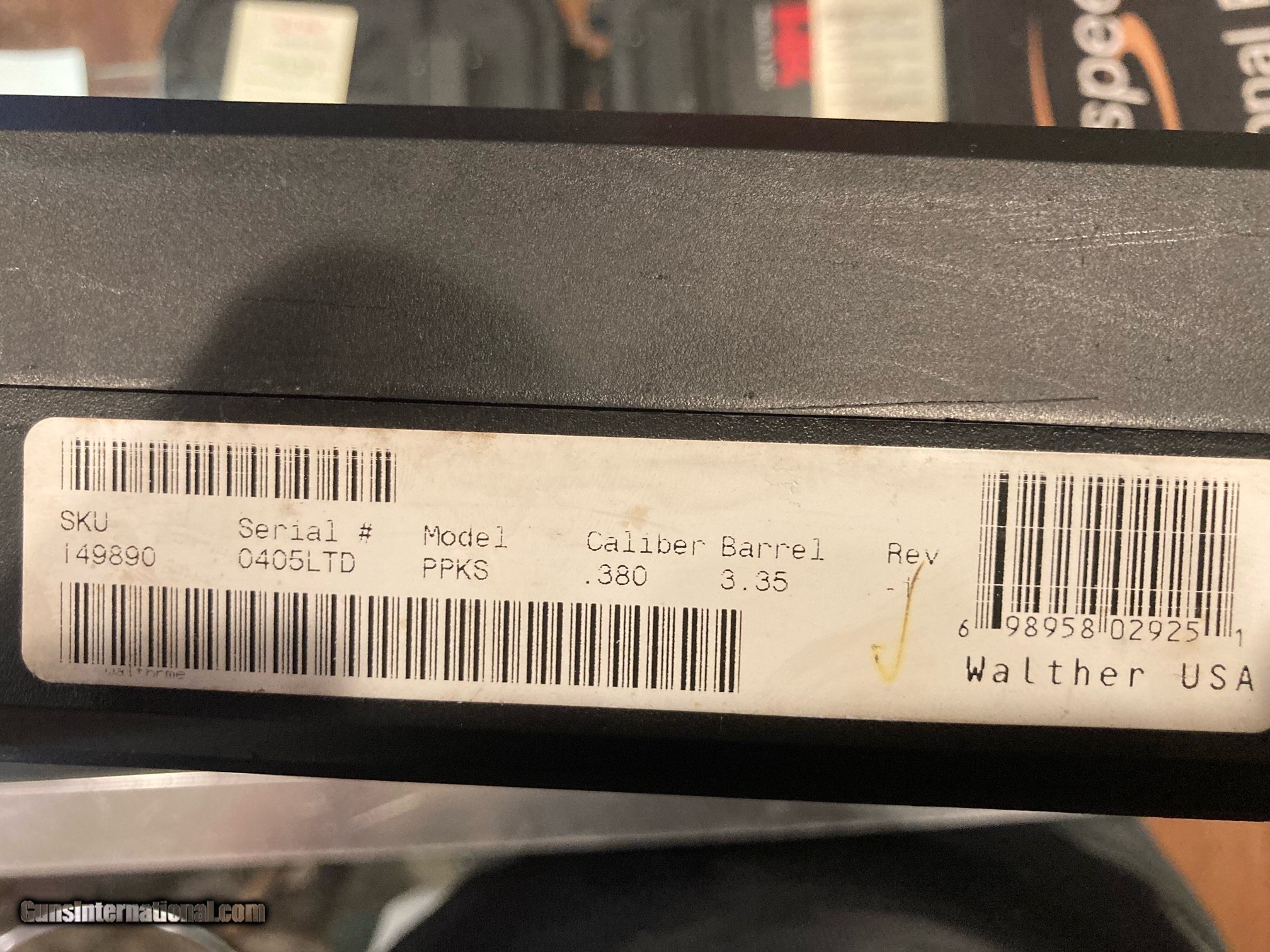 Description: Walther PPKS in 380 caliber. Royal oak edition, 1 of 500. Excellent like new condition. Comes with spare magazine, original box, and paperwork. Serial #O405LTD, our stock #D4453. NO credit card fees. SOLD Manufacturer: walther Model: ppks |