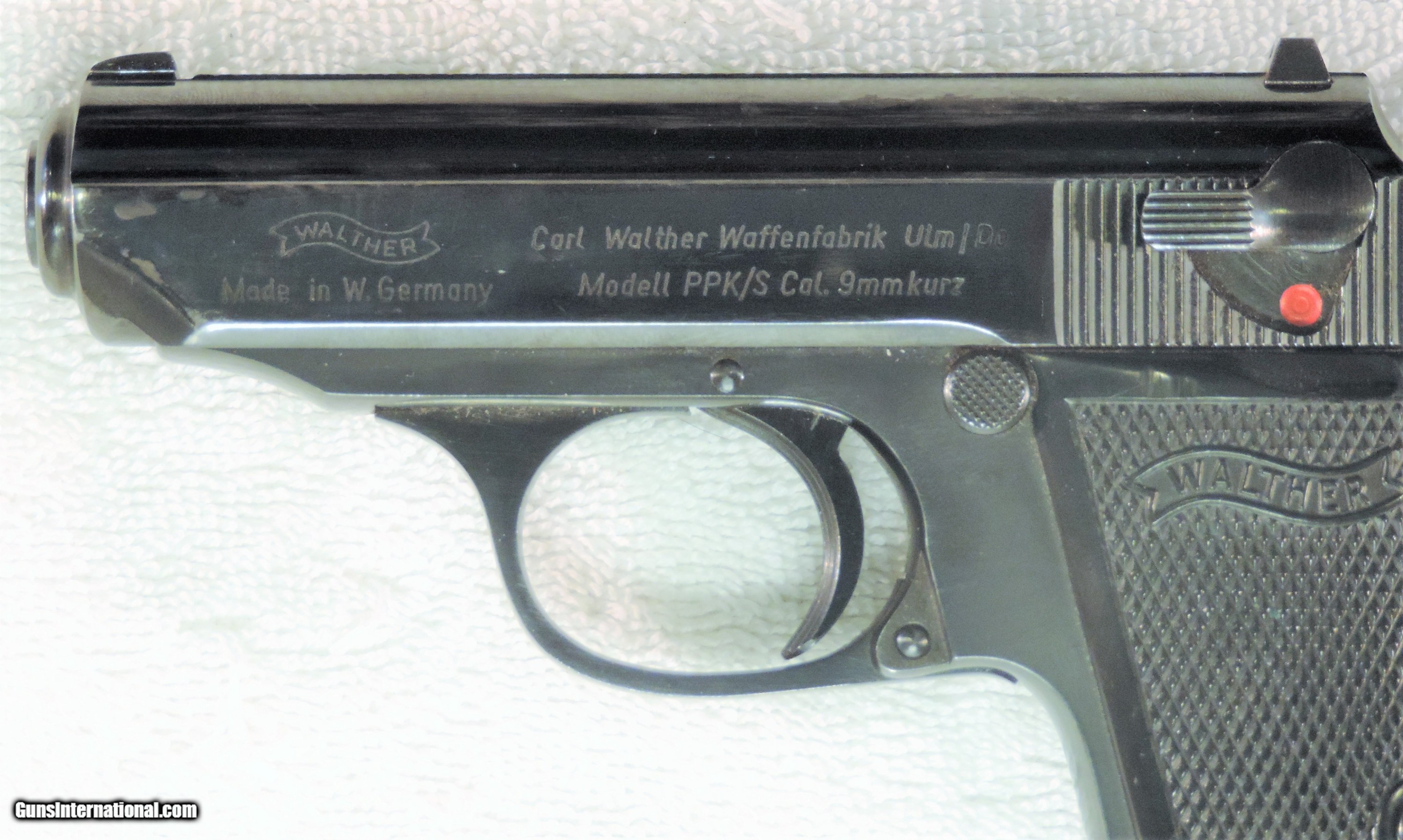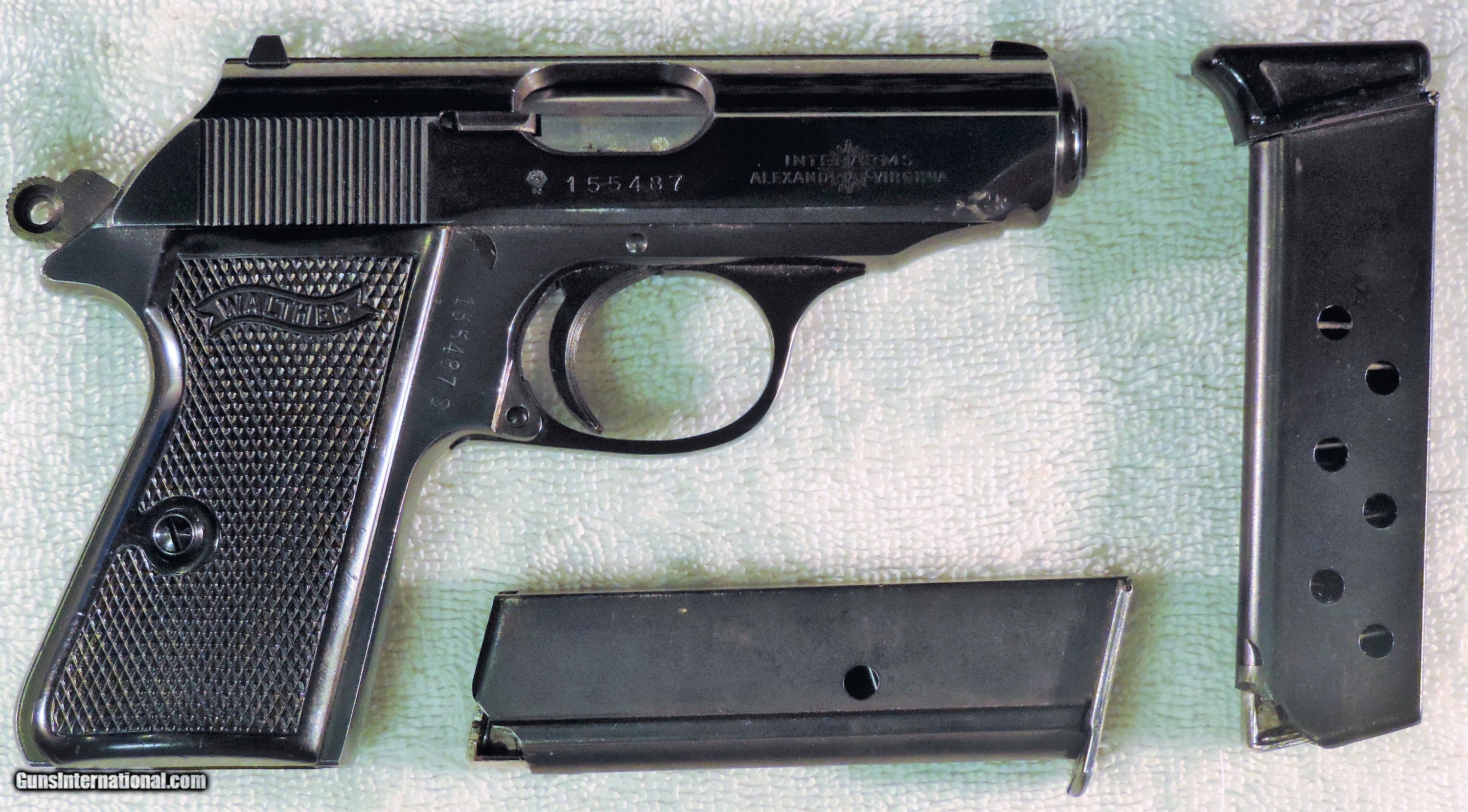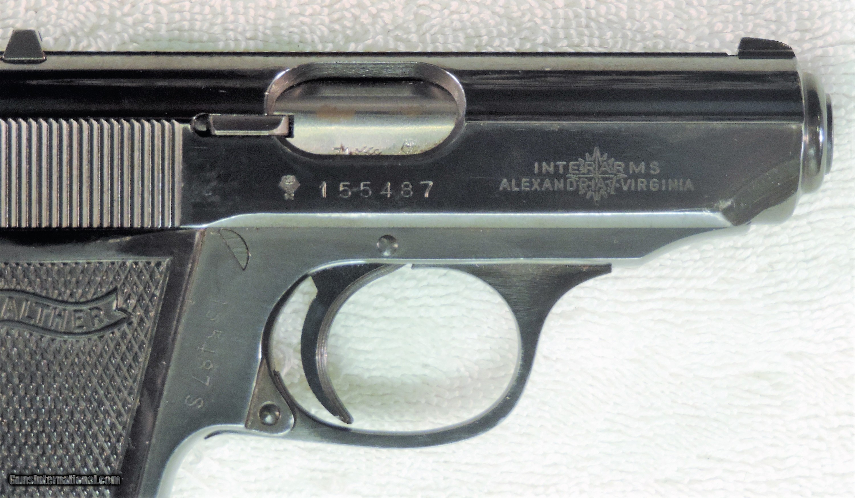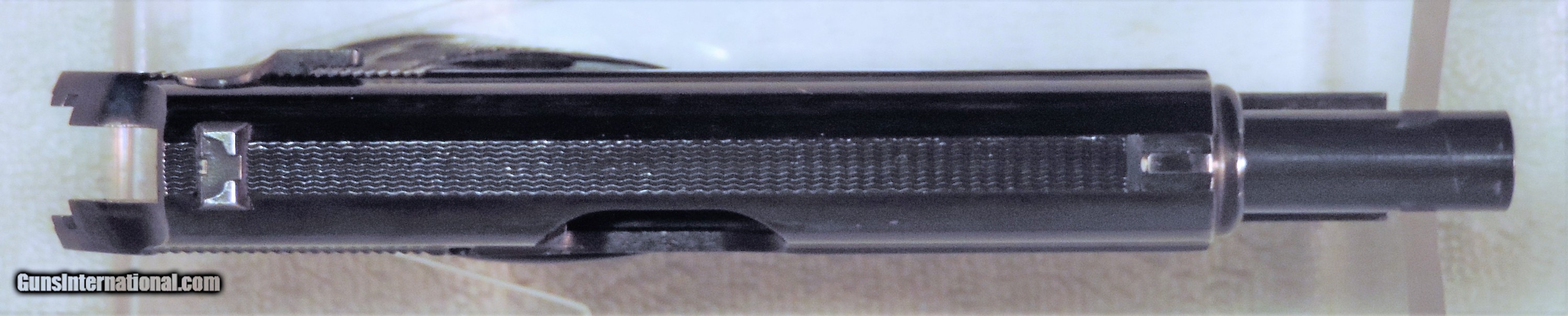 Description: Inv. 6777 Walther PPKS (W.German) Cal. .380 ACP. Ser 155487. It's as minty as it gets. The gun retains about 99+% of the original high polish factory finish.There are just four very tiny rub marks on the front of the slide from holster wear. All parts match the grips are perfect. Not a chip or a nick anywhere.The grip screw is perfect. The interior,slide rails,bolt face and feed ramps are super clean. The gun has seen very little use. The bore like the rest of the gun is mirror bright with razor sharp rifling. It comes with 2 magazines as shown.One finger grip and one standard.. This Interarmco holster queen is a real pretty thing and should prove to be real fun at the range.......$795 Inc Shipping. To purchase this firearm or if you want to request more information contact us at: Email ckgunsymail Phone 201-512-0002 Cell 201-575-6838 FAX 201-215-4759 We accept most major credit cards. Prices shown are Discounted 3% for Cash or Check. The buyer must be familiar with all the laws governing the purchase and the ownership of firearms in their own city and state. The Yankee Armorer, Inc is not responsible for any failure to comply with or observe these laws. The Yankee Armorer, Inc will only ship after full payment and receipt of all required documents. Shipping: Add $35.00 for handguns, $45.00 for long guns. New Jersey buyers are subject to a 7% sales tax. The Yankee Armorer, Inc offers a 3 day inspection period with full refund upon return of intact firearm and in the original condition. The Yankee Armorer, Inc offers a no interest lay away program - 25% down; 25% in 30 days; 25% in 60 days; and full payment in 90 days. Any violation of this policy is subject to restocking and forfeiture of all payments. Any variation from this policy must be agreed to in advance. Unshipped Cancelled sales are subject to a 20% restocking fee. Be advised that all firearms sold by The Yankee Armorer, Inc. or the Gun Exchange, LLC (SELLER) are sold as collector’s items. They have not been fired or tested for safety and must be examined by a license gunsmith prior to use. By purchasing any item from the (SELLER), you are agreeing to hold the (SELLER) free from any damages or lawsuits of any nature. Any item left for transfer or storage will be charged to $25.00 per month, per item from the day of its receipt. Any variation from this policy must be agreed to in advance. Store hours 10:00 am to 5:00 pm Tuesday -Saturday. It's always best to call for appointment. Store 201-512-0002, cell 201-575-6838. SOLD |