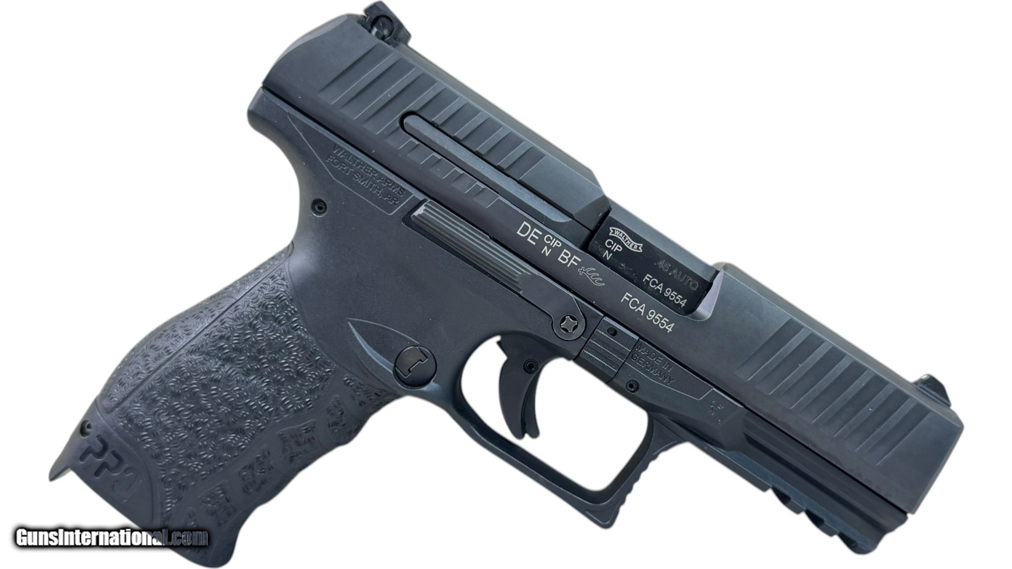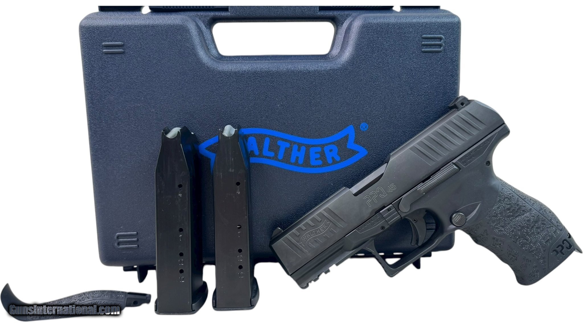 Description: Guns Listing ID: 573329 Type: Used Make: Walther Model: PPQ 45 Serial Number: FCA 9554 Caliber: .45 ACP Capacity: 12 rounds Action: Semi-automatic Barrel Length: 4.25\" Sights: White Sights Finish: Black Bore Condition: Bright & Sharp Overall Condition: Minimal signs of handling or use. Finish is virtually flawless. Mechanically excellent. Bore is bright and sharp. Ideal for collectors or those seeking a like-new firearm. Includes: Box, 2x 12rd mags, paperwork Additional Notes: The Walther PPQ 45 in .45 ACP with a 4.25\" barrel is a top-quality handgun known for its excellent performance and reliability. This particular model comes in a sleek black finish and is in outstanding condition, making it a great option for both collectors and shooters looking for a like-new firearm. The included original white sights and accessories add value to this package, providing everything you need to hit the range or carry confidently. SOLD Manufacturer: WALTHER Model: PPQ 45 Caliber Info: .45 ACP Condition: Used - Non-Certified Barrels: 4" BARREL Action: SEMI AUTOMATIC |