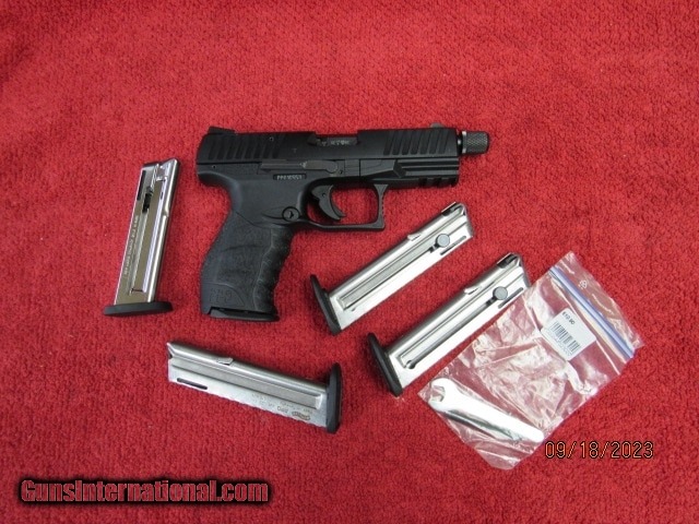 Description: Guns Listing ID: 979669 PRE OWNED ONCE FIRED AS NEW CONDITION INCLUDES 5 FACTORY 10 ROUND MAGS NO BOX NO MANUAL WALTHER ARMS PPQM2 22 LR TACTICAL THREADED 1/2X28 MANUFACTURER: Walther Arms FAMILY: PPQ Series MODEL: PPQM2 TYPE: Semi-Auto Pistol ACTION: Semi-Auto CALIBER/GAUGE: 22 LR FINISH: Matte Black FRAME: Polymer Frame STOCK/GRIPS: Black Polymer BARREL: 4.6\" OVERALL LENGTH: 7.1\" CAPACITY: 10+1 # OF MAGAZINES: 1 MAG DESCRIPTION: 10+1 SIGHTS: Adjustable Rear WEIGHT: 19.1 oz SHIPPING WEIGHT: 2.9 lbs. SAFETY FEATURES: Firing Pin Block/Trigger Sfty ADDL INFO: Navy Threaded Barrel Adapter ADDL INFO: MIL-STD-1913 Picatinny Rail ADDL INFO: Front & Rear Slide Serrations MFG MODEL NO: 5100304 UPC: 723364207297 SOLD Manufacturer: WALTHER Model: PPQ M2 22 TACTICAL Caliber Info: .22 LR Condition: Used - Non-Certified Barrels: 4.6 BARREL Finish: BLK |