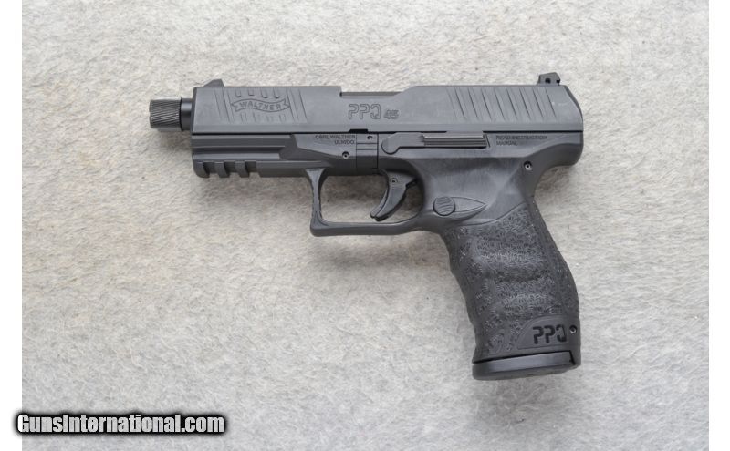 Description: This Walther Model PPQ M2 is a right hand semi-automatic pistol in .45 ACP Cal. It has a 4.75 inch threaded barrel with a front and rear serrated slide. A blade front and notch rear sight with 3 white sight dots. The grip is a textured black polymer with an interchangeable back strap. It has a lower accessory rail and squared trigger guard. This pistol is a New in Box condition gun. SOLD Caliber Info: .45 ACP Chambers: Semi-Auto 12 round magazine. Metal Condition: Excellent. Wood Condition: Grips are in excellent condition. Bore Condition: Excellent. Barrels: 4.75 inch threaded barrel with a front and rear serrated matte black slide. Stock: Textured grip black polymer with an interchangeable back strap. Lower accessory rail. Squared trigger guard. Weight: 30 oz. Sights: Blade front. Notch rear. 3 white sight dots. Extras: Comes in a hard case with Owners Manual, gun lock, two 12 round magazines and an extra interchangeable back strap. Item Location: Richfield, WI |