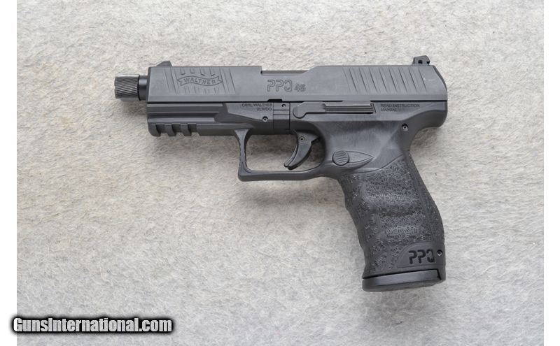 Description: This Walther Model PPQ M2 is a right hand semi-automatic pistol in .45 ACP Cal. It has a 4.75 inch threaded barrel with a front and rear serrated slide. A blade front and notch rear sight with 3 white sight dots. The grip is a textured black polymer with .45 ACP SOLD Chambers: Semi-Auto 12 round magazine. Metal Condition: Excellent. Wood Condition: Grips are in excellent condition. Barrels: 4.75 inch threaded barrel with a front and rear serrated matte black slide. Sights: Blade front. Notch rear. 3 white sight dots. Item Location: Richfield, WI |