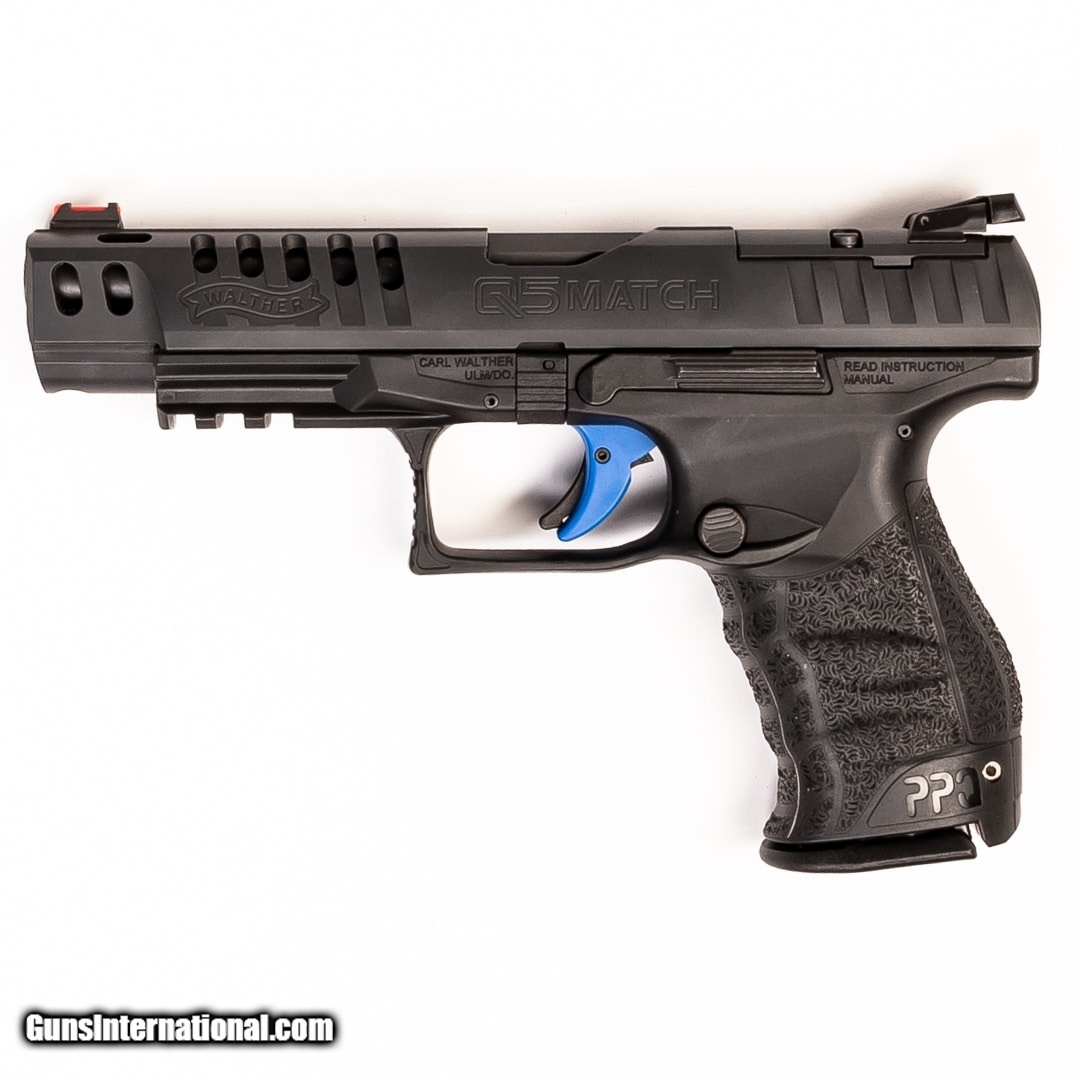 Description: Guns Listing ID: 408873 The Walther PPQ Q5 Match takes the legendary PPQ and turns the screw to make a top of the line competition pistol. It features a match grade trigger, performance slide cuts, an optics ready slide, and numerous other features. If you're looking for a high-end competition pistol at a great price, this Walther Q5 Match is hard option to beat. 3-15 round magazines, the original case, manual, 3 sizes of backstraps, a loader, and 3 optics plates are included. SOLD Manufacturer: WALTHER Model: PPQ Q5 MATCH M2 Caliber Info: 9MM LUGER Condition: Used - Certified Barrels: 5 BARREL Finish: BLACK |