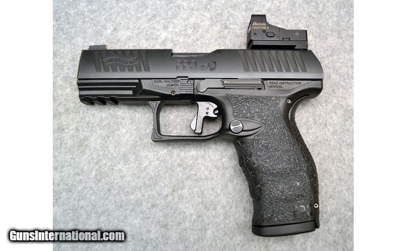 Description: Walther PPQ 45 Semi-Auto Pistol is an extraordinarily comfortable and highly efficient full-sized .45 Auto pistol, therefore making it the ideal handgun for personal protection or home defense. The PPQ 45 boasts remarkable accuracy; with minimal recoil and features a quick defense trigger that boasts a consistent, crisp pull and quick reset. The steel slide has a durable, corrosion-resistant finish with aggressive slide serrations. The tough polymer frame boasts aggressive, yet comfortable texturing, interchangeable backstraps for a custom fit and improved control. The PPQ45 also has ambidextrous controls for both left and right-handed shooters. It comes with a Burris Fastfire 3 Red Dot mounted and ready to go. Includes a factory hard case, two magazines, and an extra backstrap. .45 ACP SOLD Barrels: 4.25 Weight: 28.2 oz Item Location: christiana |