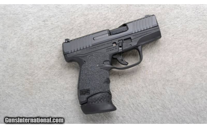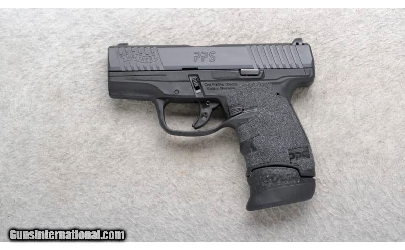 Description: This Walther Model PPS is a right hand semi-auto pistol in 9mm Cal. It has a 3 inch barrel with a front and rear serrated slide. A blade front sight and notch rear sight with white sight dots.The grip is a textured black polymer with molded finger groove and an aftermarket grip over wrap. 9mm Parabellum SOLD Chambers: 7 shot magazine. Metal Condition: Excellent. Bore Condition: Excellent. Barrels: 3 inch barrel with a front and rear serrated slide. Weight: 24 oz. Sights: Blade front. Notch rear. 3 white sight dots. Item Location: Richfield, WI |