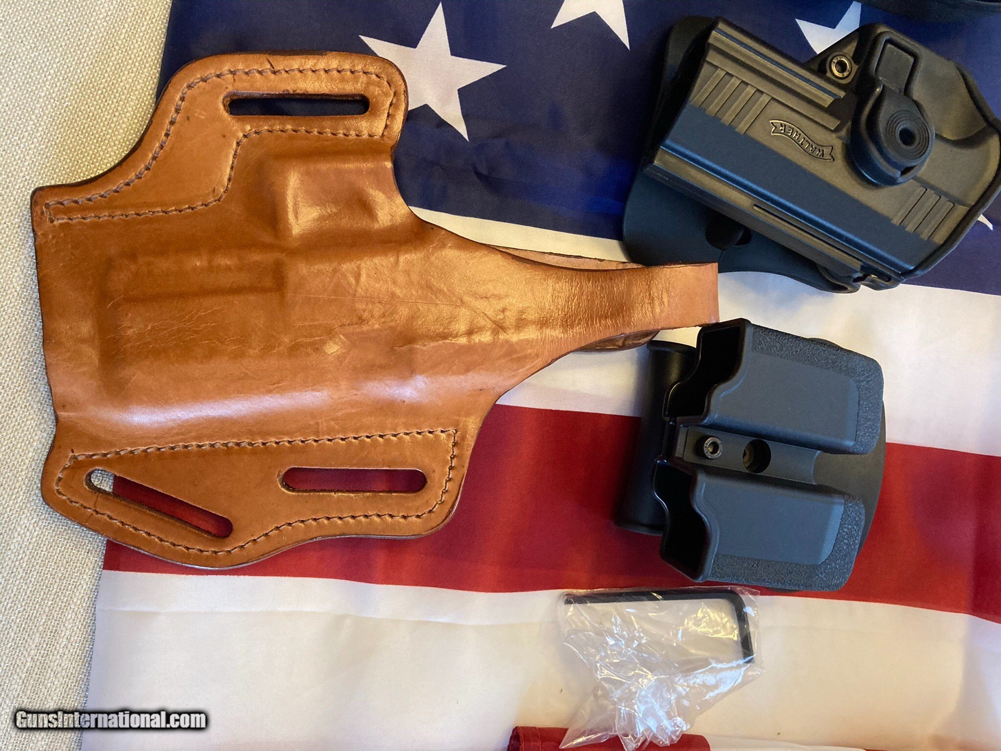 Description: sale pending !!Walther PPX M1 this is a hammerfired semi auto pistol,it features a loaded chamber view point,along with automatic internal safeties,and the open post sights are designed for rapid aiming and target acquisition,this is a safe queen hardly used comes with 2-10 rnd mags and 1-15rnd mag if your state allows them,1 walther kidex holster and one leather thumb break holster a 2mag pouch,see photos,this handgun was made in germany nra rating very good no scrathes ding,if it hadnot been fired i would grade it new in box SOLD Handgun Caliber: 9x19mm Parabellum (9mm Luger, 9x19mm NATO) |