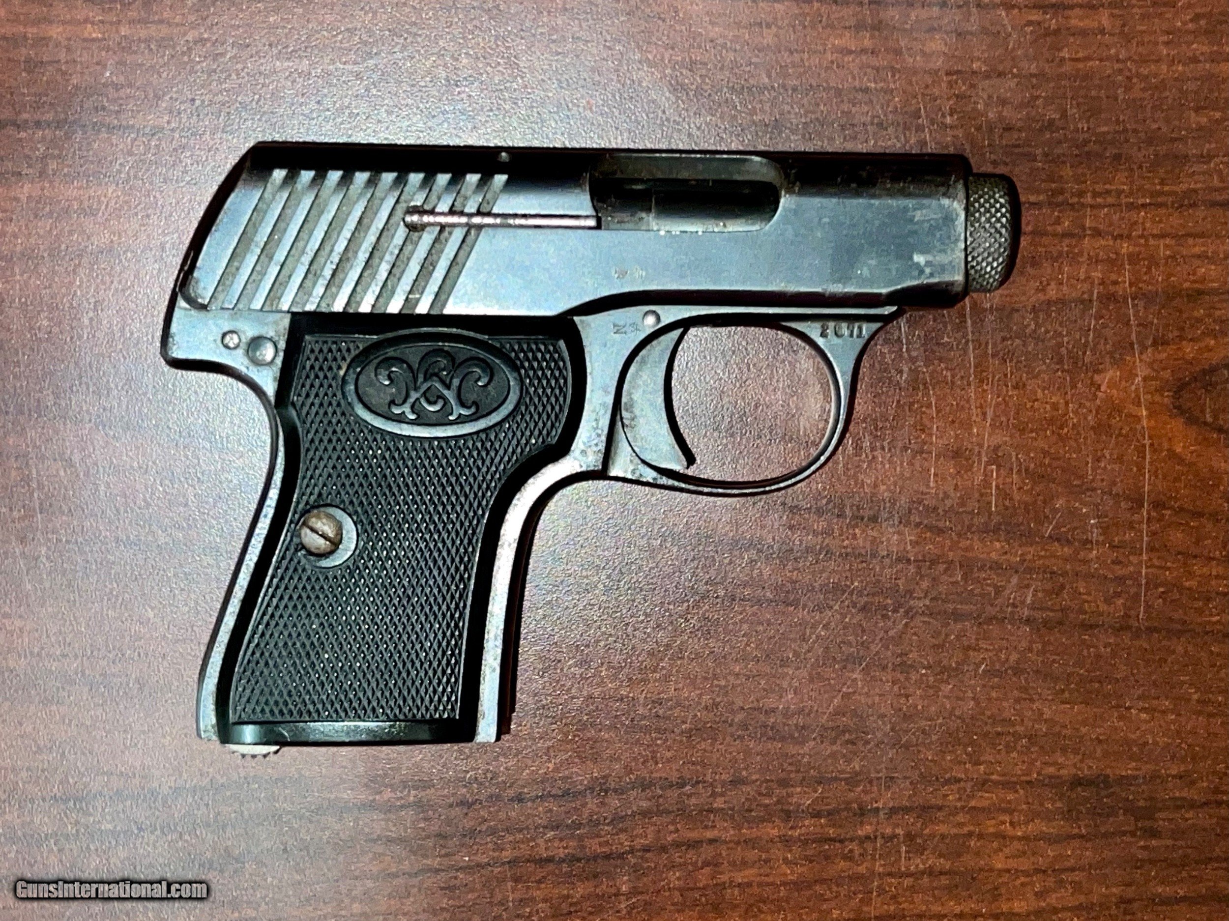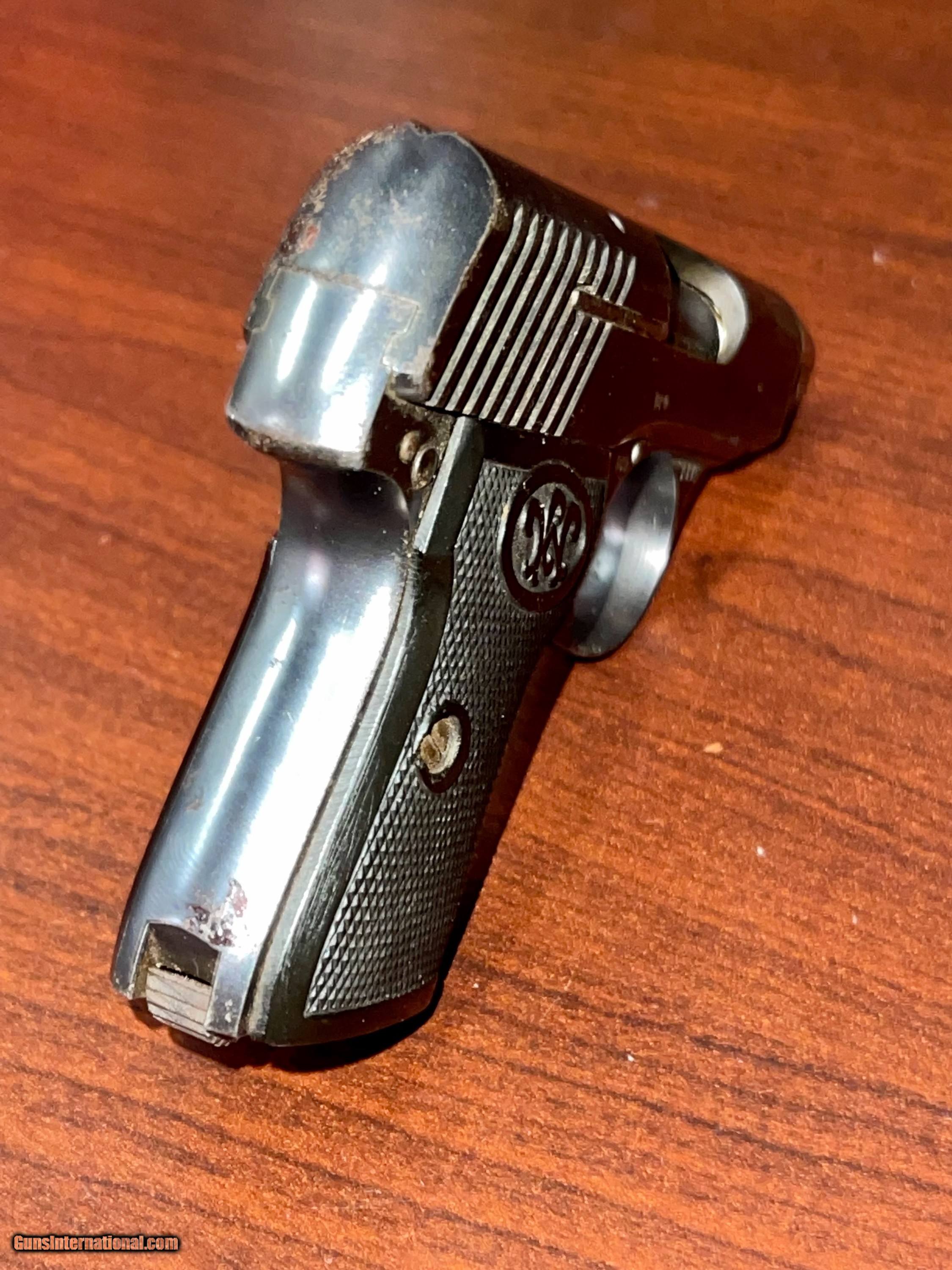 Description: Walther Pre-War Model 2 Vest Pocket 6.35 .25 auto Super rare and cool little pistol here. This is an early model 2 with a low serial number made between WWI and WWII. The gun is a bit worn and has some flea bites in the metal but some parts are very clean. It is not an import gun and has no import marks, just its German proofs. As far as we can tell it functions but will need a mag. In good condition these rare guns go for $1000 and up but we have ours priced to sell, reflecting present condition. Take advantage and get it cleaned up or keep it as is with its distinctive aging marks. ****WE ARE ALWAYS BUYING AND ARE VERY EXPERIENCED IN ESTATE SALES TOO. LET US KNOW HOW WE CAN HELP!**** PAYMENT: -Payment must be recieved within 10 days of purchase. 3% additional charge for credit card processing. SHIPPING & HANDLING: -$30 for handguns and $45 for long guns SHIPPING FIREARMS: -Firearms shipped to FFL dealer only -We will ship upon receipt of payment and signed legible copy of dealer's FFL via Fax, Mail or E-mail. SALES TAX: -Florida residents add 7.5% sales tax. PRODUCT: -We operate a gun shop which means that every item is for sale in our store and it may have already been sold when you contact us. NEW GUNS: -On new Firearms we may use file photos instead of the actual gun. CONTACT: -Contact me with any and all questions. We want you to be happy with your purchase. PHONE #: (904) 271-5270 STORE HOURS: Mon-Fri: 11p-6pm Sat: 9a-3p BUYER: -It is Buyer's responsibility to ensure that the weapon is LEGAL to own in your city/state. SOLD Curio/Relic: Yes Handgun Caliber: .25 ACP (6.35mm Browning, 6.35×16mmSR) Manufacturer: Walther |