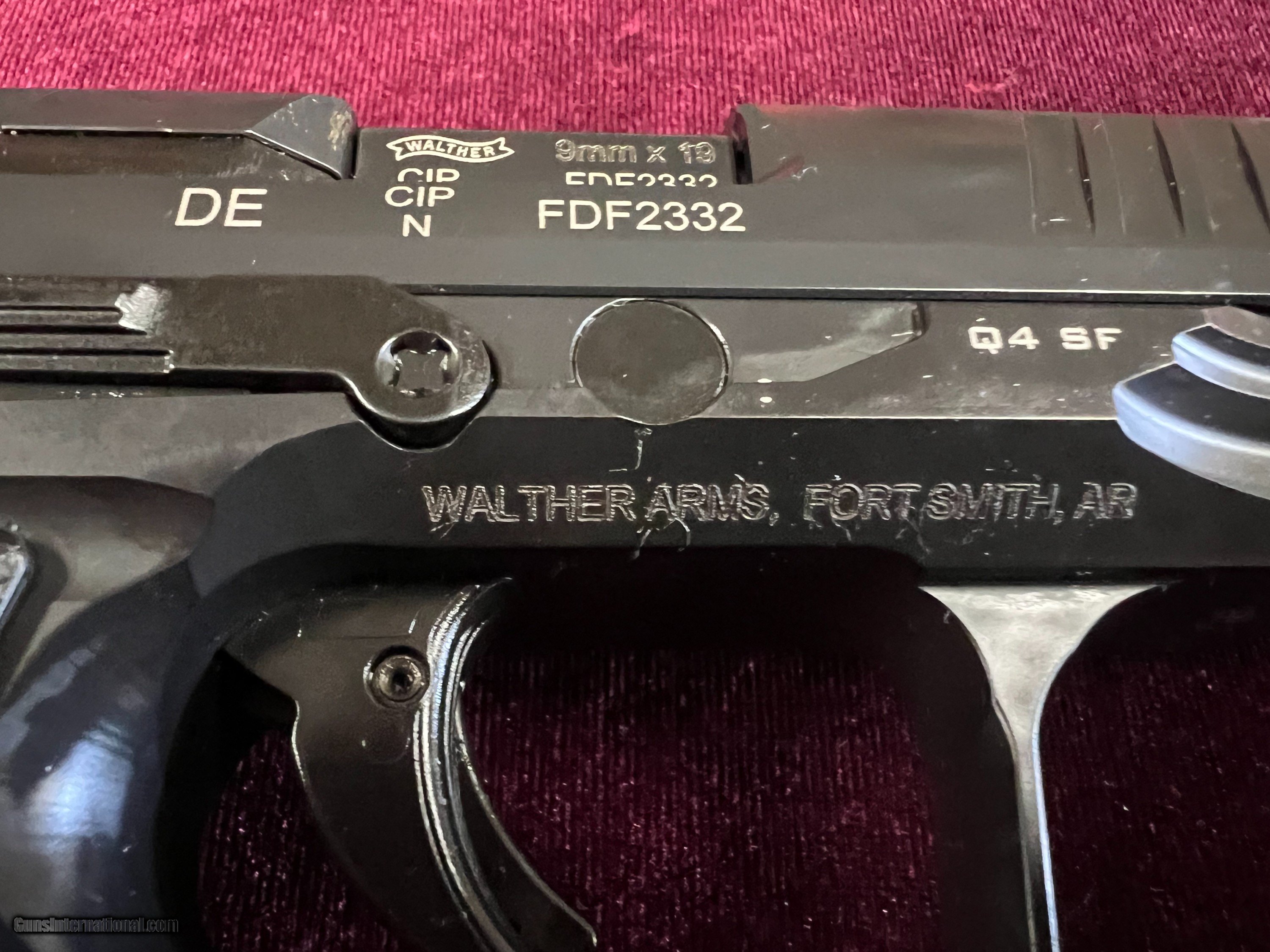 Description: Hello all. In this listing we are selling are selling a Walther Q4SF. This 9mm Semi-Auctomatic Handgun sports a metal frame and very smooth slide, designed for competition shooting. It sports a 4" barrel that has been shot very little, if at all. A fantastic buy for anyone looking for a good striker fire handgun for competition shooting. If you have any questions, or require additonal photos, please feel free to contact us. We charge 3% on card transactions. Buyer pays shipping. We are selling this gun for $849. SOLD Handgun Caliber: 9x19mm Parabellum (9mm Luger, 9x19mm NATO) Manufacturer: Walther Model: Q4SF Serial Number: FDF2332 Barrel Length: 4 inch Condition: 100% |