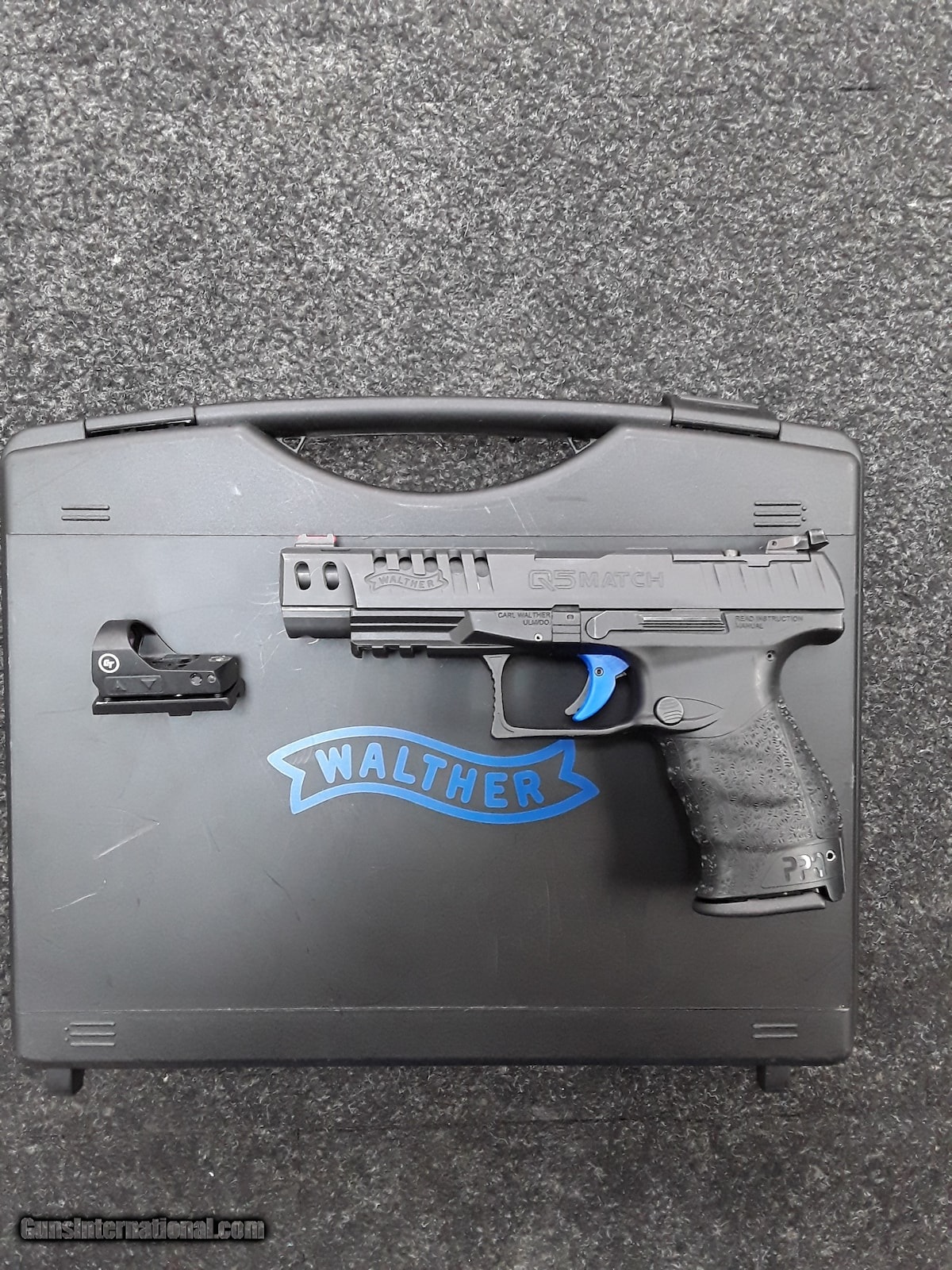 Description: Guns Listing ID: 863411 Pistol CRIMSON TRACE RED DOT Three (3) 15-Round Magazines Magazine Loader Alternate Backstraps Keyed Cable Lock Owner‚‚s Literature Factory Foam-Fitted Hard Cas SOLD Manufacturer: WALTHER Model: Q5 MATCH Caliber Info: 9MM LUGER (9X19 PARA) Condition: Used - Non-Certified Barrels: 5 BARREL |