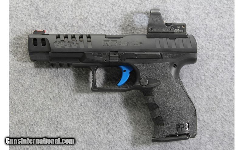 Description: A nice Walther Q5 Match 9mm with Deltapoint Pro. Grip tape waas added to the grip. Has some wear overall but in excellent condition. 9mm Luger SOLD Metal Condition: Excellent with wear Wood Condition: Excellent with wear Bore Condition: Bright and Shiny Barrels: 5 Inches Triggers: Single action auto Sights: Leupold Deltapoint Pro Item Location: Gonzales, LA |