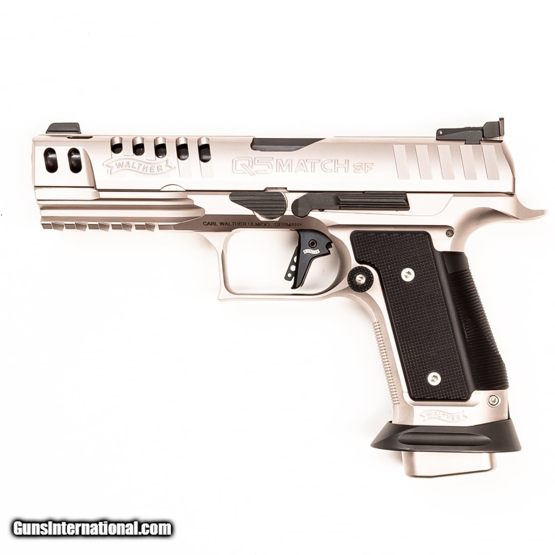 Description: Guns Listing ID: 905204 The Walther Q5 Match SF takes the legendary PPQ and turns the screw to make a top-of-the-line, steel-framed competition pistol. It boasts a match-grade trigger, performance slide cuts, an optics-ready slide, and numerous other features meant to give you an edge. If you‚‚re looking for a high-end competition pistol, this Walther is a great option! Purchase includes the original combination lock case, two 17-round magazines, and a loader. Get the best bang for your buck when you get a Certified Used Firearm . When you see the Certified Used stamp on any of our firearms, you can be confident that you’re getting exactly what you want – a gun only in very good to excellent condition and held to the highest quality standard. All Certified Used Guns come with a ‘no questions asked’ return policy . PLUS, ALL CERTIFIED USED GUNS SHIP FREE SOLD Manufacturer: WALTHER Model: Q5 MATCH SF Caliber Info: 9MM LUGER (9X19 PARA) Condition: Used - Non-Certified Barrels: 5 BARREL Finish: STAINLESS |