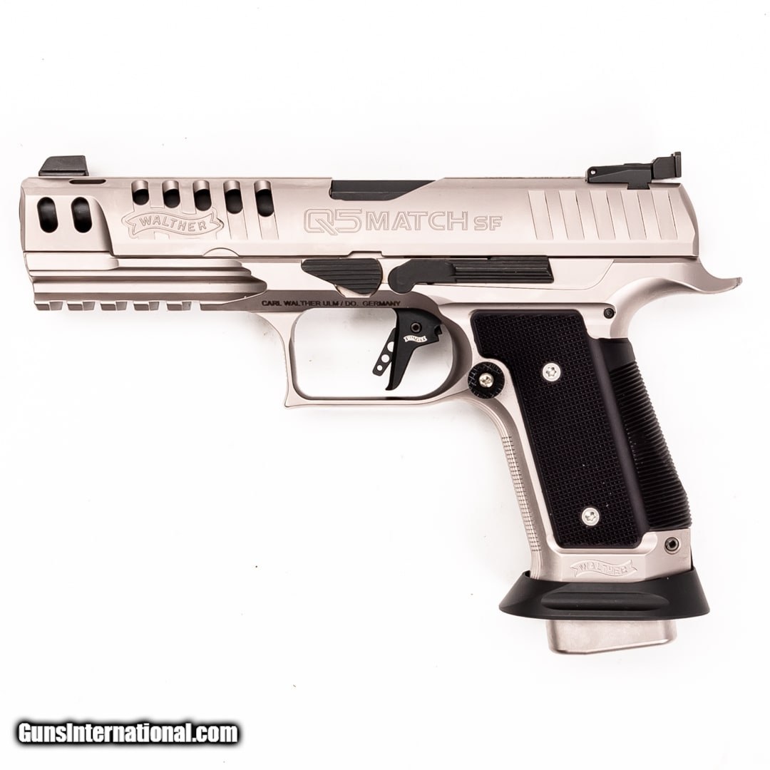 Description: Guns Listing ID: 345548 This Walther Q5 Match SF "Black Tie" will make a phenomenal yet elegant shooter. It ships in the lockable fitted case (combo 000) with 2-15 round magazines, a loader, and the owner's manual. SOLD Manufacturer: WALTHER Model: Q5 MATCH SF Caliber Info: 9MM LUGER Condition: Used - Certified Barrels: 5 BARREL Finish: STAINLESS |