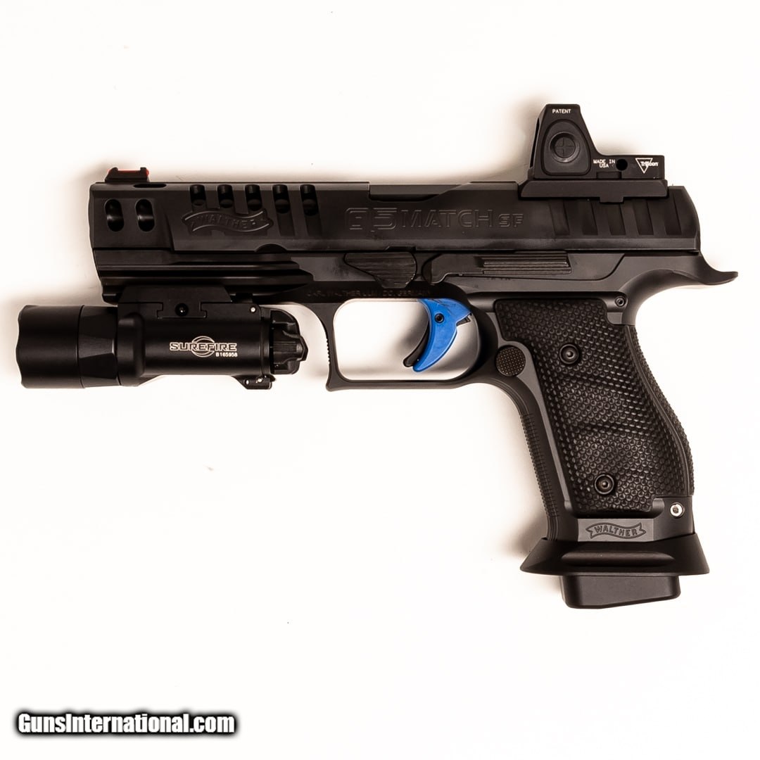 Description: Guns Listing ID: 585896 The Walther Q5 Match SF takes the legendary PPQ and turns the screw to make a top-of-the-line, steel-framed competition pistol. It boasts a match-grade trigger, performance slide cuts, an optics-ready slide, and numerous other features meant to give you an edge. If you‚‚re looking for a high-end competition pistol, this Walther is a great option! This Q5 Match SF has a Trijicon RMR (with packaging) and a Surefire X-300 light. Purchase also includes the original case, manual, three 15-round magazines, a right-handed OWB holster, and an OWB two-mag holder SOLD Manufacturer: WALTHER Model: Q5 MATCH SF Caliber Info: 9MM LUGER (9X19 PARA) Condition: Used - Certified Barrels: 4.7 BARREL Finish: BLACK |
