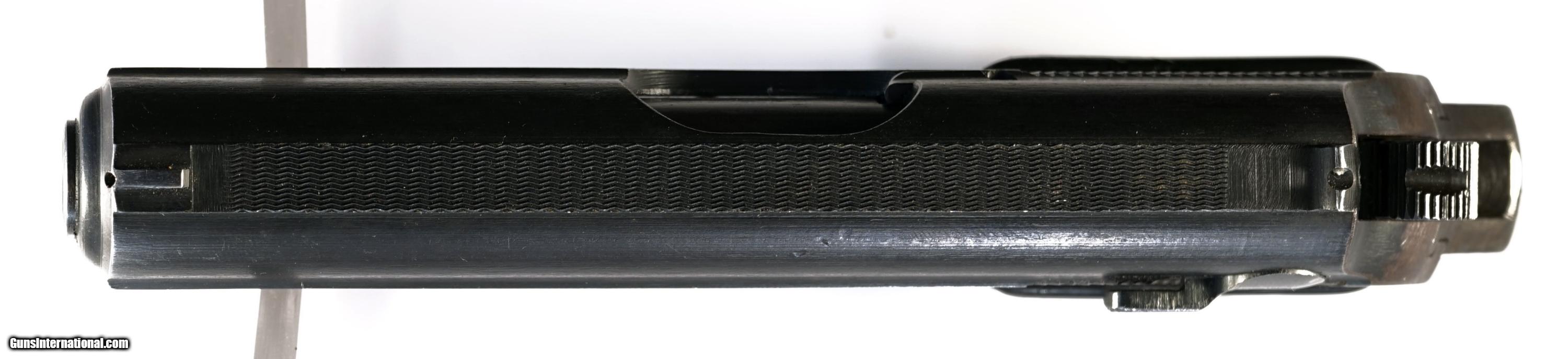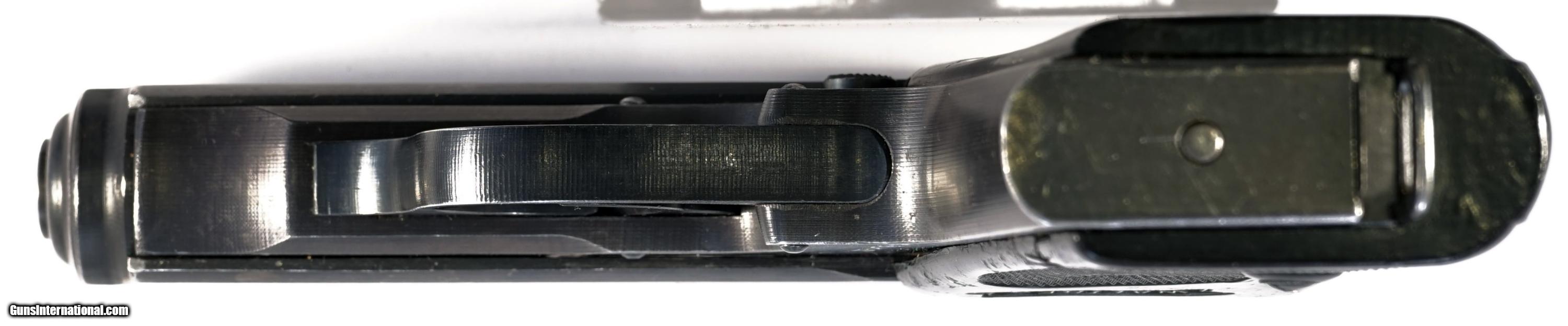Description: Inv. 5758 Walther (Rare Nazi Police) PPK cal. 32, Ser. 3834XX. Rare and beautiful, this is a scarce Eagle/C coded police PPK. The condition is super. Retaining at least 97-98% original high polish factory blue. The very slight loss that there is, is contained to the muzzle, as well as a scant bit of sharp edge silvering. The grip strap shows no sign of graying. There are no pits, rust, flakes, ub marks or scratches anywhere. All parts match. The right side of the slide is stamped Eagle/N, the barrel also Eagle/N . The left side of the frame, the scarce Police Eagle/C. The wrap around black plastic grips show very little wear and have no chips, splits, or flattened points. The bolt face and feed ramp, like the rest of the gun, show no wear. The bore is fantastic, with razor sharp and mirror bright rifling. The gun comes with one original PPK magazine. Stamped with the Walther Banner & PPK 7.65.mm. It just doesn't get better than that. Scarce and pristine, the pride of some high ranking Nazi Police officer.....$2295. To purchase this firearm or if you want to request more information contact us at: Email ckgunsymail Phone 201-512-0002 Cell 201-575-6838 FAX 201-215-4759 We accept most major credit cards. Prices shown are Discounted 3% for Cash or Check. The buyer must be familiar with all the laws governing the purchase and the ownership of firearms in their own city and state. The Yankee Armorer, Inc is not responsible for any failure to comply with or observe these laws. The Yankee Armorer, Inc will only ship after full payment and receipt of all required documents. Shipping: Add $35.00 for handguns, $45.00 for long guns. New Jersey buyers are subject to a 7% sales tax. The Yankee Armorer, Inc offers a 3 day inspection period with full refund upon return of intact firearm and in the original condition. The Yankee Armorer, Inc offers a no interest lay away program - 25% down; 25% in 30 days; 25% in 60 days; and full payment in 90 days. Any violation of this policy is subject to restocking and forfeiture of all payments. Any variation from this policy must be agreed to in advance. Unshipped Cancelled sales are subject to a 20% restocking fee. Be advised that all firearms sold by The Yankee Armorer, Inc. or the Gun Exchange, LLC (SELLER) are sold as collector’s items. They have not been fired or tested for safety and must be examined by a license gunsmith prior to use. By purchasing any item from the (SELLER), you are agreeing to hold the (SELLER) free from any damages or lawsuits of any nature. Any item left for transfer or storage will be charged to $25.00 per month, per item from the day of its receipt. Any variation from this policy must be agreed to in advance. Store hours 10:00 am to 5:00 pm Tuesday -Saturday. It's always best to call for appointment. Store 201-512-0002, cell 201-575-6838. SOLD Curio/Relic: Yes Manufacturer: Walther Model: PPK Serial Number: 3834XX Caliber Info: .32 |