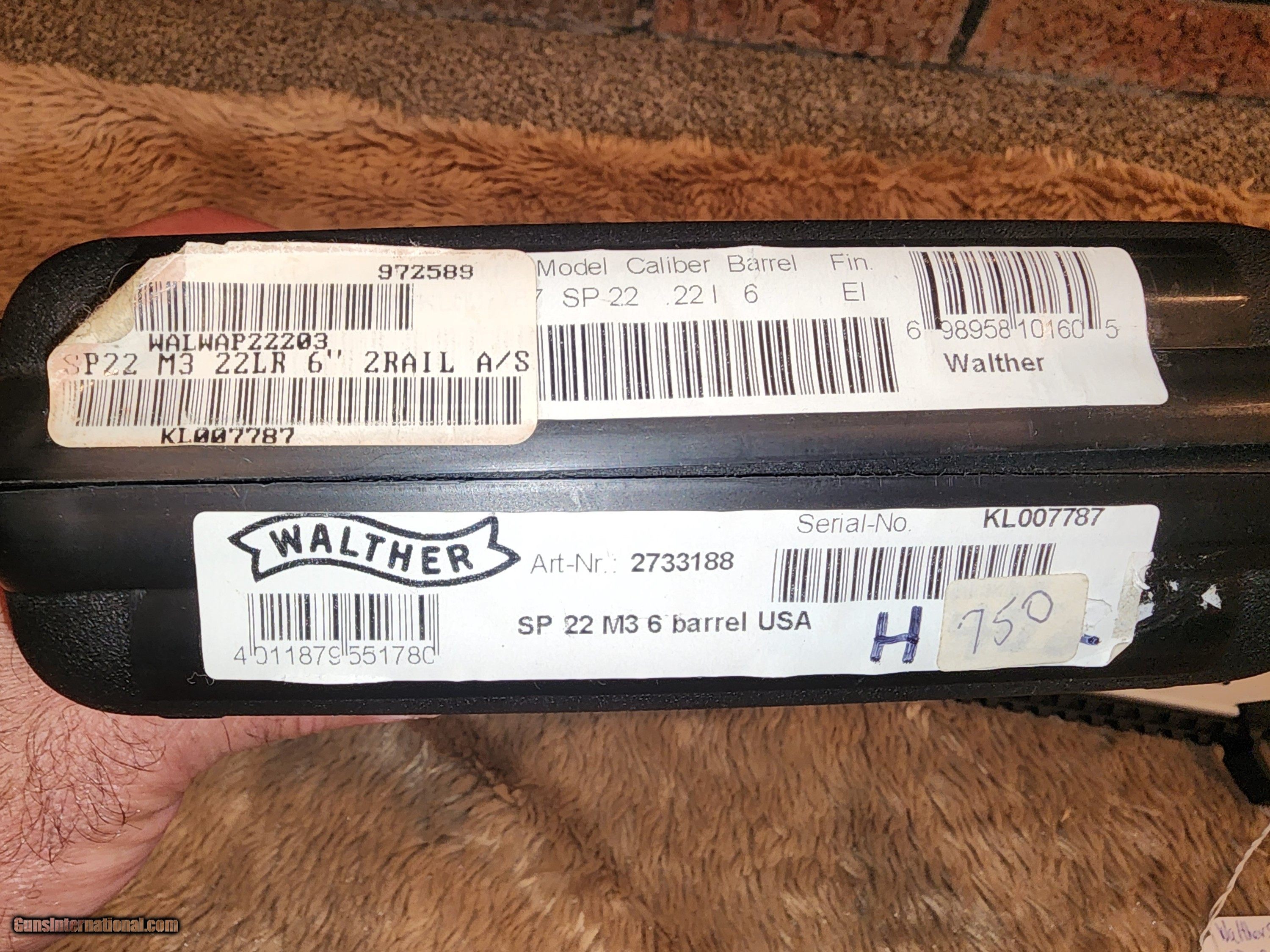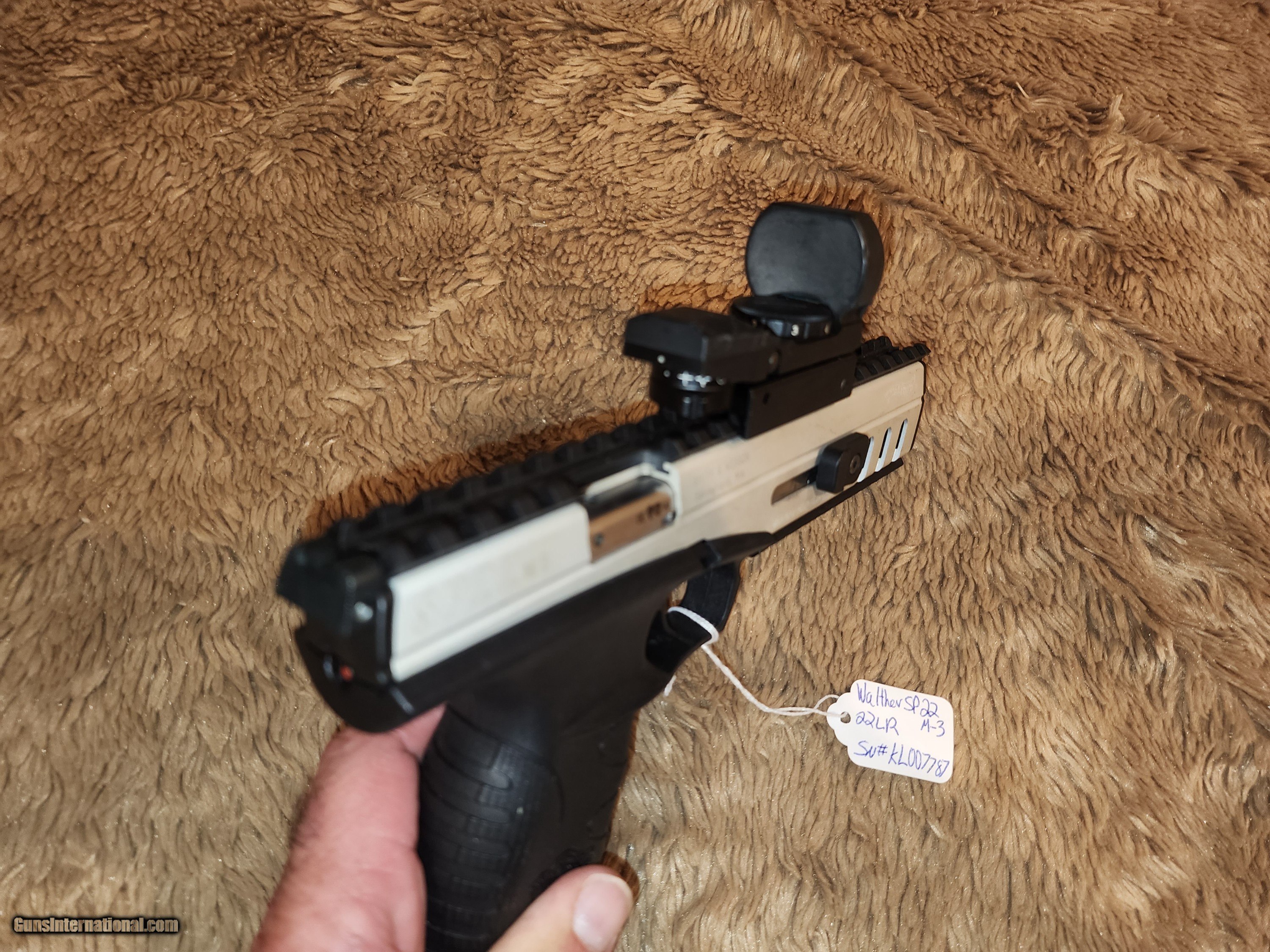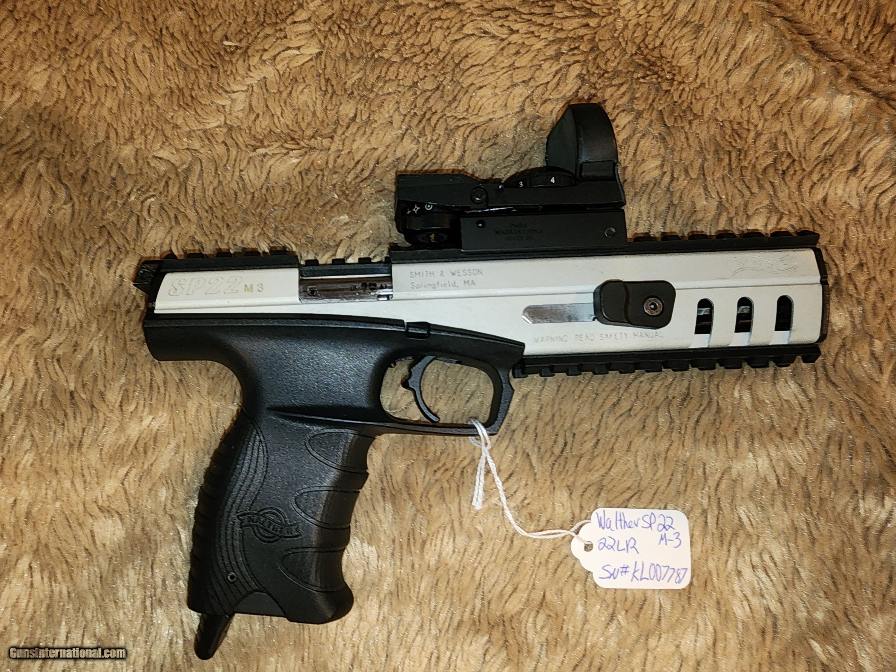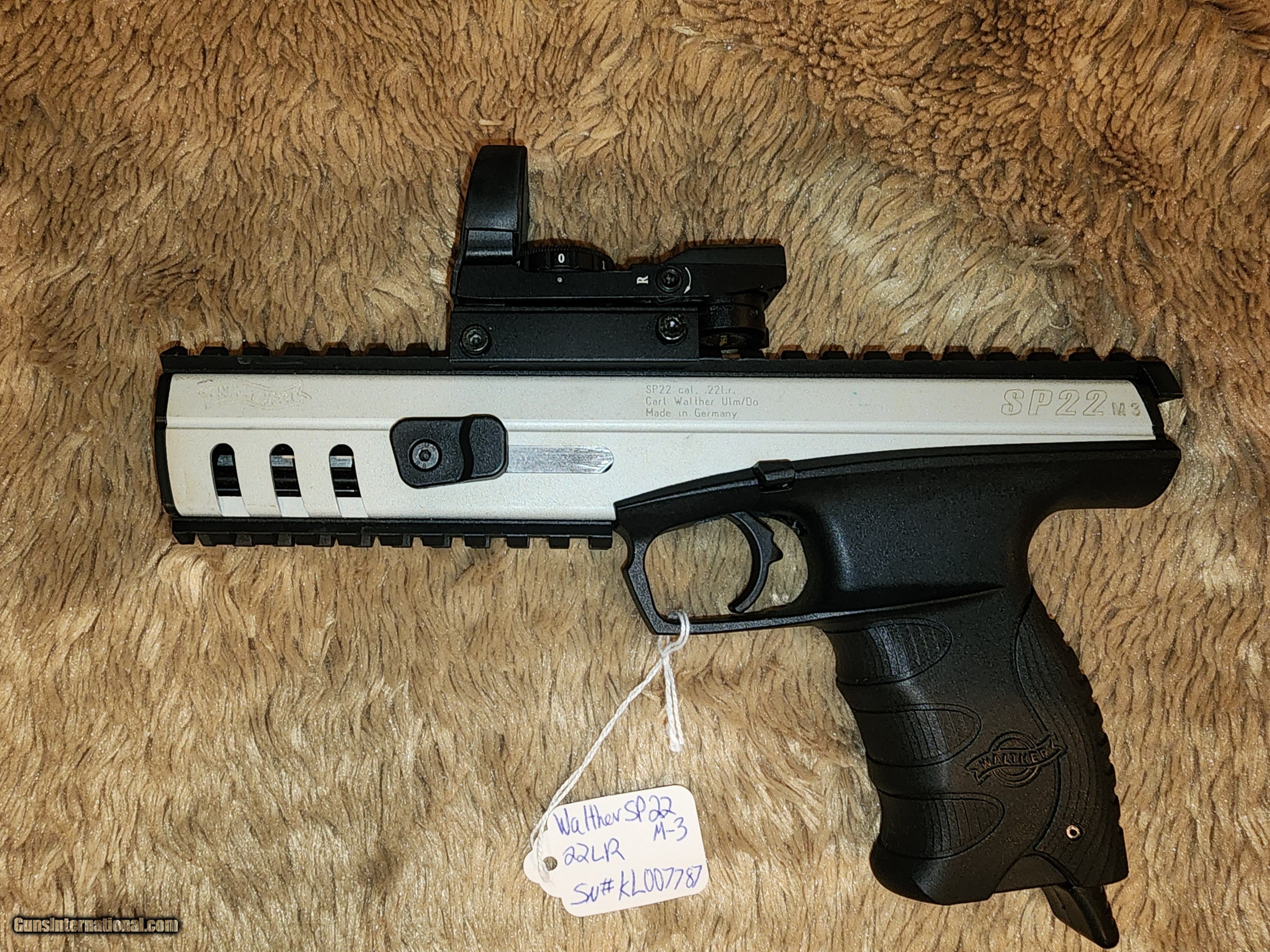 Description: Walther SP22 M3 22lr, holographic sight, extra mags, lightly used this gun is on consignment from an estate I have no other information SOLD Handgun Caliber: .22 Long Rifle |