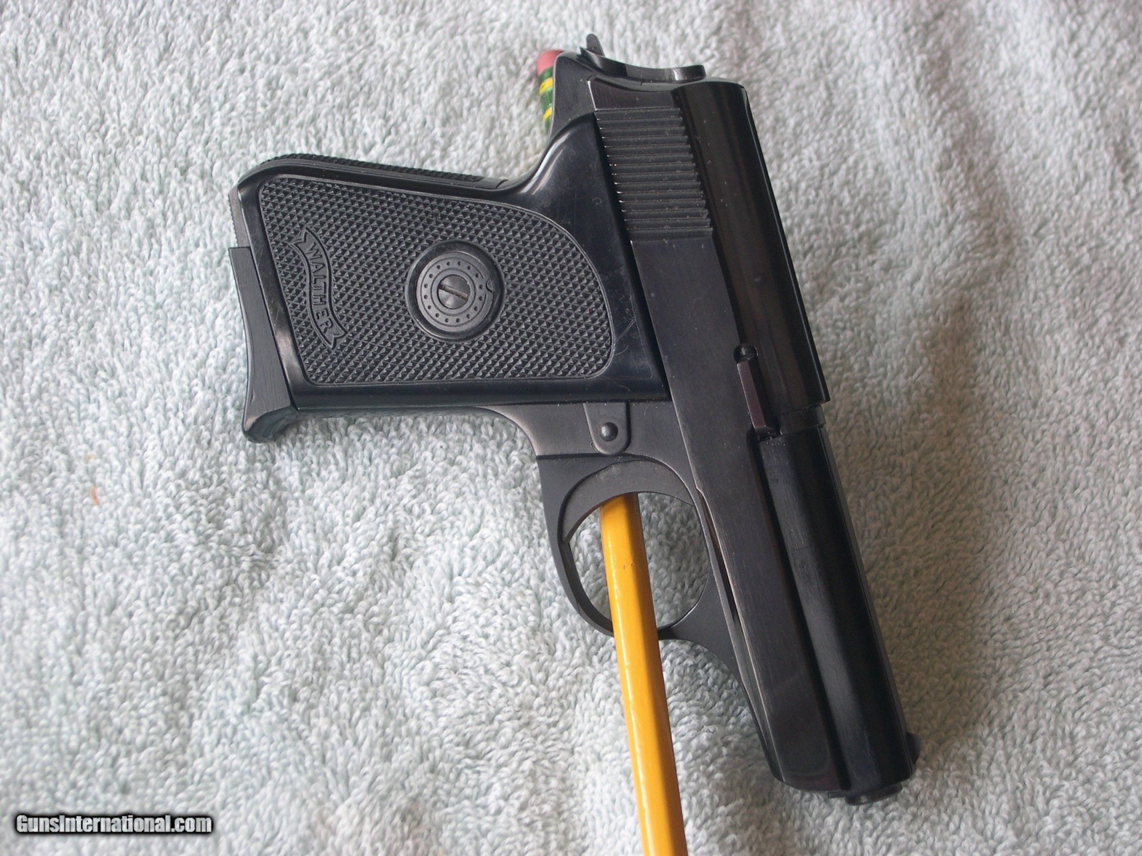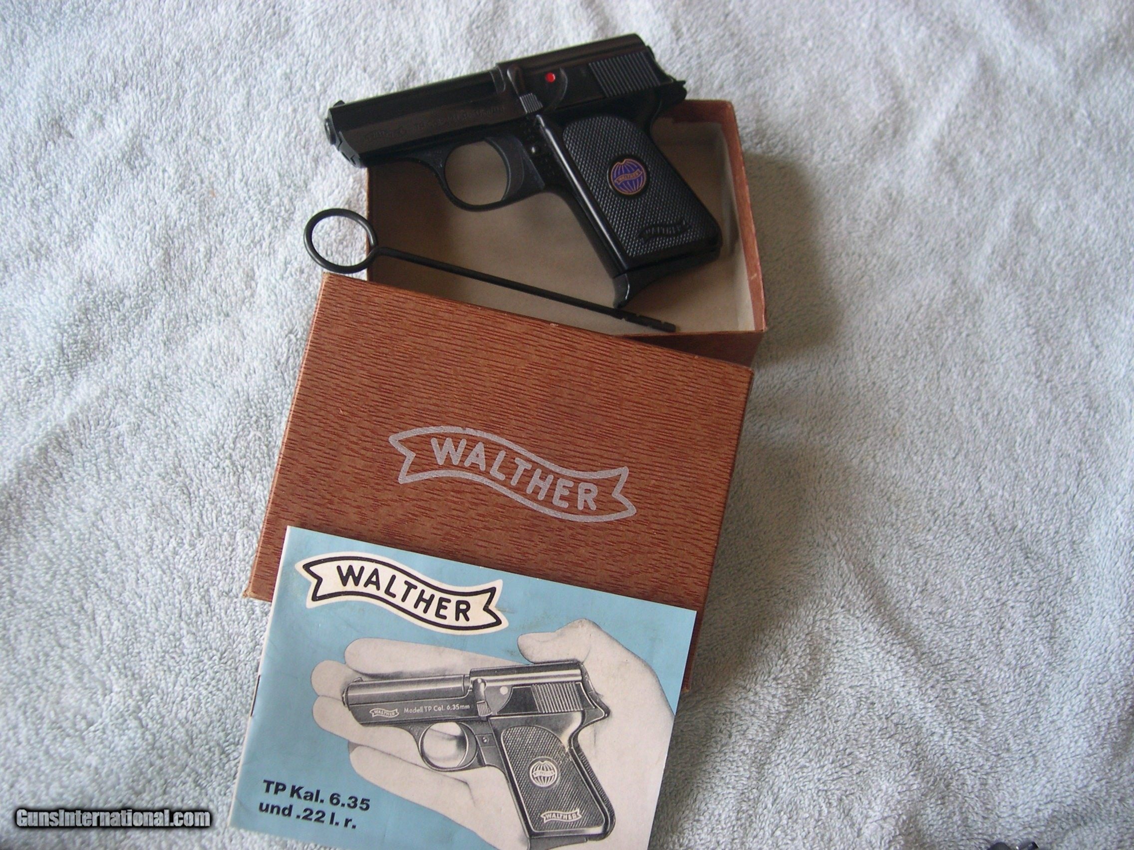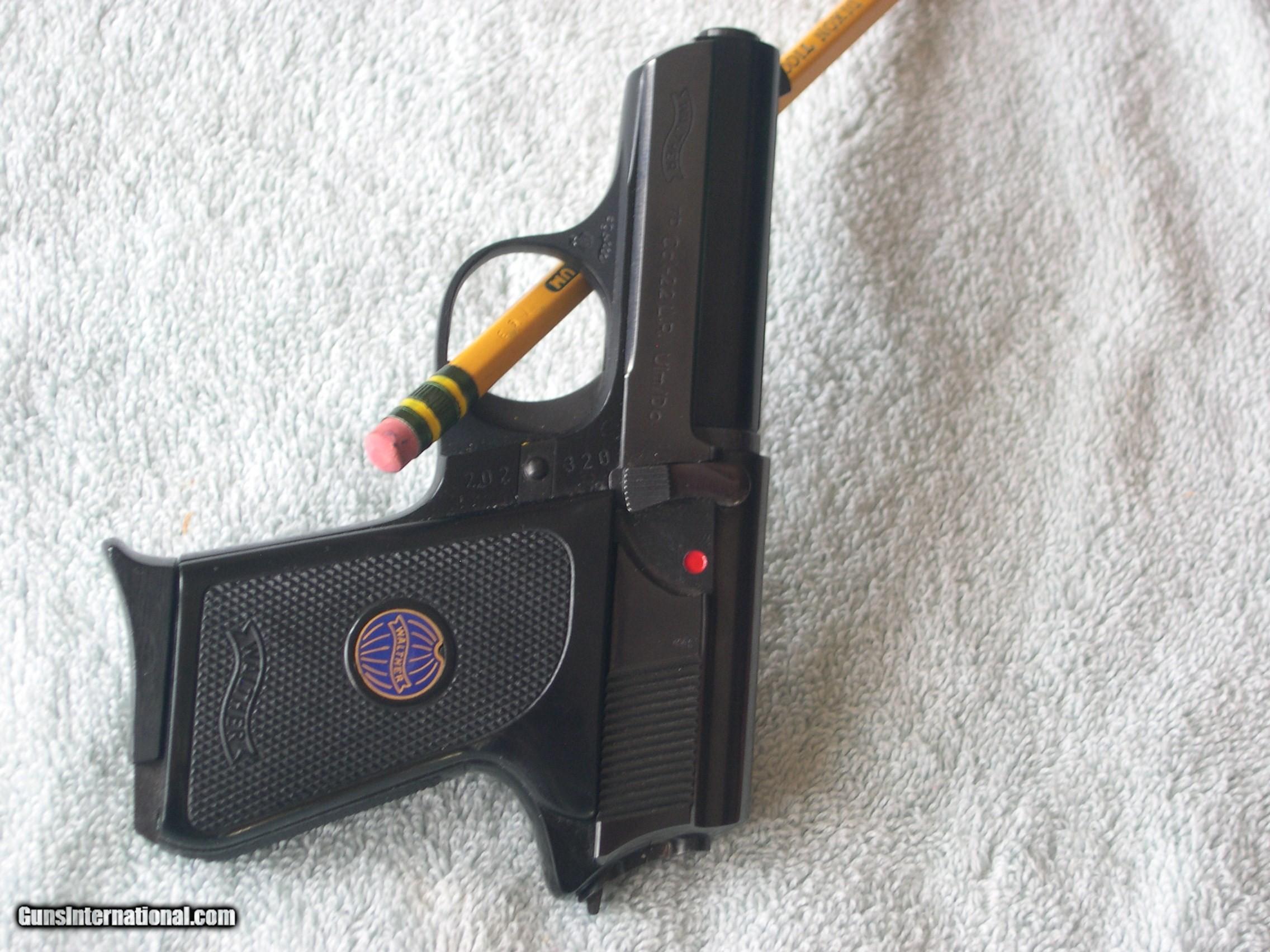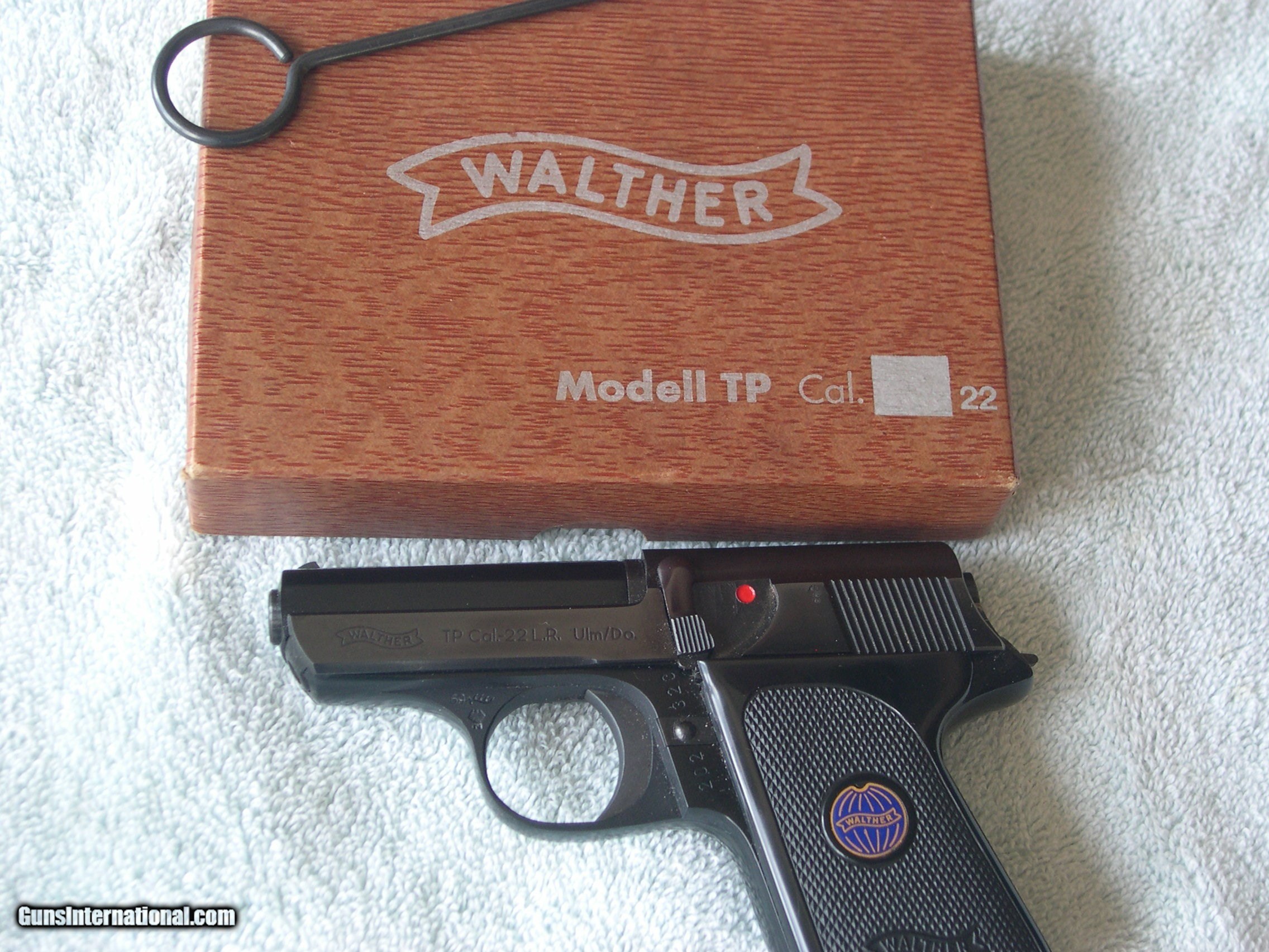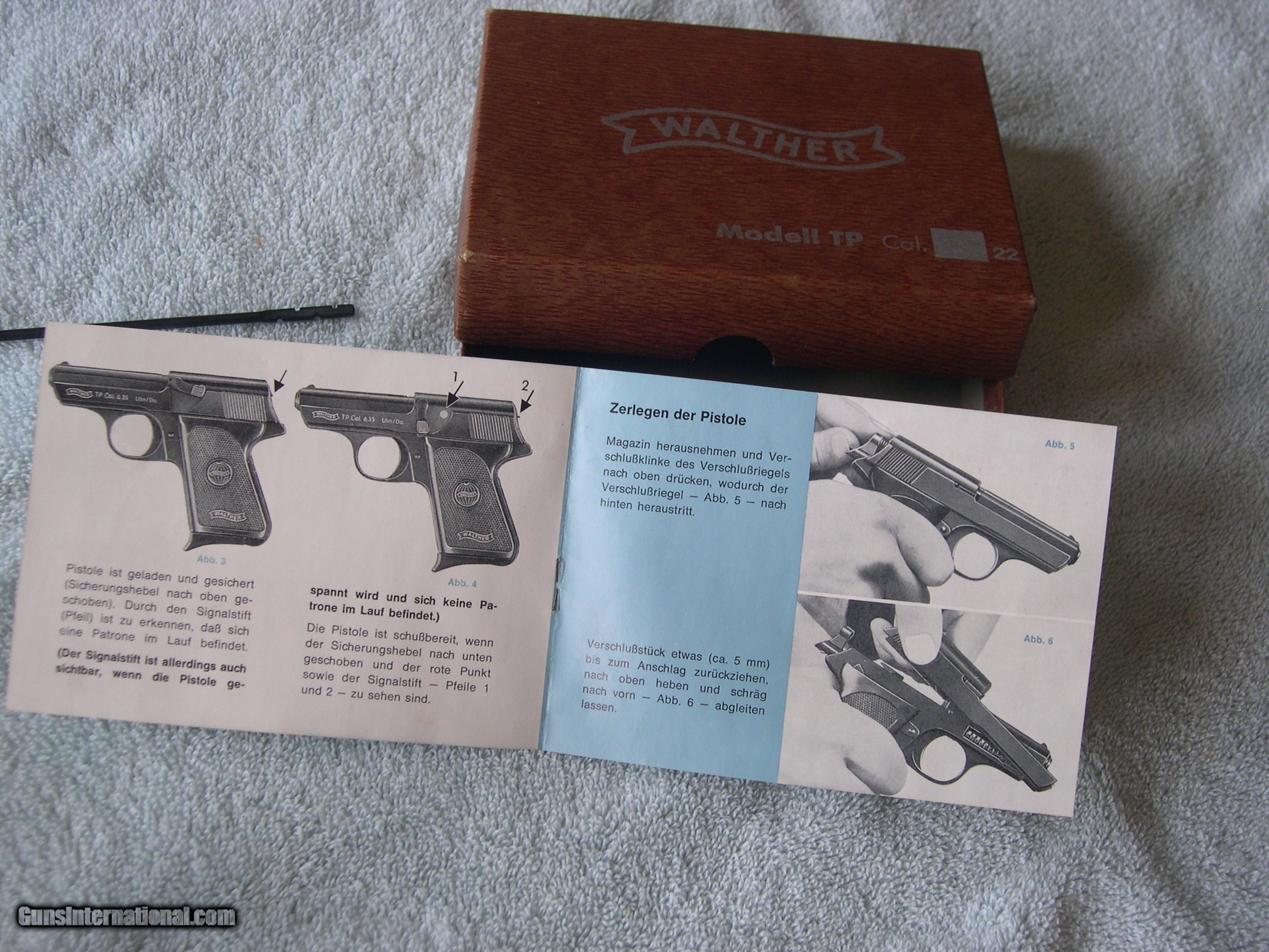 Description: This a very scarce Walther pistol, T-P 22, has crown N proof, ULM/ DO, 99.9% in original mint box with manual & tool !! An all original and very scarce Walther, in absolutely new condition, in original perfect box !! SOLD |