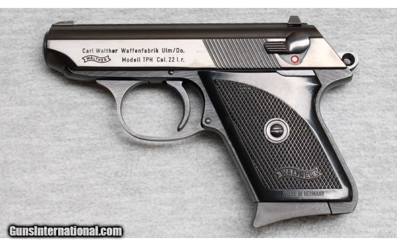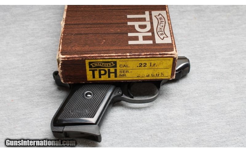 Description: Excellent condition, light wear and handling marks, comes with factory box. The Walther TPH handgun is an extremely compact double-action lightweight semi-automatic pistols in .22 Long Rifle caliber. Pistols in this size range are sometimes referred to as pocket pistols, The TPH has been produced continuously since 1968. This pistol was manufactured in Germany and imported by Interarms. .22 Long Rifle SOLD Chambers: Semi auto Metal Condition: Excellent Bore Condition: Bright Barrels: 2 1/2 Triggers: Double action decocker Butt Pad: Factory grips Sights: 2 Dot iron sights Item Location: La Vista, NE |
