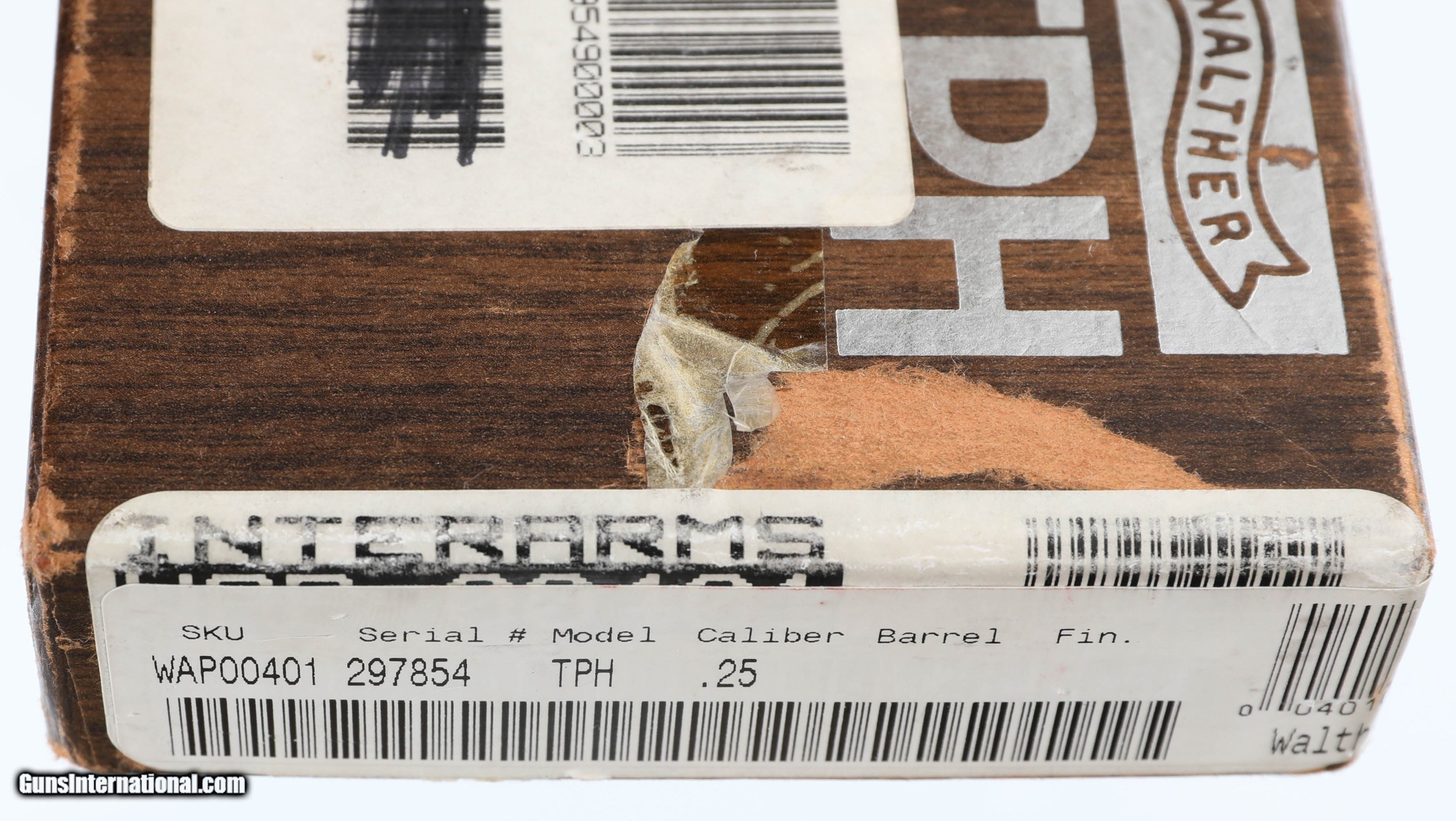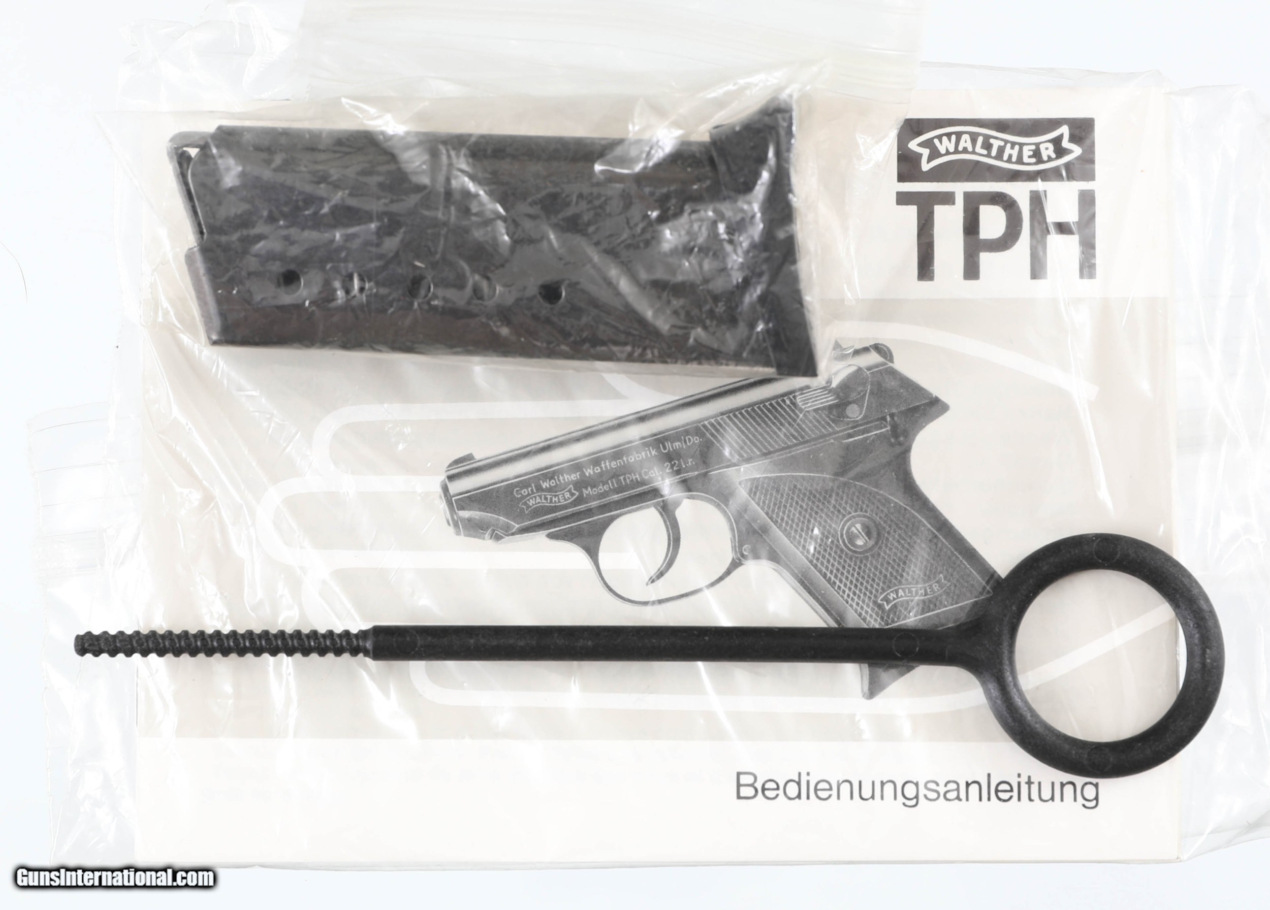 SOLD Handgun Caliber: .25 ACP (6.35mm Browning, 6.35×16mmSR) Manufacturer: WALTHER Model: TPH Serial Number: 2978?? Barrel Length: 2 7/8 Condition: EXCELLENT |