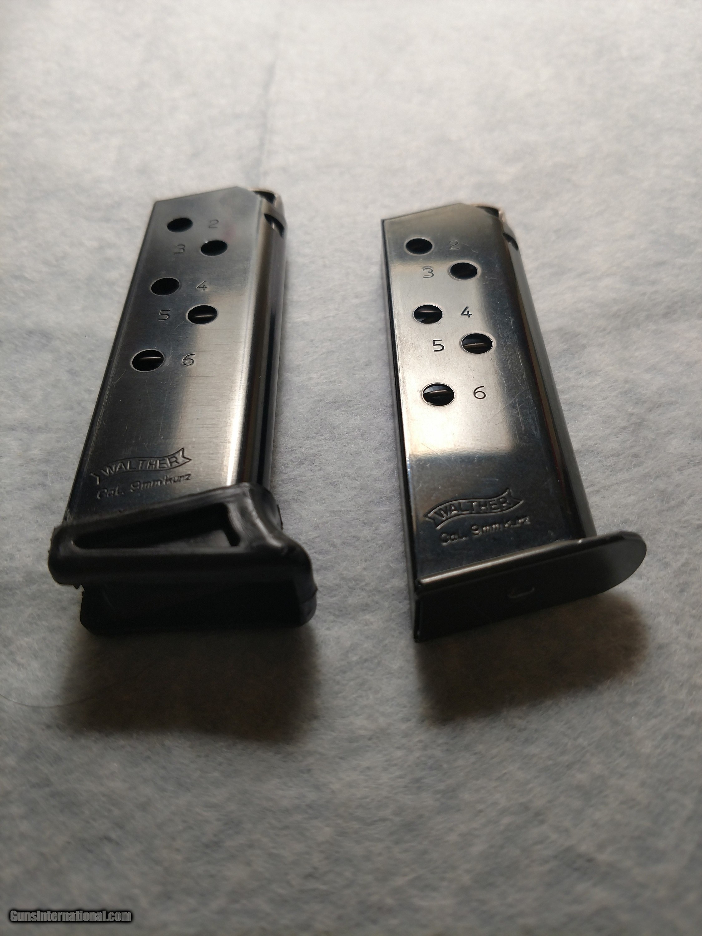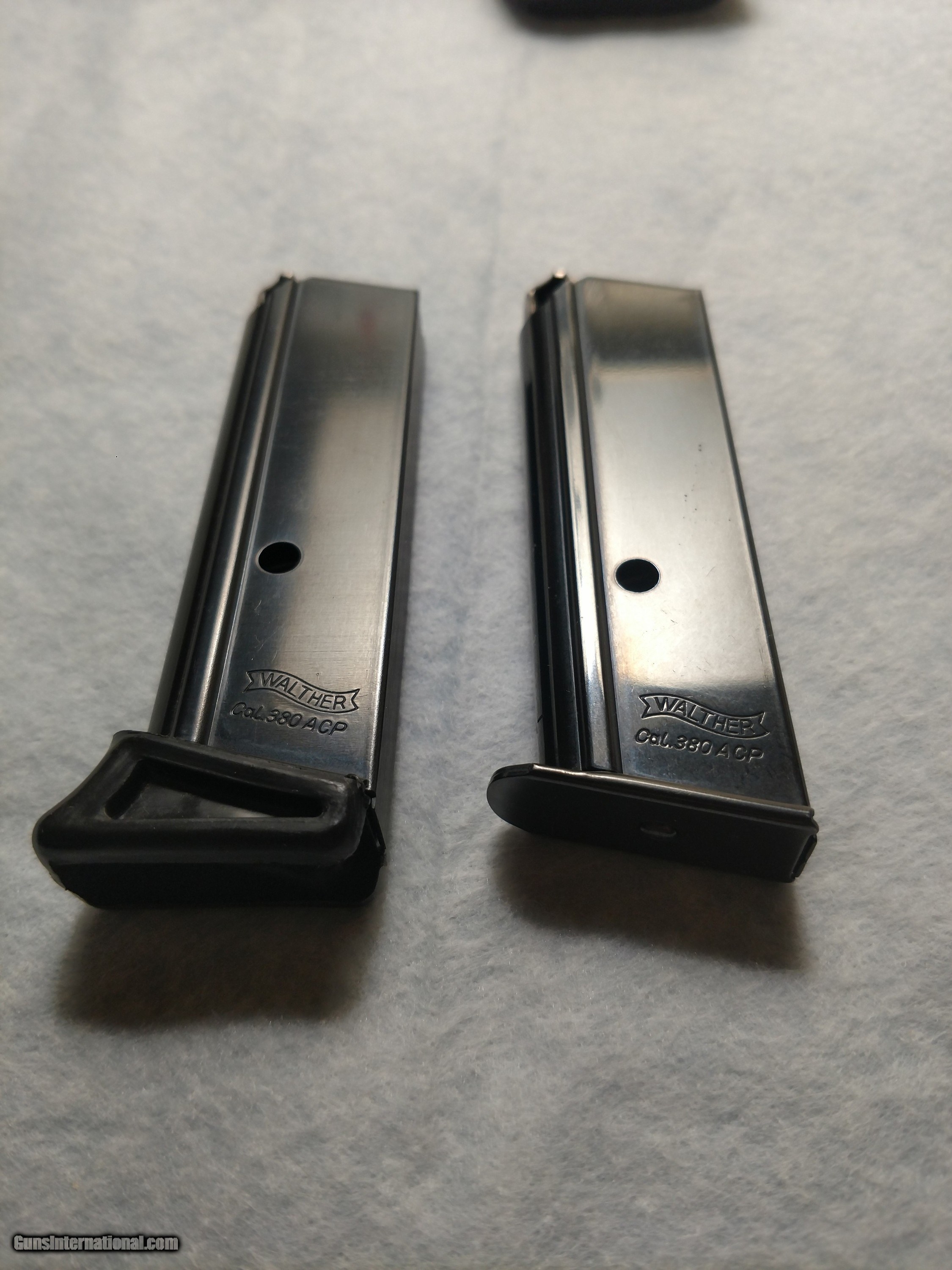 Description: WALTHER PPK distributed by INTERARMS, .380 ACP, serial number K006827, Walther blue in absolute mint, flawless condition, overall 100%, with original owner's manual and two Walther 6-shot magazines and glossy bore in 3.2" barrel with "A" stamp, white dot front sight PLUS soft zipper carry case! If this is your first PPK, the 39 page owner's manual is very detailed and very useful. The complete package is $975 including FedEx shipping to your FFL dealer in your area. Call or text me at 318-780-4242 if you are interested. Meanwhile, enjoy the pictures. SOLD Manufacturer: Walther Model: PPK Serial Number: K006827 Barrel Length: 3.2 Bore: Bright and Shiny Ejectors: Semi-automatic Condition: Perfect in every way Metal Condition: Perfect Bore Condition: Flawless Barrels: single Action: Semi-automatic Triggers: Single Finish: Glossy blu Weight: 21 ounces Sights: White dot, fixed Manufacture Date: 1987 Engraving: none Extras: owner's manual Case: Soft, zipper Item Location: Shreveport, Louisiana |