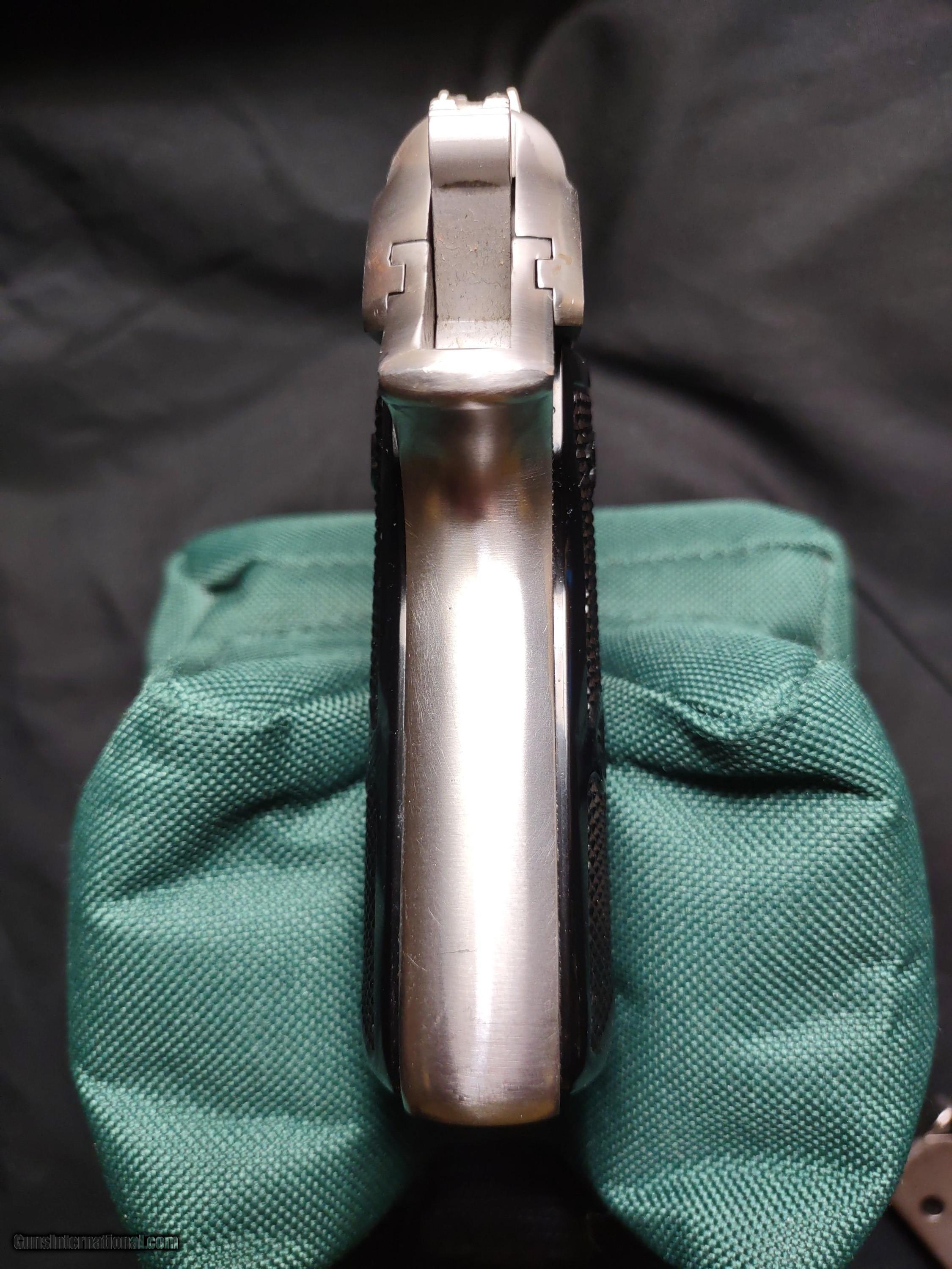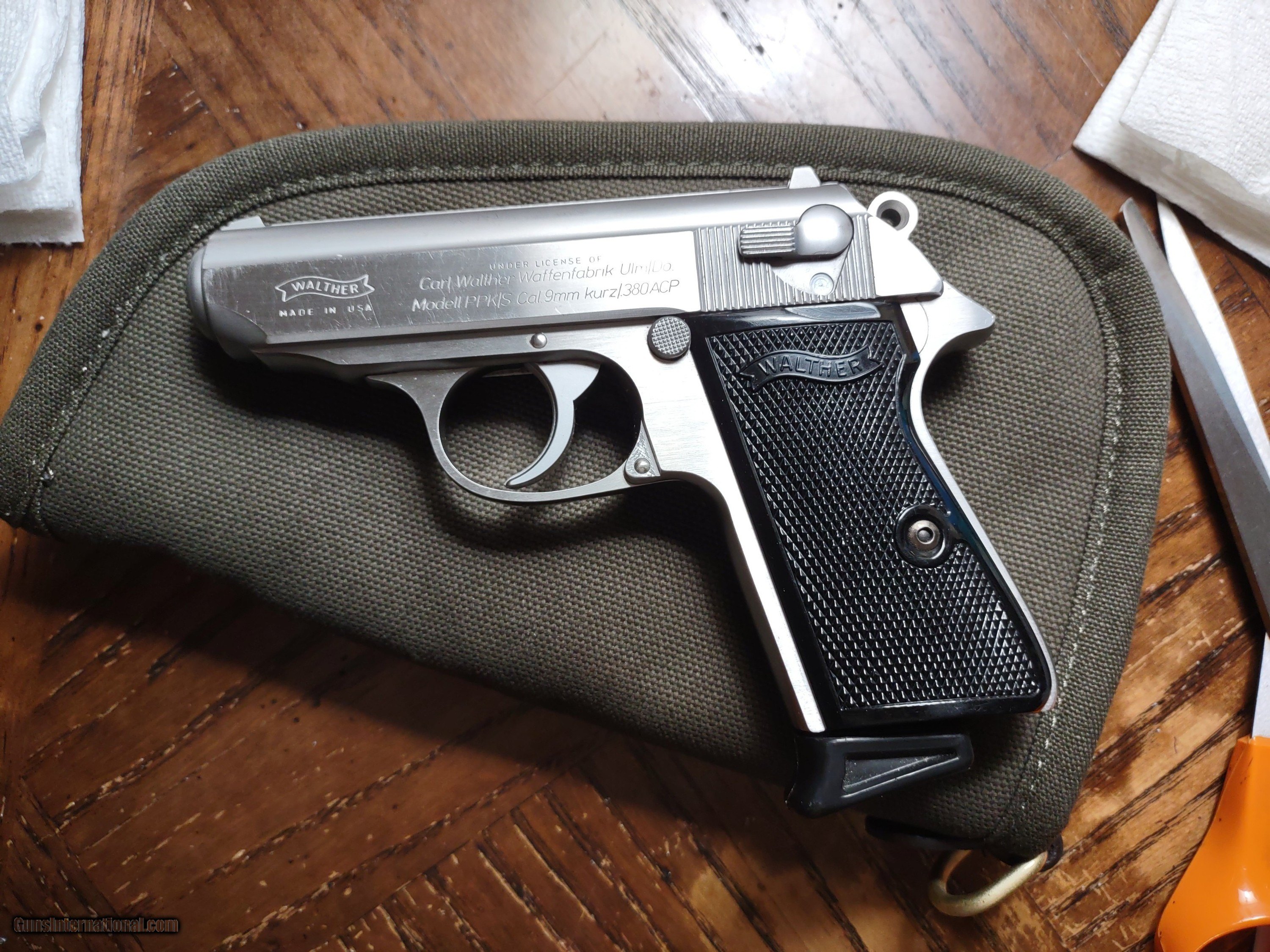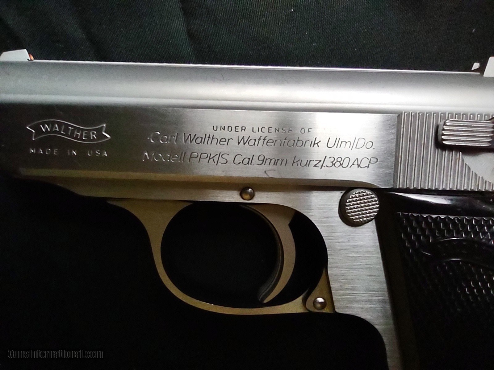 Description: WALTHER PPK/S in pristine flawless stainless steel and in .380 ACP caliber in serial number S015053 believed to have been made around 1990. The pistol is equipped with red dot fixed sights, 3.2" barrel and weighs in at 23 ounces plus spectacular black Walther grips along with two magazines and owner's manual. The price is $1150 including UPS shipping to the FFL dealer near you. Call or text me at 318-780-4242 if you are interested. Meanwhile, enjoy the pictures. SOLD Manufacturer: WALTHER Model: PPK/S Serial Number: S015053 Barrel Length: 3.2 Bore: bright and glossy Chambers: flawless Condition: Flawless Metal Condition: Flawless Wood Condition: No wood Bore Condition: Perfect, glossy Barrels: Single Barrel Type: Pistol Action: Semi-automatic Triggers: Single Finish: Stainless steel Weight: 23 ounces Sights: Fixed, open Manufacture Date: 1990 Engraving: None Case: Canvas & leather zipper carry case Item Location: Shreveport, Louisiana |