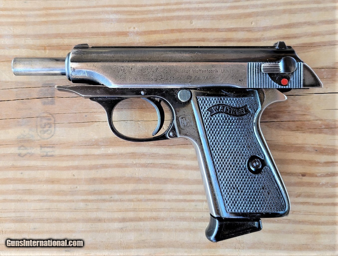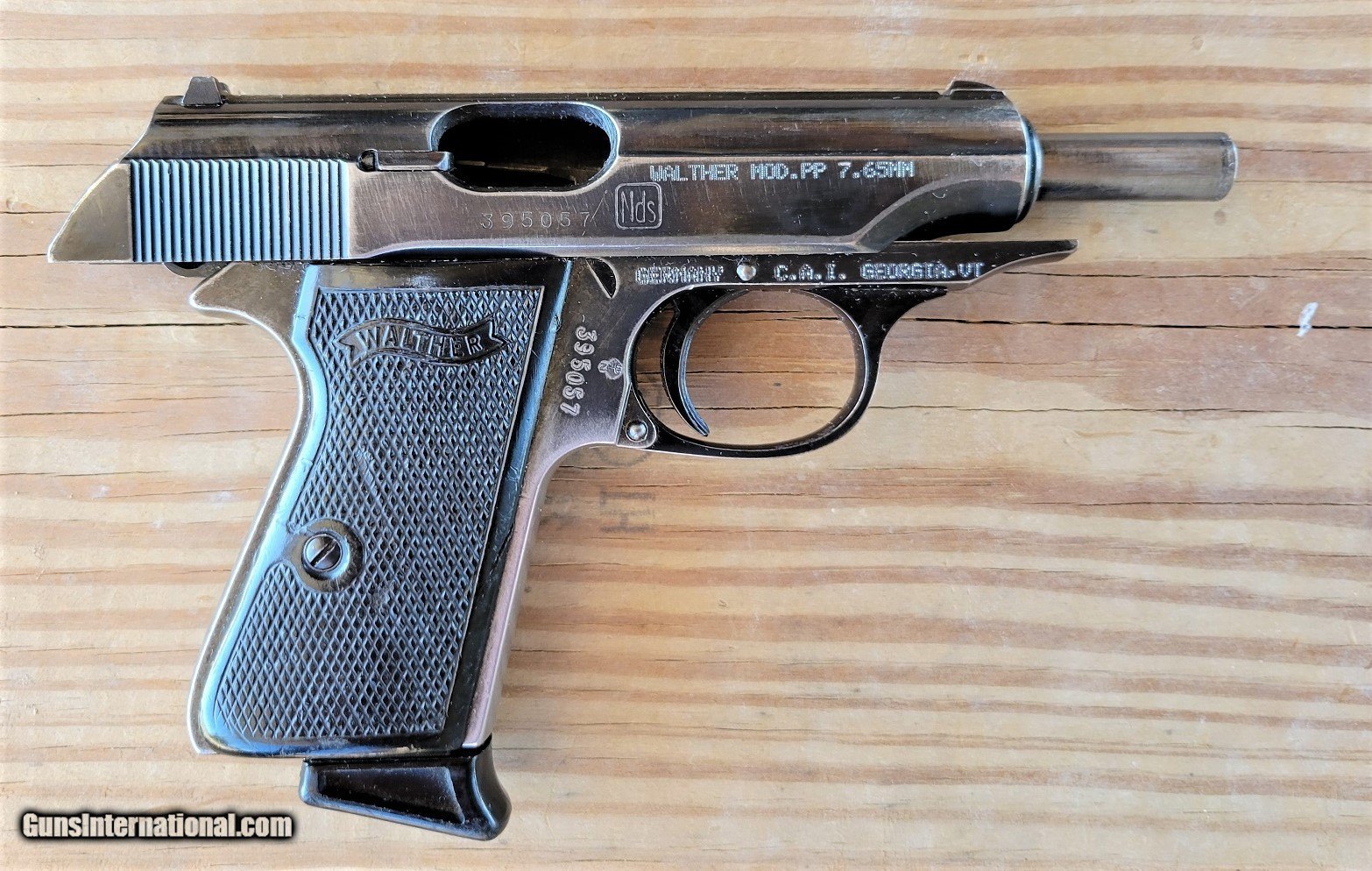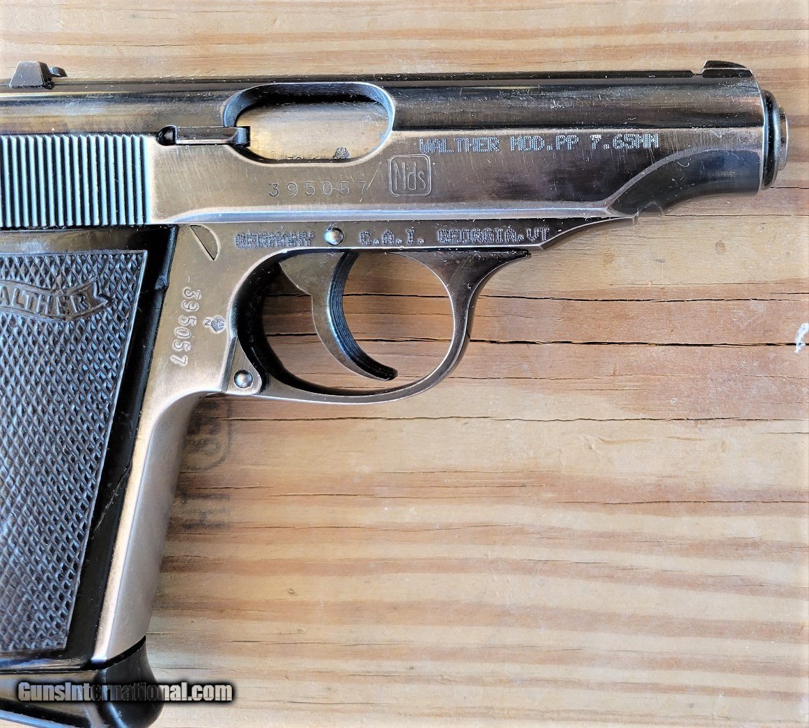 Description: Very nice used German made Walther PP in Cal 7.65. Condition is very good. Grips intact no chips or cracks. Includes one factory magazine. Pistol is solid and functions as designed. Obvious bluing loss & wear on sharp edges (holster?) C.A.I. Import I am a licenised FFL dealer with many years experience selling nationally, internationally and on the internet. Shipping to your FFL in the lower 48 is $35 insurance is EXTRA but highly RECOMMENDED. Absolutely NO California, New York or Maryland Sales. No exceptions. No face to face sales - must ship to your FFL - NO EXCEPTIONS- Mail payment and FFL to: Gary Martin 601 Hale St. Llano, TX 78643 Accepted methods of payment are USPS Money order or cashier's check drawn on your bank. NO CREDIT CARDS Please include a copy of your dealer's FFL with payment. Please contact me with any questions you might have. Price is $499 SOLD Handgun Caliber: .32 ACP (7.65x17mm Browning SR) Manufacturer: Walther Model: PP Condition: Very Good Metal Condition: Very Good Bore Condition: Excellent |