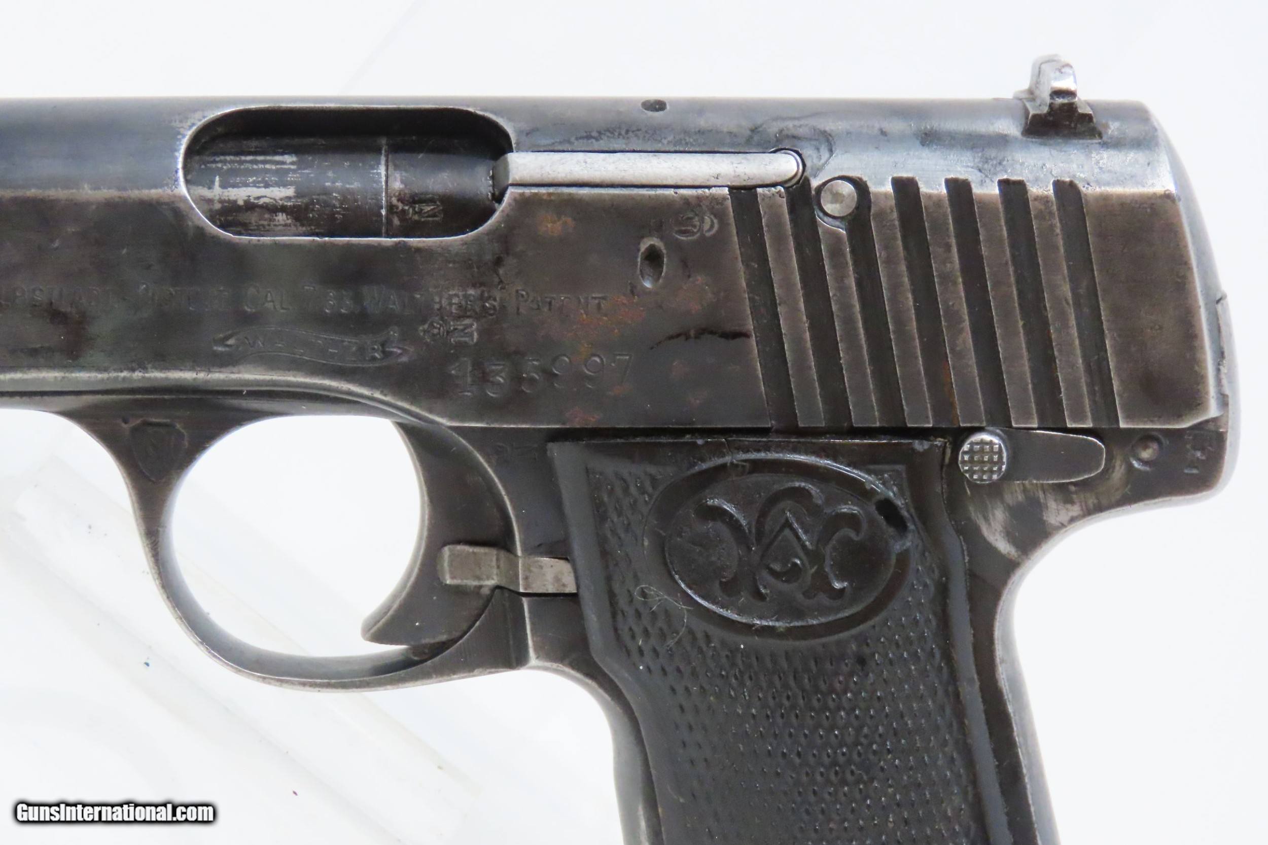 Description: WORLD WAR I Era Prussian WALTHER “Model 4” 7.65mm Semi-Automatic Pistol C&R 1 of 250,000 w/ CROWN/G MILITARY ACCEPTANCE Mark Here we present a C&R Walther Model 4 Pistol manufactured circa the World War I era in Zella St. Blasii, Thuringia, a traditional metalworking and weapon-making area in Central Germany. World War I required a handgun more suitable for military use than the Walther Models 1, 2, and 3, and the Walther Company designed the Model 4 as quickly as possible by simply enlarging the Model 3, giving it better sights and a greater magazine capacity. They were rewarded with an order from the Prussian government in May of 1915 for 250,000 Model 4’s. The Walther, as compared to the Luger P.08, was less powerful but was reliable and easy to maintain. Once it was adopted, it rapidly gained the confidence of the soldiers who used it. By the end of World War I, thanks to its government contract, Walther was the largest pistol manufacturer in Germany. This example is one of roughly 250,000 total pistols produced. The Model 4 was rugged and possessed a very simple mechanism, all features very appealing to the German army, which, in the first months of the Great War, presented Walther with a contract for some 250,000 Model 4s to be used as officers’ pistols. Apparently only about 75,000 actually saw service. Martially used 4s (also often referred to as the Model 1914) can be distinguished by German military-acceptance stamps, along with the usual “crown/N” proofmarks. Crown/Gothic German Army acceptance stamps noted on Model 4's are Crown/Gothic “G”, Crown/Gothic “M”, Crown/Gothic “F”, Crown/Gothic “D”, and Crown/Gothic “P”. This example has the “Crown/G” After World War I, Walther continued to build Model 4s. Production ceased in 1929, the year the firm introduced the ground-breaking PP line. Over its production period the Model 4 underwent a quartet of slight variations, mostly involving differences in markings, a few cosmetic alterations and minor mechanical changes. The overall condition is good. Strong action. The bore is in good shape, although the rifling is worn. Both grips are in good shape with average wear from use. Sharp markings. The take down mechanism is marked “404”. The front sight is loose and is easily removed. This firearm is classified as a Curio & Relic. Barrel is 3-1/2 inches. Caliber: 7.65mm Overall condition as seen in photos. Very Fast. Very Safe. FREE SHIPPING. Will need to be sent to your local FFL or C&R licensee. This firearm is classified as a Curio & Relic. Guaranteed AUTHENTIC & Includes CERTIFICATE OF AUTHENTICITY. ancestryguns $1200 #227096 SOLD Curio/Relic: Yes |
