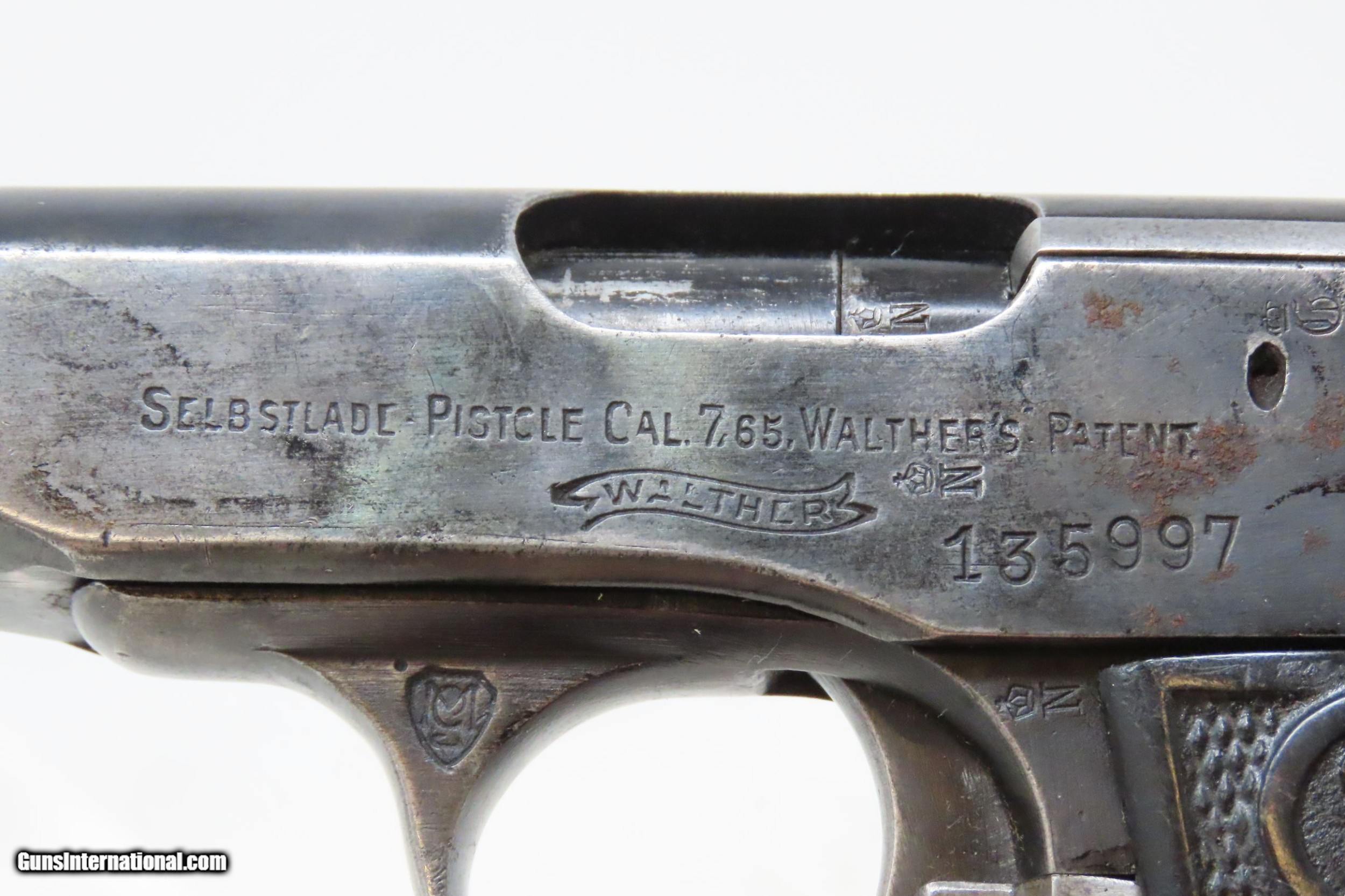 WORLD WAR I Era Prussian WALTHER “Model 4” 7.65mm Semi-Automatic Pistol C&R 1 of 250,000 w/ CROWN/G MILITARY ACCEPTANCE Mark