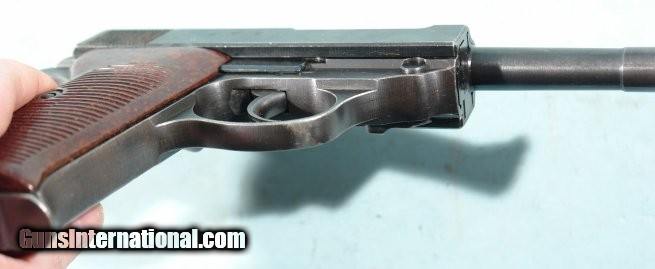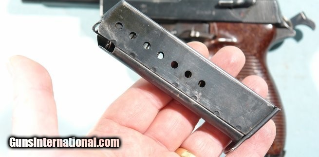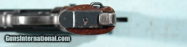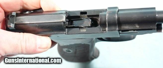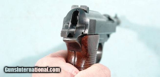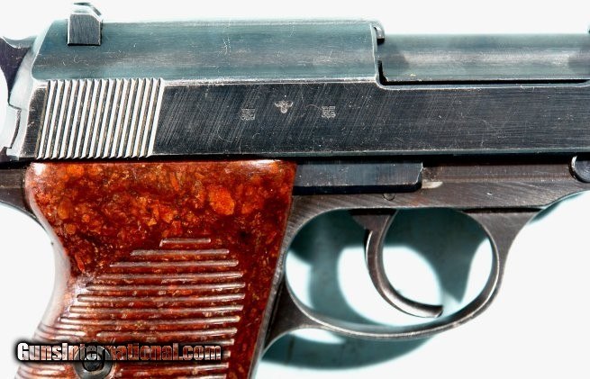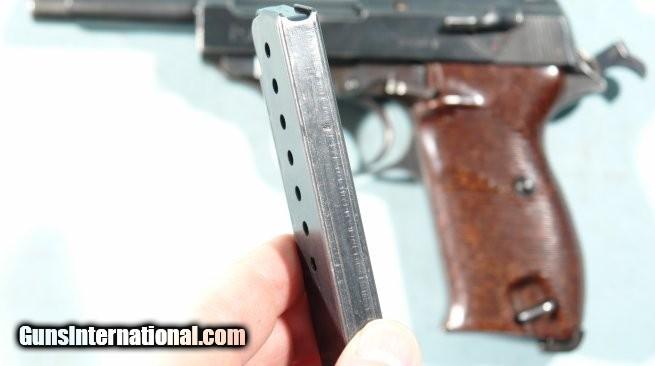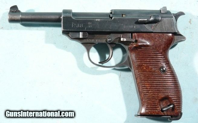 Description: WW2 GERMAN WALTHER P38 OR P-38 AC-43 AC/43 CODE 9MM SEMI-AUTO PISTOL, CIRCA 1943. Serial number "85XX" with f suffix. All matching with no number period mag with "WaA359" stamp. 95% of the original birlliant factory blue with balance at typical edges and muzzle. Waffenamt/359 codes where they should be. Correct mottled brown bakelite grips correct with crisp unturned screw affixing them. Perfect working order with mint bore and rifling. Nice bringback with NO import marks. Fun to shoot too if you can find 9mm this year. SOLD Curio/Relic: Yes Handgun Caliber: 9x19mm Parabellum (9mm Luger, 9x19mm NATO) |