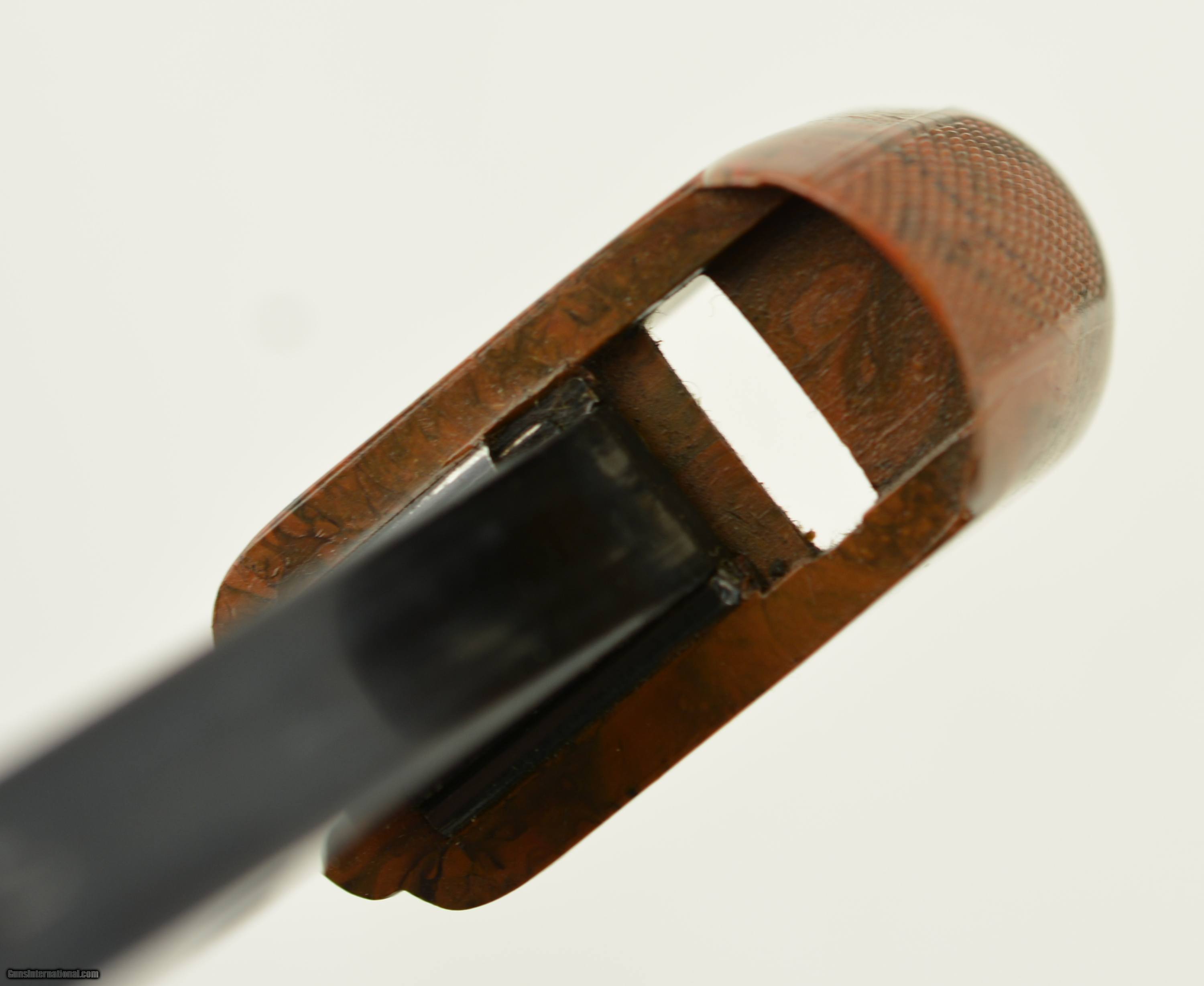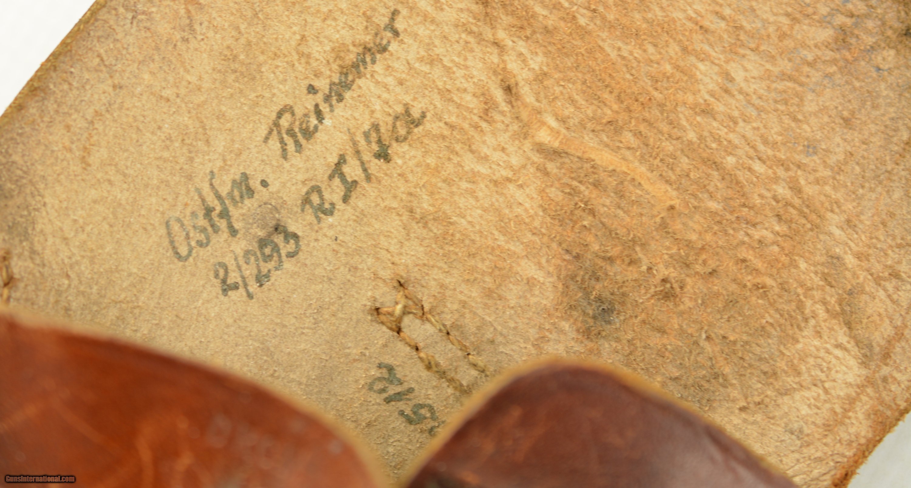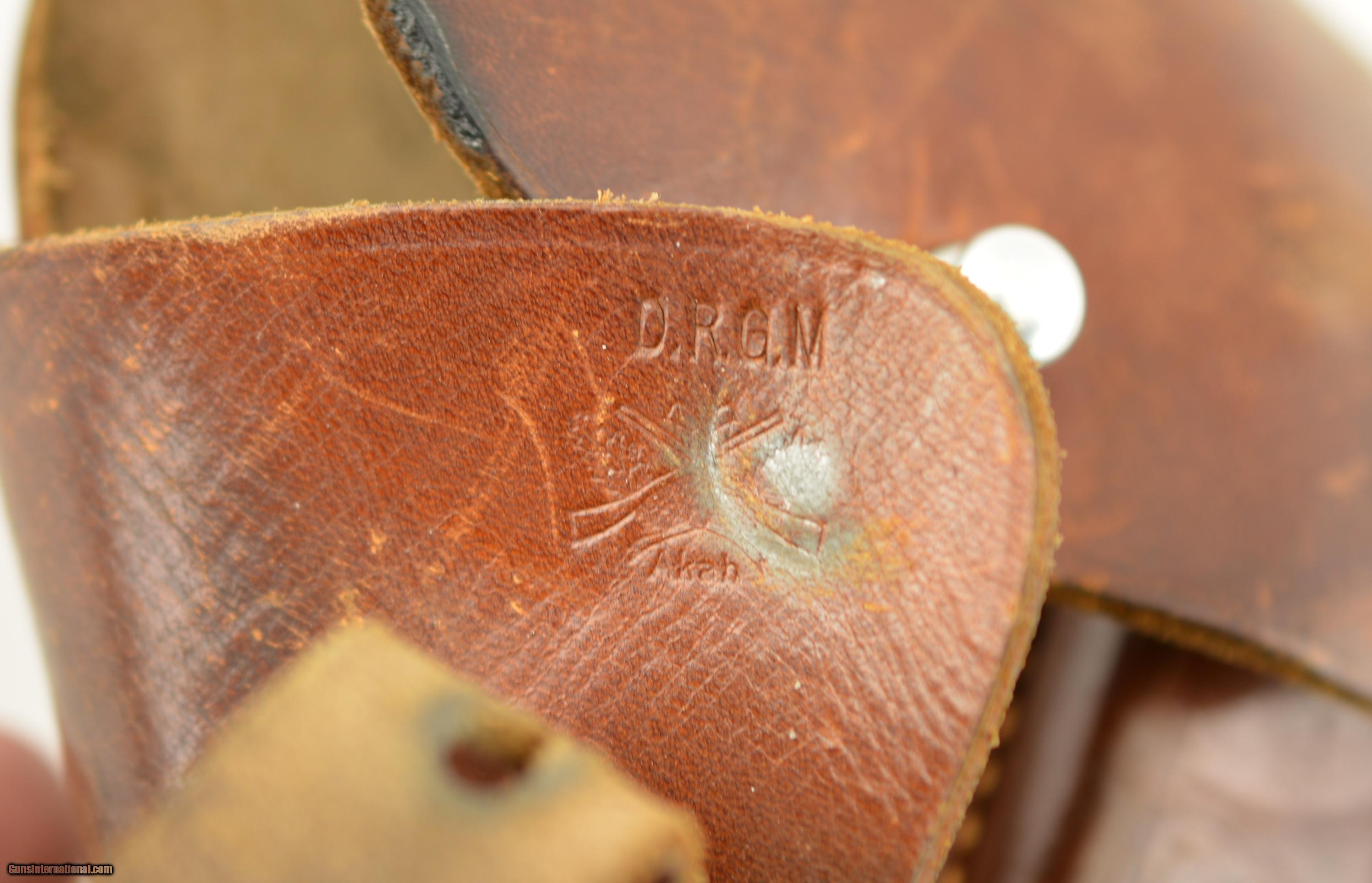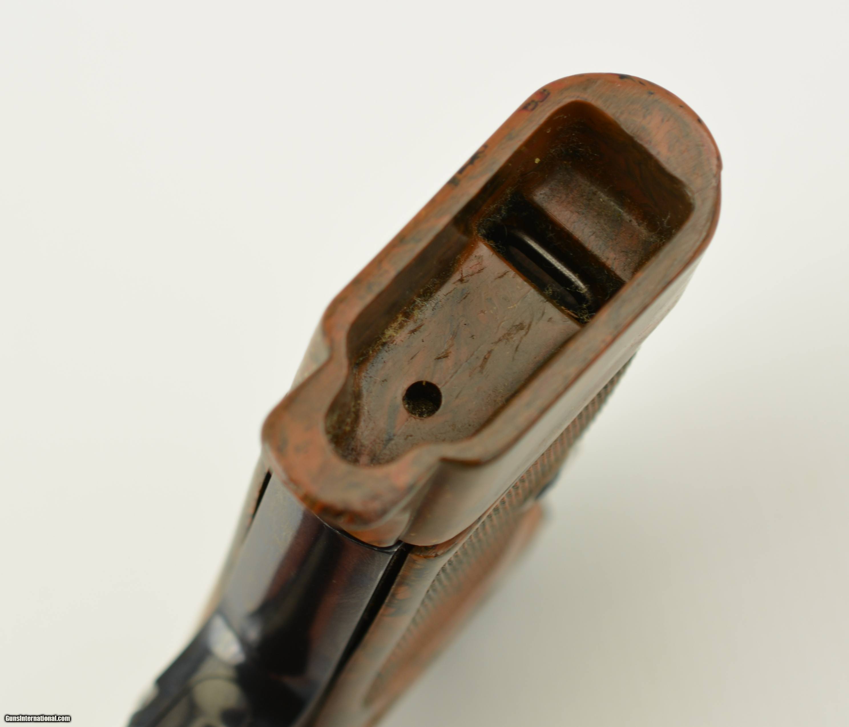 Description: Serial #220512K, 7.65mm (.32 ACP), 3 1/4" barrel with an excellent, bright bore. This is a K-suffix, “(crown)/N" proofed pistol with matching numbered slide (scratch numbered “512" on the interior), and retains 98-99% of the original brilliant, pre-war commercial blue finish with traces of fading and silvering on the high edges, as well as further gray fading on the extractor and safety lever. The checkered, brown marbled grip has some mild wear and flattening of the points, as well as a short vertical crack at the rear where the grip meets the short frame beavertail. The pistol comes with two magazines: one is the typical flat-base magazine, while the other is equipped with the rare full grip extension floorplate. The grip extension is in excellent condition and has no chips or cracks. The pistol is housed in a typical German brown leather flap holster that has an owner's name and unit identification on the interior: “Ostfm. Reinemer 2/293 R I/7a", along with the pistol's serial number written twice in the same handwriting. “Ostfm." is the abbreviation for Oberstfeldmeister, which was a rank in the Reichsarbeitsdienst – RAD (German Labor Service) equivalent to a Hauptmann (Captain) in the German Army. Ostfm. Reinemer is identified in surviving German records as the commander of Abteilung 2/293 R I/7a “Friedrich Graf von Bogen" which participated in the construction of the West Wall fortifications under Arbeitsfuehrer Vaupel commanding Arbeitsgruppe 274 (R I) “Kraichgau". This is a splendid pre-war PPK in its own right, but also comes with an extremely rare accessory, and is identified to a specific field-level NSDAP officer. It is an excellent pistol, both condition-wise, and with regard to its history. FFL or C&R SOLD Curio/Relic: Yes Manufacturer: Walther Model: PPK Serial Number: 220512K Caliber Info: .32 ACP Gauge Info: .32 ACP |