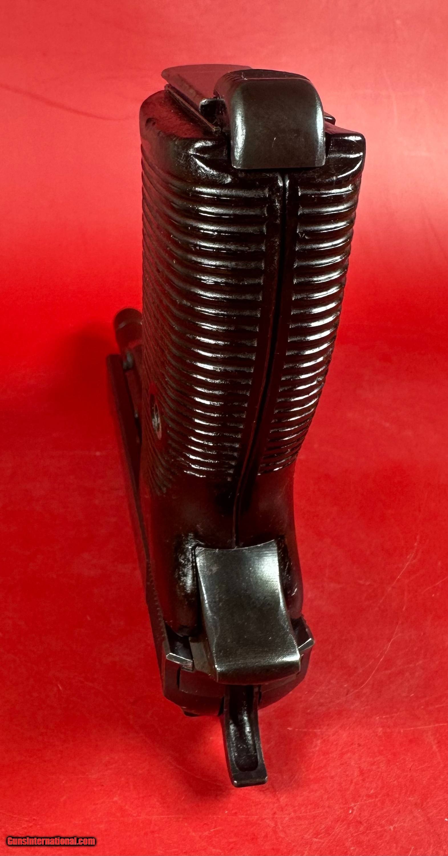 Description: For sale 1942 Walther (ac code was assigned to Walther) P38 (P-38 P 38). This is a historically significant firearm issued to German forces during the years of WWII. Unlike earlier P38s, the ac42 variants may show later-war production characteristics such as rougher machining, which are common and desirable among collectors for their historical accuracy. The example has German army acceptance proofs and is in excellent condition: metal finish is about 98%, Bakelite grips are about 98% with no cracks or chips, shiny bore with strong rifling. All matching serial numbers (frame, slide, barrel, locking block). Sale includes one original magazine. This gun will be a great addition to any WW2 collection, don't miss it. ac42 ac 42 ac-42 Layaway and no interest payment plan are available. SOLD Handgun Caliber: 9x19mm Parabellum (9mm Luger, 9x19mm NATO) |