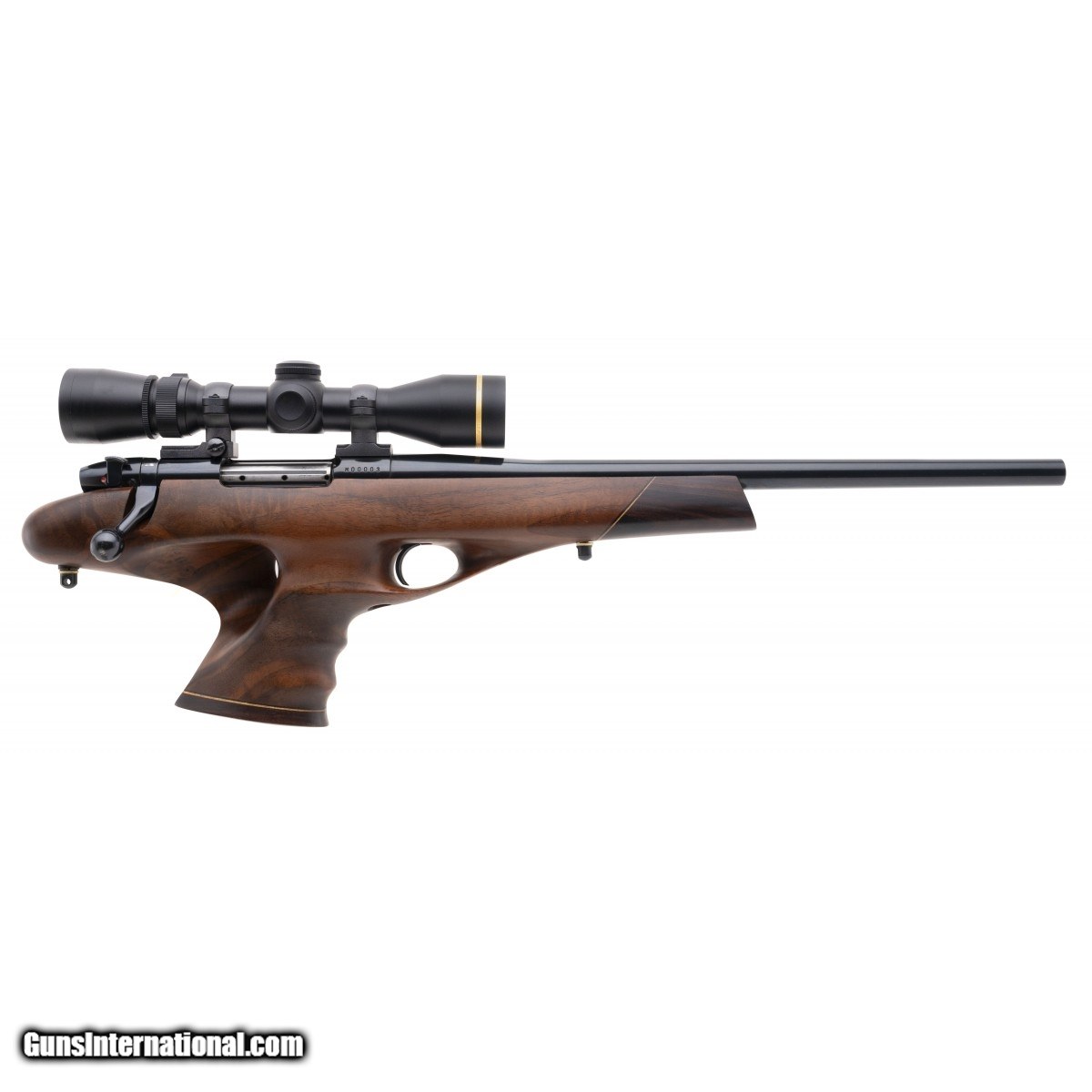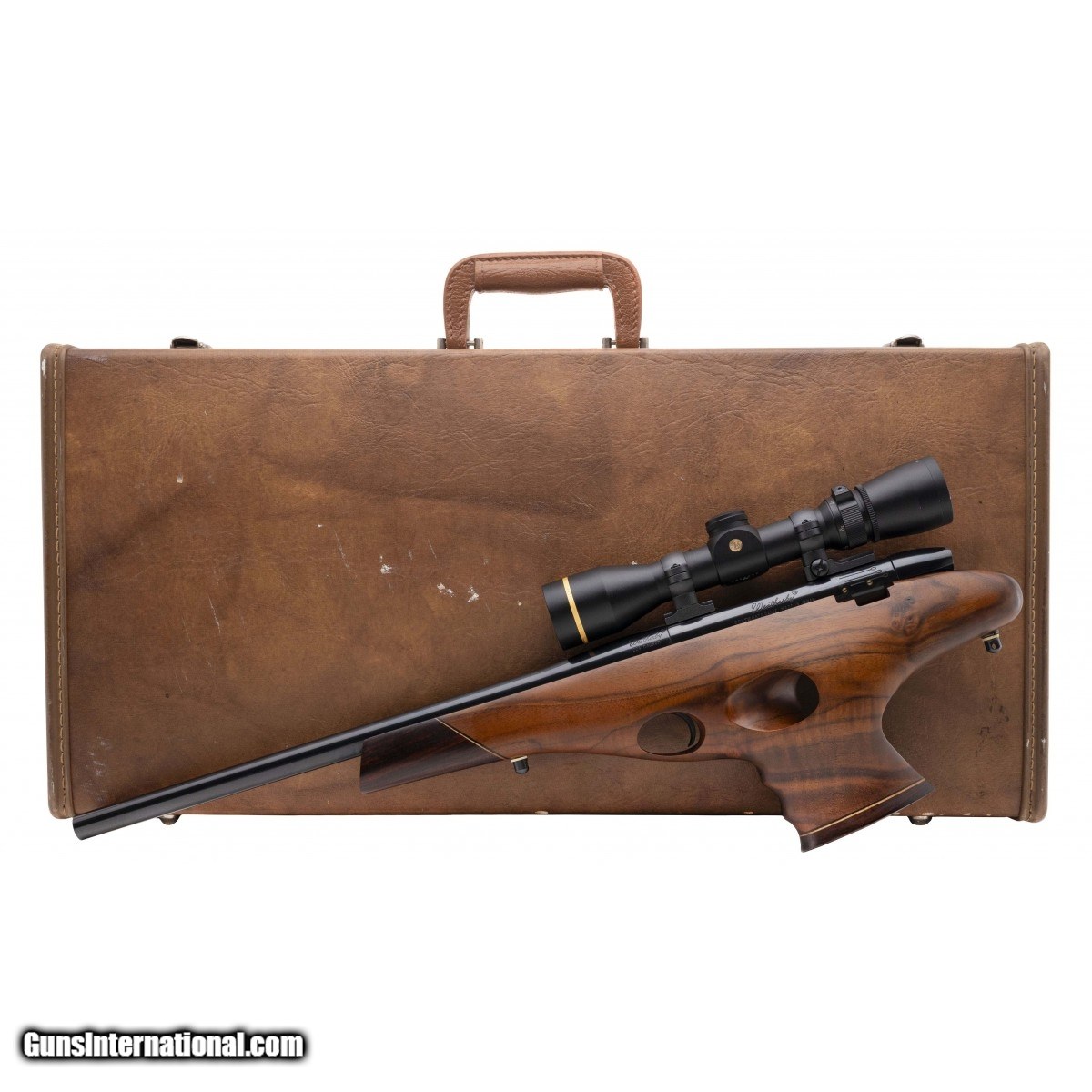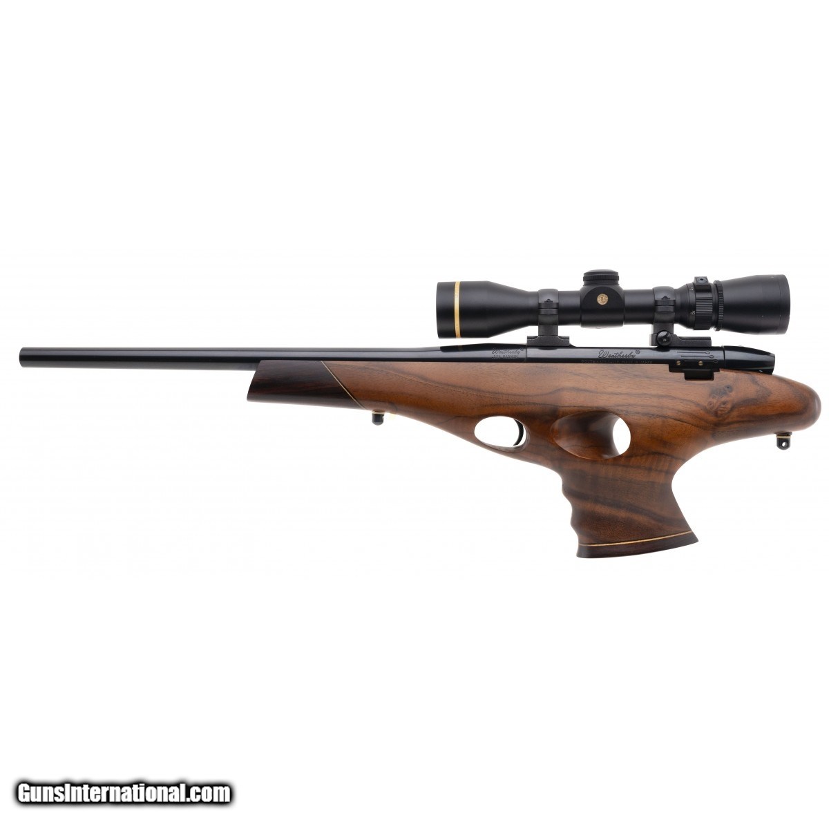 Description: " SN:M00003. Modern production. .224 Weatherby mag/ .308 Win with 16"" .224 Weatherby Mag barrel and 15"" .308 win barrel. Bores are in excellent condition. Metal is in excellent condition. Wooden thumb hole stock is excellent. Has leupold VX-3 2.5-8x32 pistol scope. Overall condition is excellent. Come with leather felt lined case.(CONSIGNMENT) SOLD |