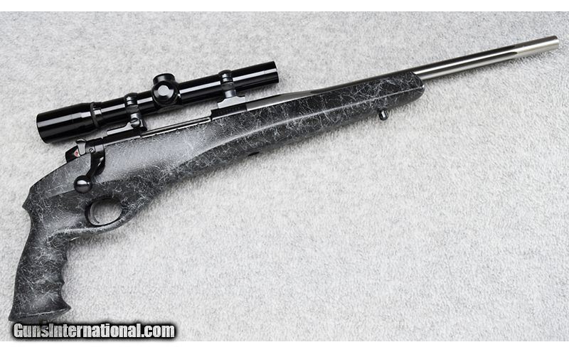 Description: This Weatherby Accumark CFP is a "Compact Firing Platform". It also features a 15" stainless fluted barrel and a Burris 5X Optic! Very Nice gun. 7mm-08 Remington SOLD Metal Condition: Excellent Bore Condition: Excellent Barrels: 15" Stainless Fluted Triggers: Factory Fore End: "Synthetic, Kevlar & Fiberglass Black with Grey Webbing Weight: 5lbs Sights: Burris 5X Scope Item Location: Wheeling |