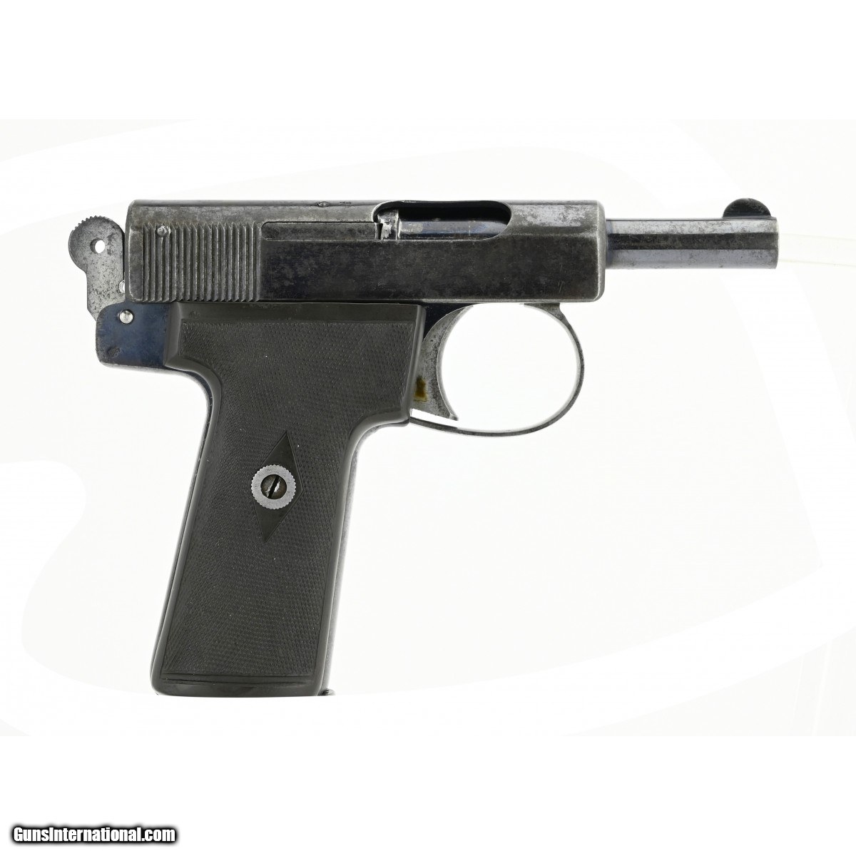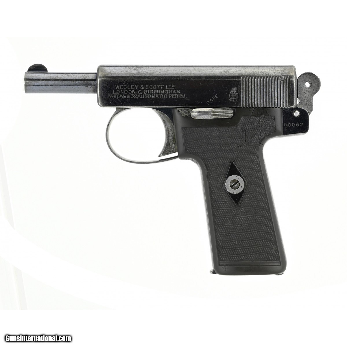 Description: " Webley 1908 7.65mm caliber pistol. Model 1908, bore is excellent. Left side grip is all there but has been repaired. Well done repair but visible on close Inspection. Action works perfectly. Pistol has approximately 75-80% blue. SOLD Curio/Relic: Yes |