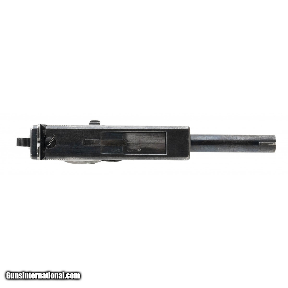 Description: " Serial No. 1403. made in 1914, .455, 5"" round barrel. Right side of the receiver is inscribed with ""Lieut. H.F. Owen-Evans/ The Manchester Regt."" Majority of original blue remains with expected wear noted along the edges. Bore is bright with strong rifling visible. Brown checkered grips show light wear visible with no cracks. Lt. Owen-Evans records shows he went overseas in May of 1917 and it is presumed he was wounded in late 1917.CONSIGNMENT. SOLD |