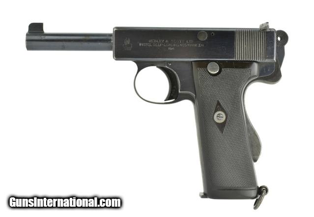 Description: Webley Mark I Navy Model Pistol. Webley Mark I .455 Webley in excellent condition with 95% of the original finish. This gun is in .455 caliber. Bore is slightly frosty. Grips are excellent. Dated 1914.
