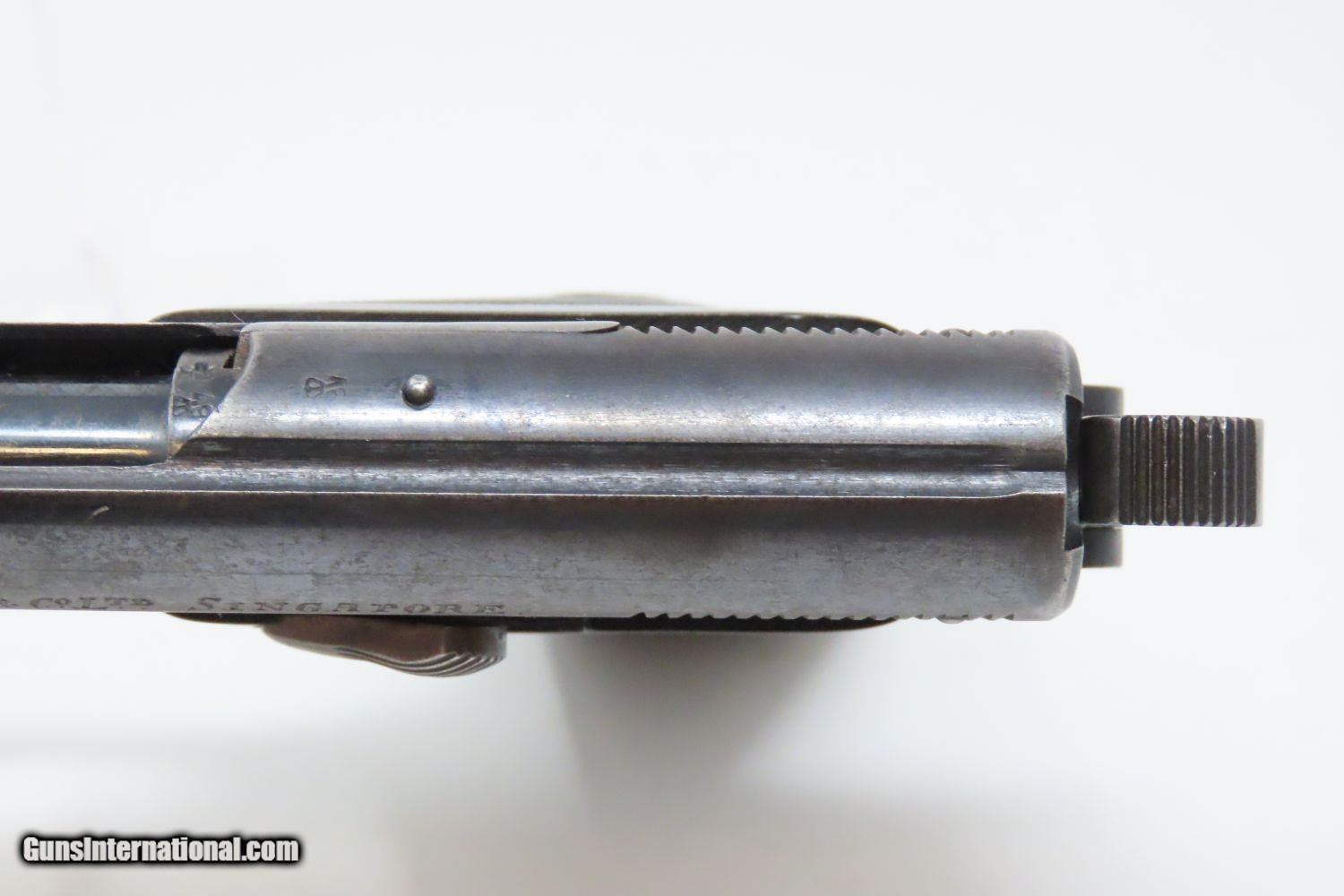 Description: SCARCE British SINGAPORE WEBLEY & SCOTT .380 ACP Model 1910 Pistol C&R With JOHN LITTLE & CO. LTD. SINGAPORE Marking! Here we present a Scarce British Webley & Scott .380 ACP Semi-Automatic Pistol made between 1910 and 1932 in Birmingham, England and shipped to John Little & Company Limited of Singapore. John Little & Company was a former chain of department stores in Singapore (then a British colony) that was established in 1845 until it was acquired by Robinson & Co. in 1955. John Browning had introduced the .380 ACP cartridge in 1908 as a more powerful alternative to the .32 ACP, and Colt’s had begun chambering their Model 1903 design in the new cartridge, calling the new gun the Model 1908. The English firm of Kynock produced the .380 ACP cartridge for use in this Webley & Scott pistol, presumably beginning in 1909. The cartridge became known as the 9mm Browning Short in mainland Europe, but wasn’t introduced there until 1912, when the Model 1910 FN Browning was finally released. The Webley & Scott .380 never sold well, and only 2,129 were ever made with production ending in 1932. If this pistol would have been produced for another 7 years when the people of Great Britain were facing impending invasion as the Battle of Britain was just beginning, things would have been different. Sales records show that all of Webley and Scott’s guns were being desperately snapped up by Brits ranging from the Ruling Class down to the everyday citizen. In a weapon starved Britain, even these little .380 semi-automatics would have been better than a frying pan against the greatly feared Nazi invasion. Some of these pistols (maybe as many as 250) were used by the South Australian Police between 1913 & 1961 and were marked with the letters S A P over a broad arrow. Left hand side of the slide is marked “JOHN LITTLE & Co. LTD SINGAPORE”, and “WEBLEY & SCOTT LTD/LONDON & BIRMINGHAM/.380 AUTOMATIC PISTOL”. The overall condition is very fine. Nice original blue. The action is robust. The bore is bright and in very good shape. Both grips are firmly seated and retain sharp checkering. All markings are clear. A very scarce piece from across the globe! This firearm is classified as a Curio & Relic. Barrel is 3-1/2 inches. Caliber: .380 ACP (9x17; 9mm Browning) Overall condition as seen in photos. Very Fast. Very Safe. FREE SHIPPING. Will need to be sent to your local FFL or C&R licensee. This firearm is classified as a Curio & Relic. Guaranteed AUTHENTIC & Includes CERTIFICATE OF AUTHENTICITY. ancestryguns $3485 #201152 SOLD Curio/Relic: Yes |