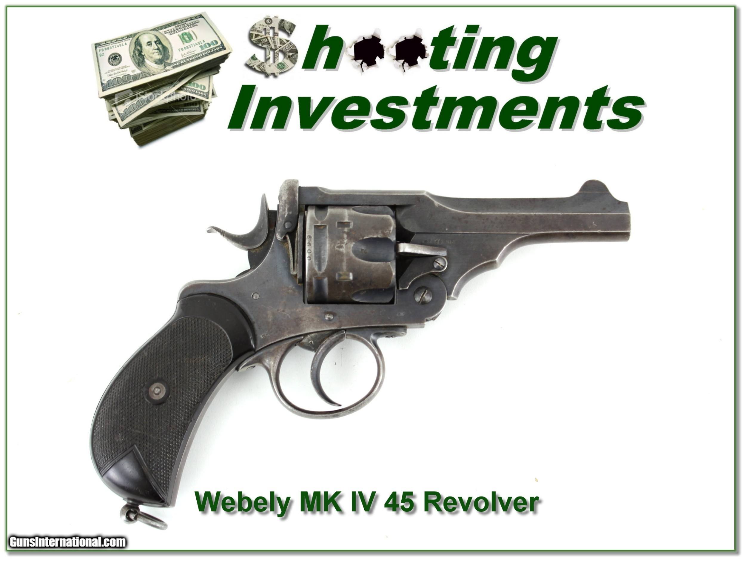 Description: This is a nice example of the Webley MK IV revolver chambered for the .455 Webley. My research says this was made before WWI made between 1899 and 1913. The only number I find on this one is on the cylinder and is 6600. I am selling this one on consignment and as such lay-a-way can’t be used. It does of course have the standard 3-day inspection. Shipping and insurance is $39. Please email me with any questions or larger pictures. (Consign your quality firearms with Shooting Investments for only 12%! Let me know if you have any you would like to sell!) 20-0228 Payment: Payment is by Money Order, Cashiers Check or Personal Check. I can now also accept Credit Cards (MasterCard, Visa, Discover & American Express) with a 3% convenience fee. PayPal can be used for some items but never for firearms. Shipping: The shipping charge will be listed in each description. It is $39 for most firearms. Some heavy guns or those insured for over $2000 will be higher. Shipments to Alaska and Hawaii are higher because air shipment is required. Most firearms are shipped on Tuesday and Thursday and usually in 5 days of receipt of payment. We package all shipments carefully and insure them. Optics are shipped Priority Mail and most other non-firearm shipments are shipped First Class. Returns: Our return policy is simple. If for any reason you are not pleased with your purchase, you may return your item for a full refund of purchase price. Ammunition cannot be returned. It is important to us that you are happy. Guns cannot be fired or dissembled before returning them and they must be returned in the same condition as received. Notification of a return must occur with-in 3 days of receipt at your dealer. Shipping, convenience and dealer fees are not refundable and are the responsibility of the buyer. Lay-a-way: If needed, we offer a 60 day lay-a-way option on most firearms. It is 1/3 now, 1/3 in 30 days and 1/3 in 60 days. Lay-a-way firearm sales are final and if not completed the first payment cannot be returned. Consigning your firearms with Shooting Investments: We will help you get top dollar for your firearms. While most local guns shops charge 20% or more, our fee is only 12% with a minimum of $75. At your local gun shop it might take months to sell. Selling on-line provides instant access to thousands of interested buyers. You won’t find any other on-line dealer willing to sell your firearms for only 12% or listing every gun on 3 separate s. Selling through an House typically costs the seller 15% and the buyer an addition 15% (so 30%) and you have to wait several months to sell and longer to receive funds. If properly priced, we will sell your firearms in a few weeks. Send us an email or give us a call and we’ll explain how easy it is for you to get top dollar. Trading: Trading for use is really just buying your gun to re-sell. If you have a gun you want to trade, please email a picture and we will let you know what we can give or it. You will always get more if we sell it for you on consignment. Help for California Buyers: We are happy to ship to California. It is the buyer’s responsibility to make sure any item you buy is legal in your state. We are also happy to help with your purchase of a firearm from someone other than us. If you see a gun you would like to buy but the seller can’t or won’t ship to California they can ship to use and we’ll then ship it to your California dealer. The cost for this service is only $30 + shipping. Let us know if we can help! SOLD Curio/Relic: Yes |