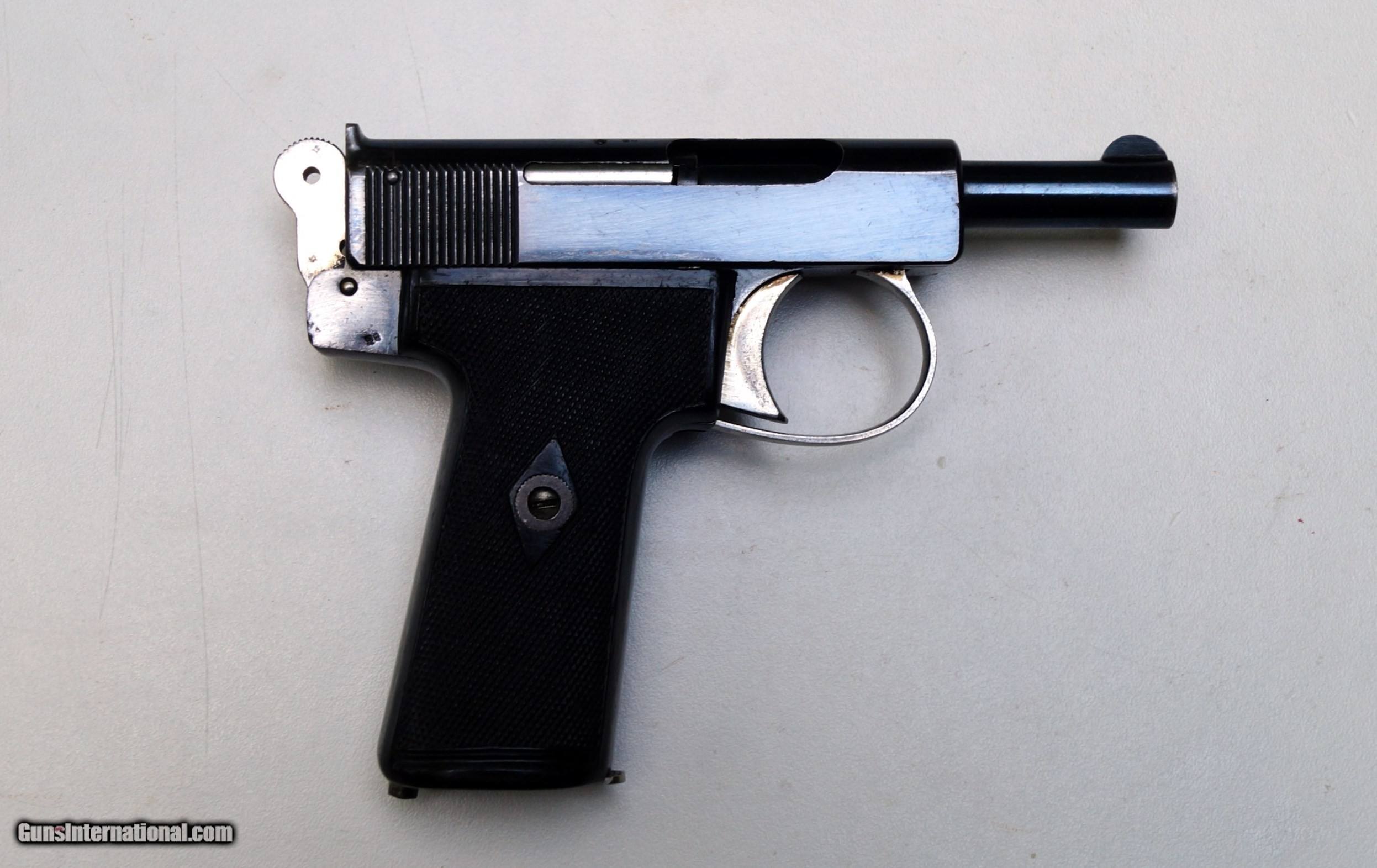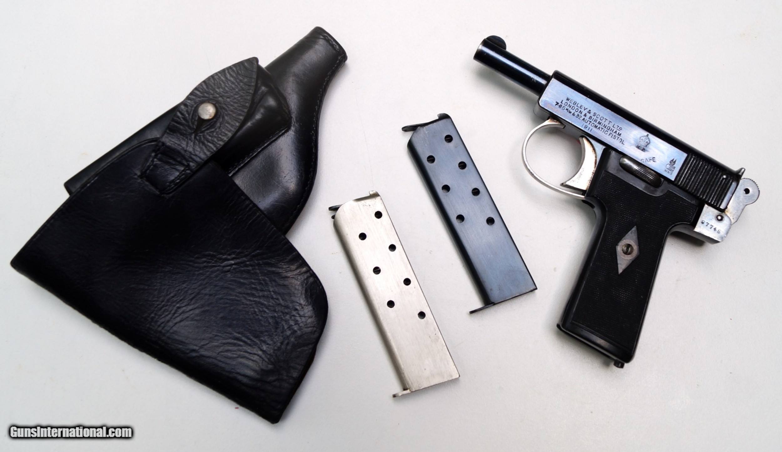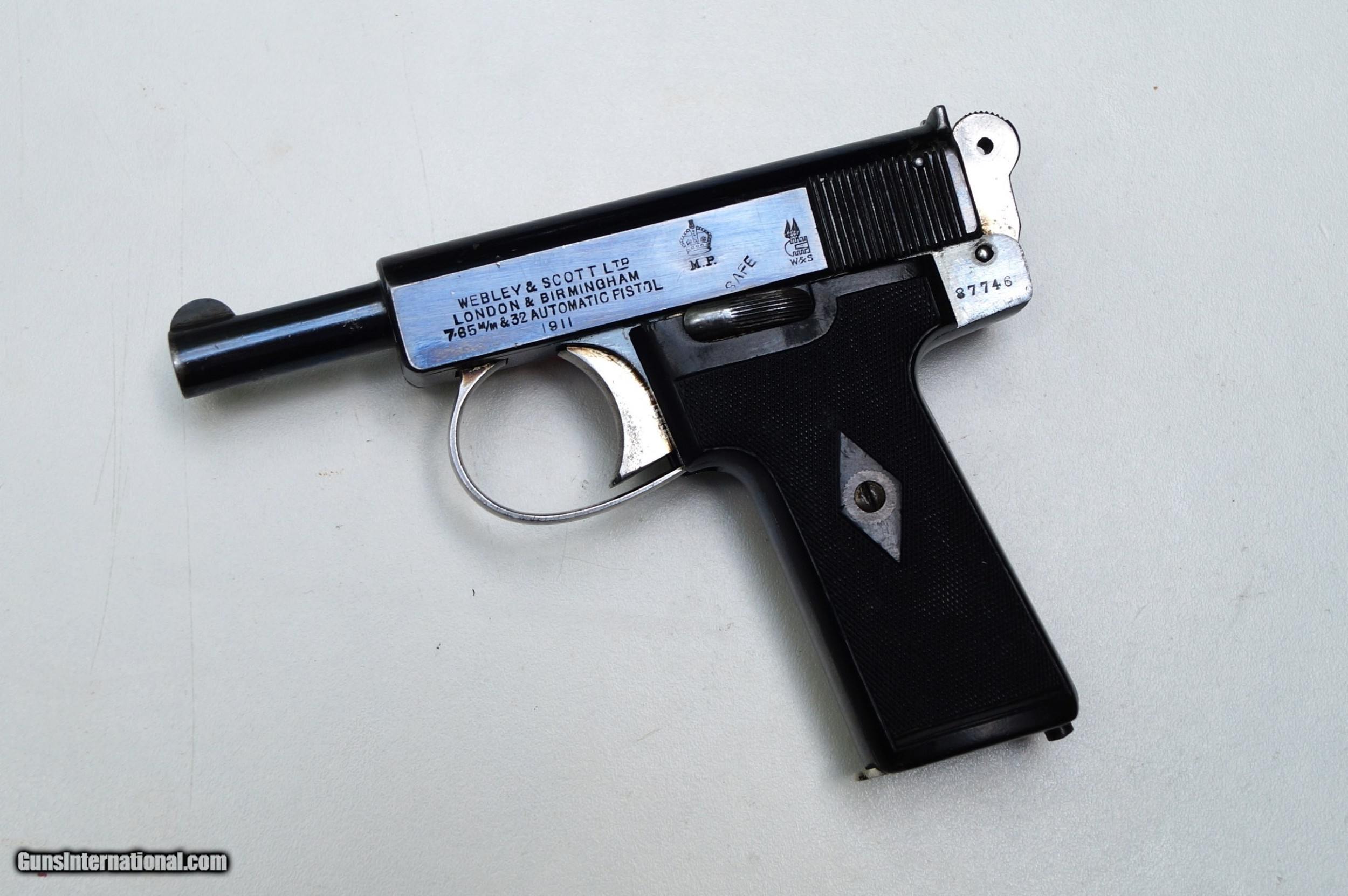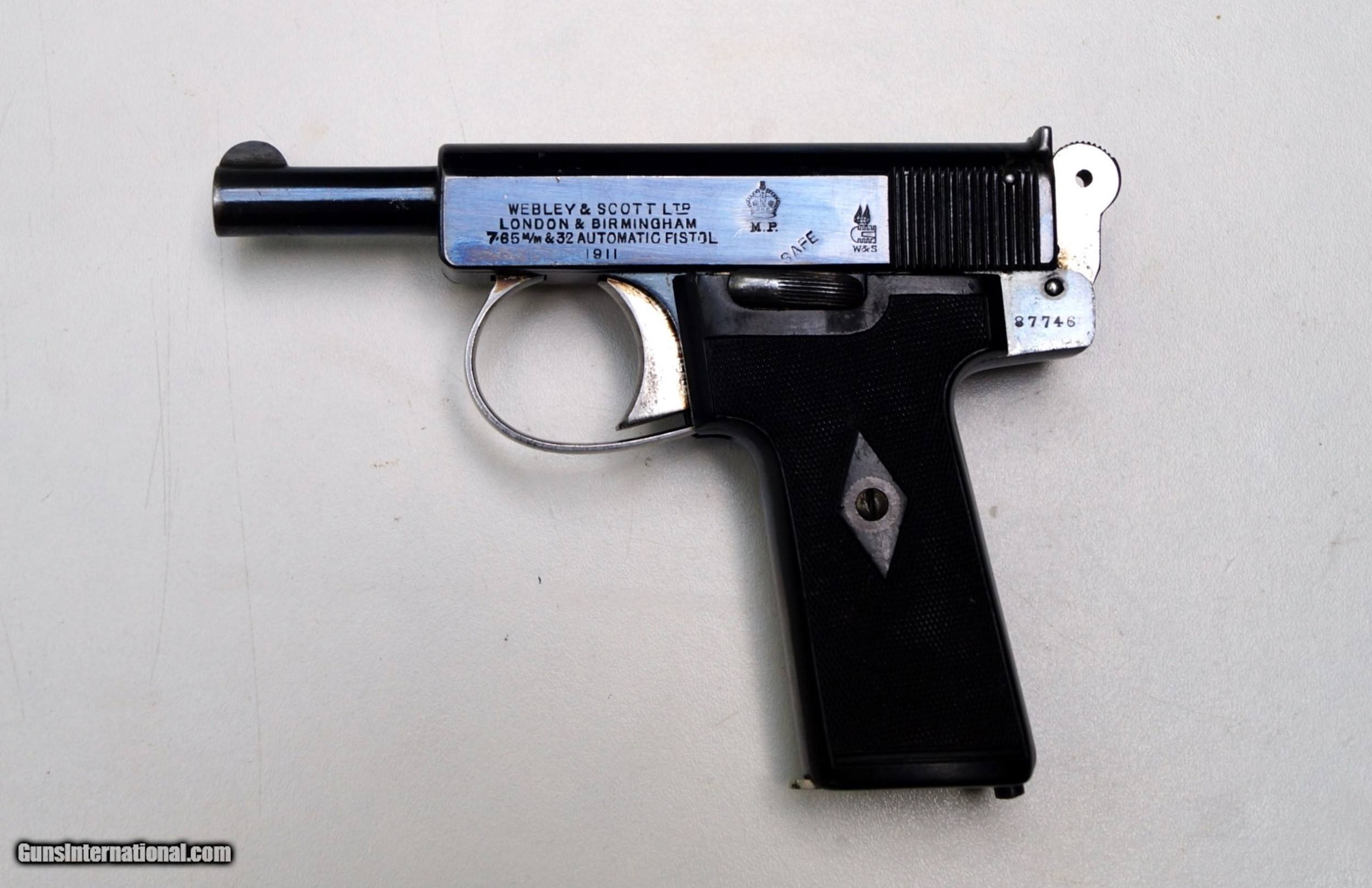 Description: THIS IS A WEBLEY MODEL 1911 M&P (METROPOLITAN POLICE MODEL) SEMI AUTOMATIC RIG. 7.65MM. THE PISTOL IS IN EXCELLENT CONDITION. ALL ORIGINAL, NUMBER MATCHING, VERY GOOD BORE. MECHANICALLY CORRECT (THE PISTOL WILL SHOOT). THE RIG CONSISTS OF THE PISTOL, 2 MAGAZINES (1 ORIGINAL, 1 BRAND NEW) AND AN ORIGINAL WEBLEY HOLSTER MADE FOR THE GUN. A VERY NICE AND IDEAL CONCEALED CARRY GUN. SOLD Curio/Relic: Yes |