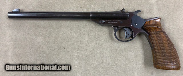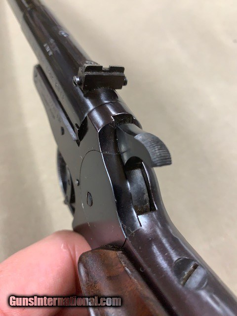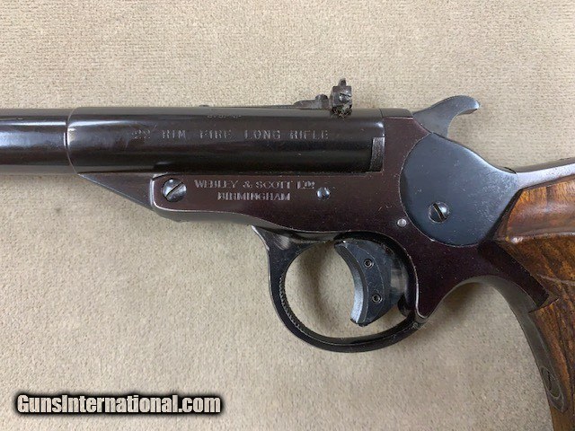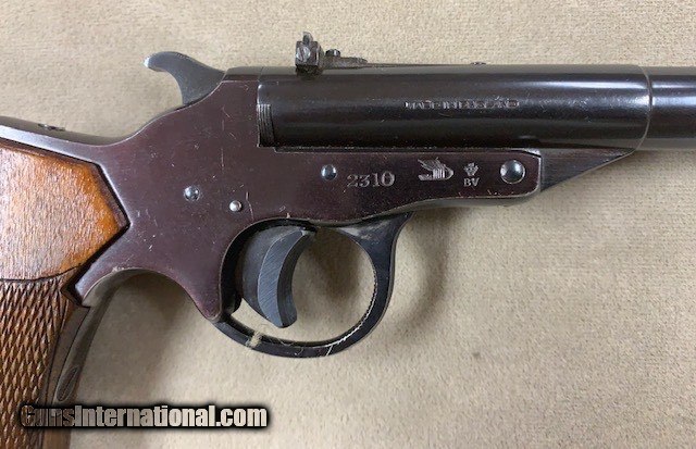 Description: This an excellent original condition Webley No 1 Target Pistol, complete with all usual markings including the flying bullet, etc. Usually these are quite well worn and this little gun is excellent overall (see photos) and with an excellent bore. SOLD Curio/Relic: Yes |