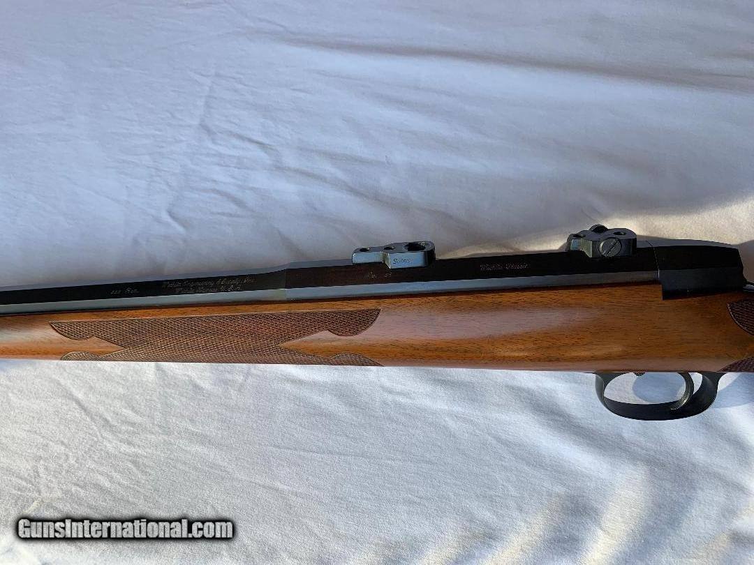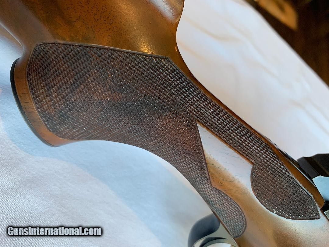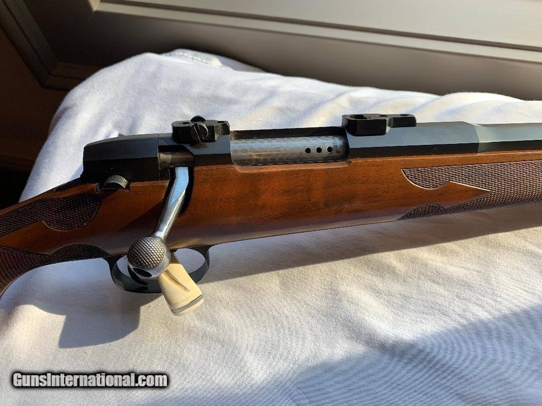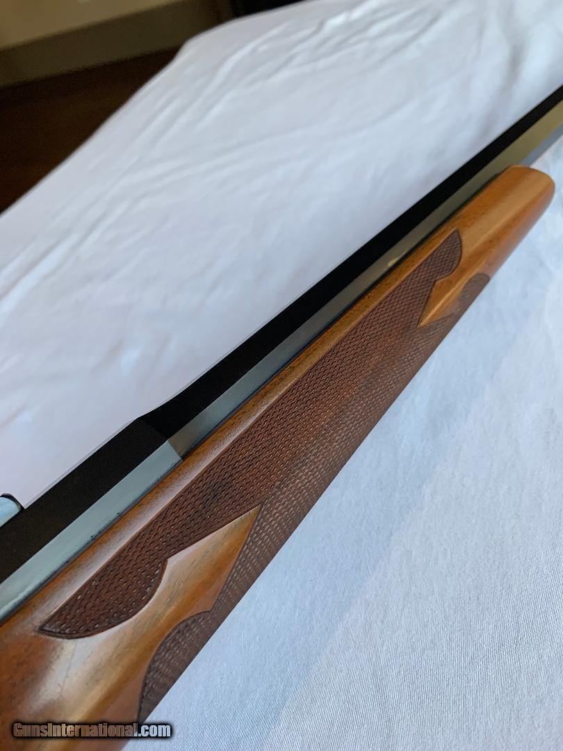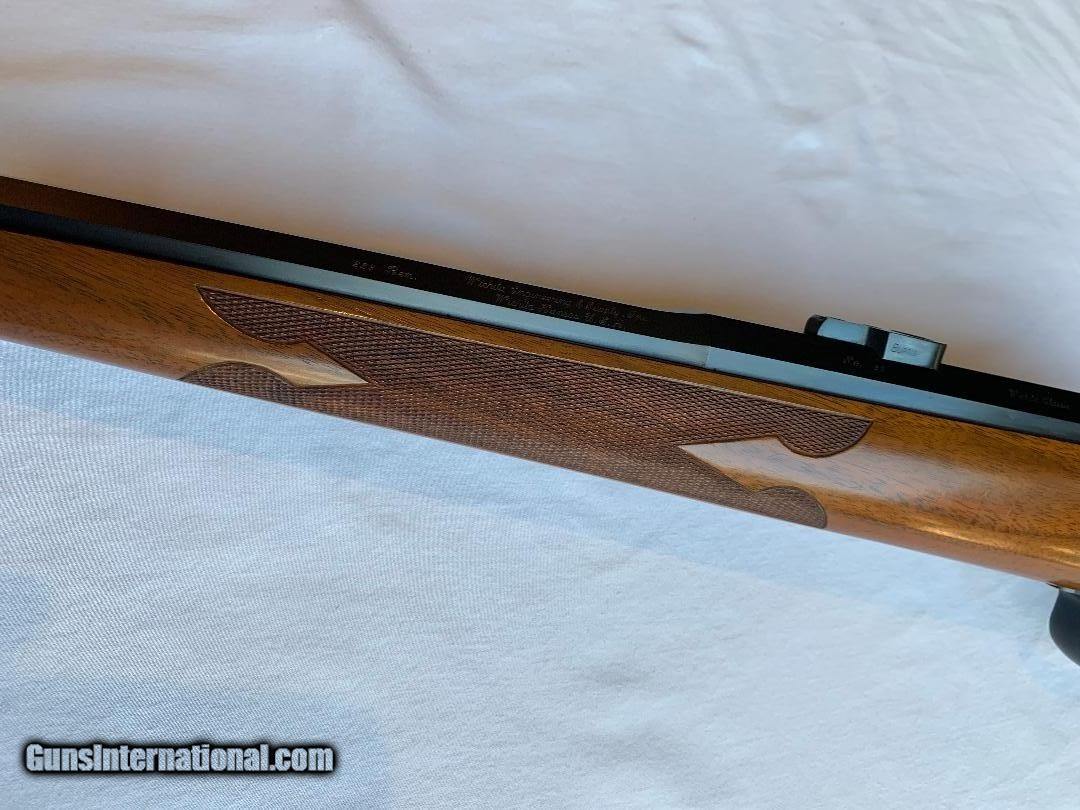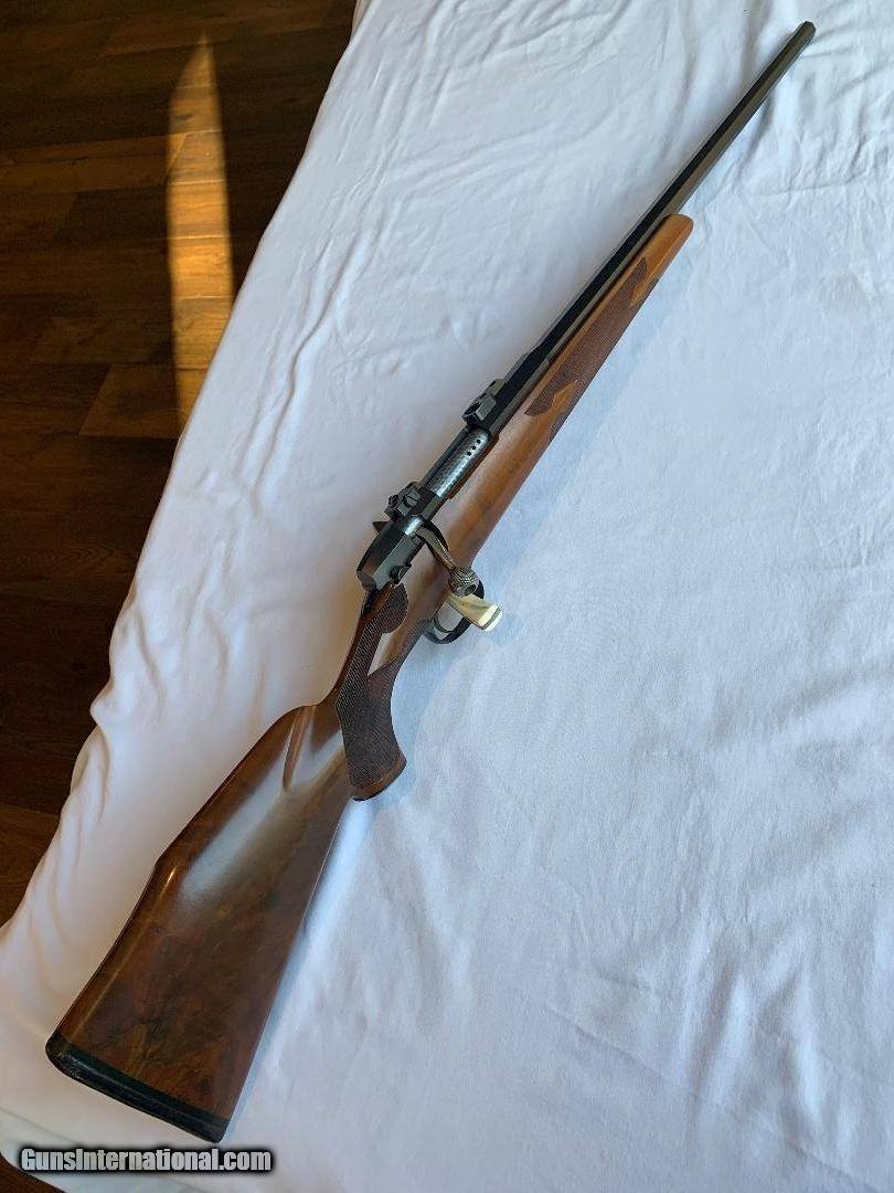 Description: Wichita Classic in 223. Octagon receiver and barrel. Loved these rifles when they first came out and still do. This one has a 20 1/4 inch barrel and Burris bases. Excellent condition, two flaws should be noted, a ding in the bottom of the forend near the tip, and the blue is marred on the top flat, looks like the objective lens of a scope was to large. See pics on both of these. SOLD Manufacturer: Wichita Engineering and Supply Model: Classic WC-100 Serial Number: 26 Caliber Info: 223 Remington Bore: Excellent Condition: Excellent Butt Pad: Old English |