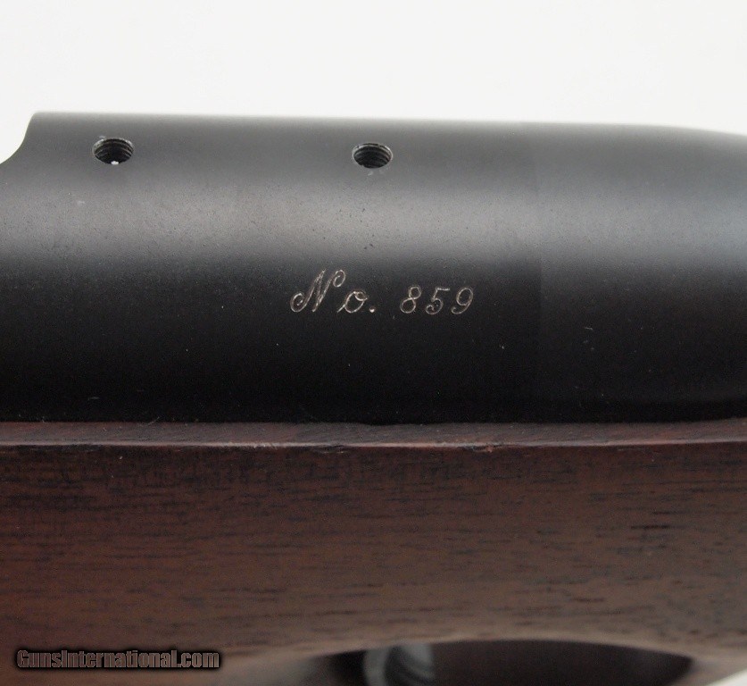 Description: Wichita Silhouette Pistol (WSP) 7MM BR REM, 14" bbl, bright shiny bore, good rifling, matte blue finish, Wichita adjustable notch rear sight - hooded front sight with additional sight blades, fluted bolt, one piece walnut pistol grip with square tip - right handed thumb rest - trigger guard, very light handling marks, and 50 primed brass cases. Excellent pistol for your collection. Add 3% for Credit Card Shipping $35.00 SOLD |