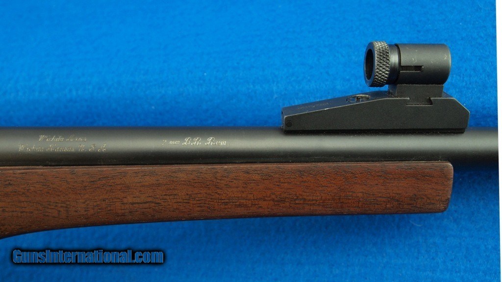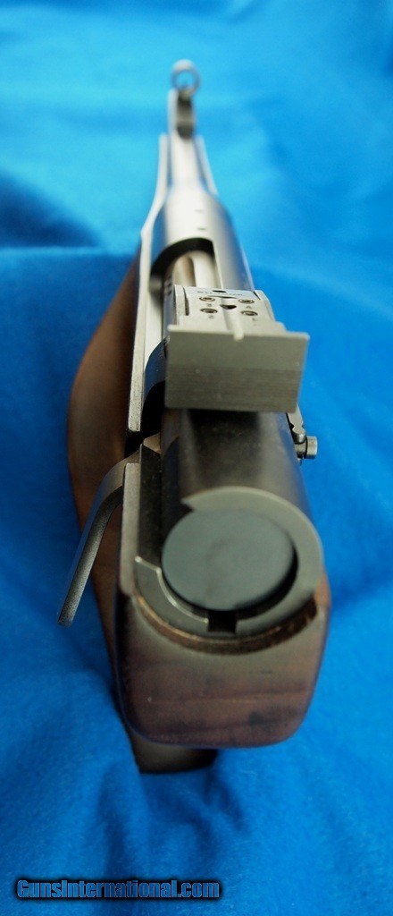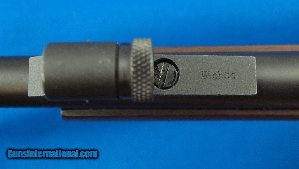 Description: Wichita Silhouette Pistol (WSP) 7MM BR REM, 14" bbl, bright shiny bore, good rifling, matte blue finish, Wichita adjustable notch rear sight - hooded front sight with additional sight blades, fluted bolt, one piece walnut pistol grip with square tip - right handed thumb rest - trigger guard, very light handling marks, and 50 primed brass cases. Excellent pistol for your collection. Add 3% for Credit Card Shipping $35.00 SOLD |